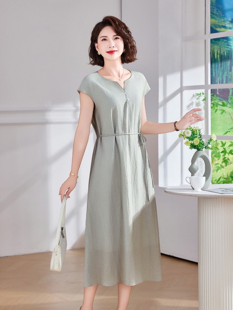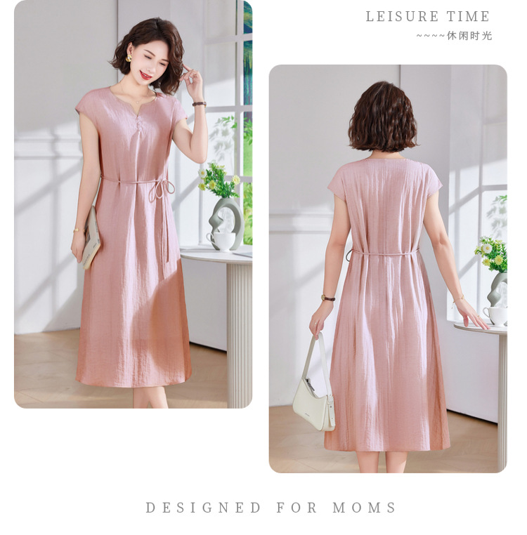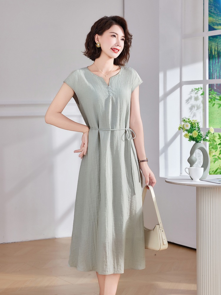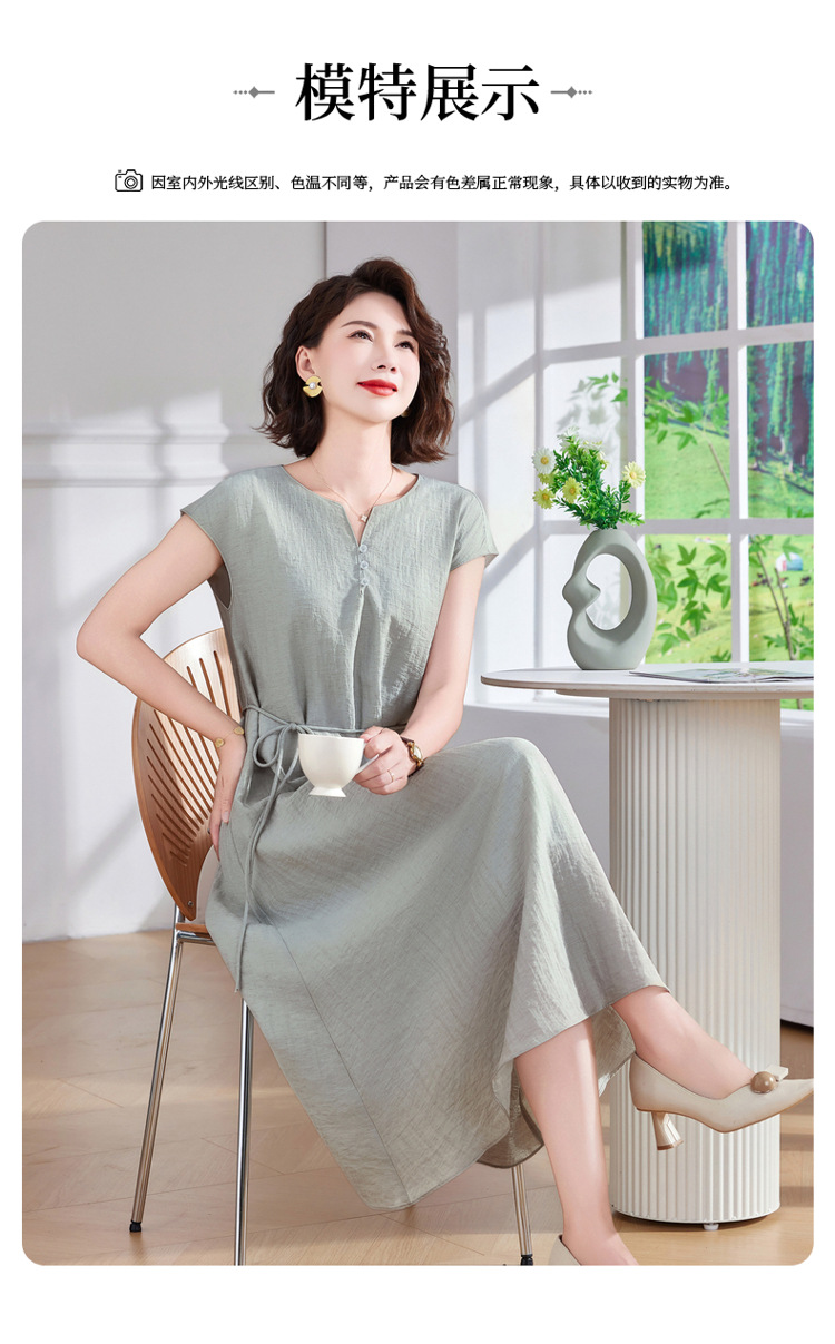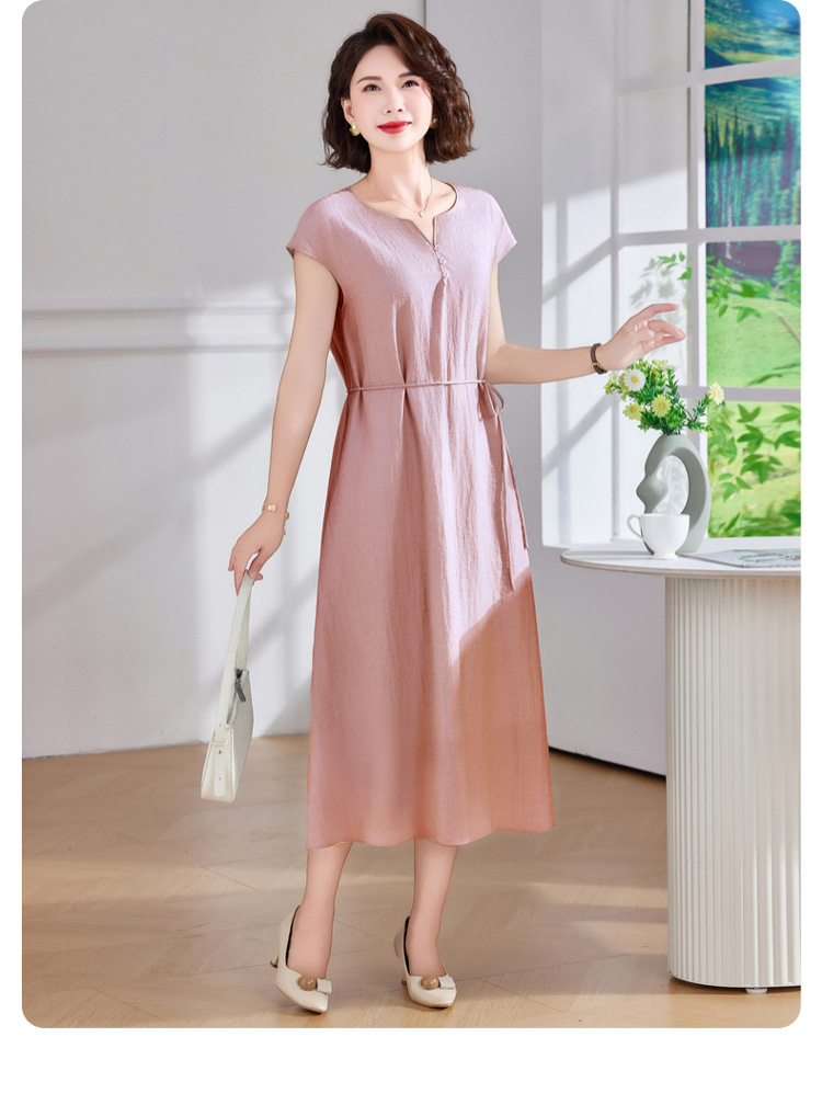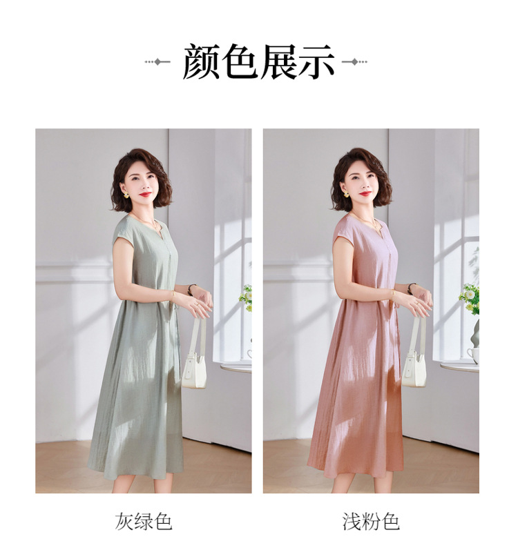 Льняное летнее новое стильное платье для мамы из тенселя, свободная талия, утягивающая длинная юбка, повседневная юбка с короткими рукавами для женщин