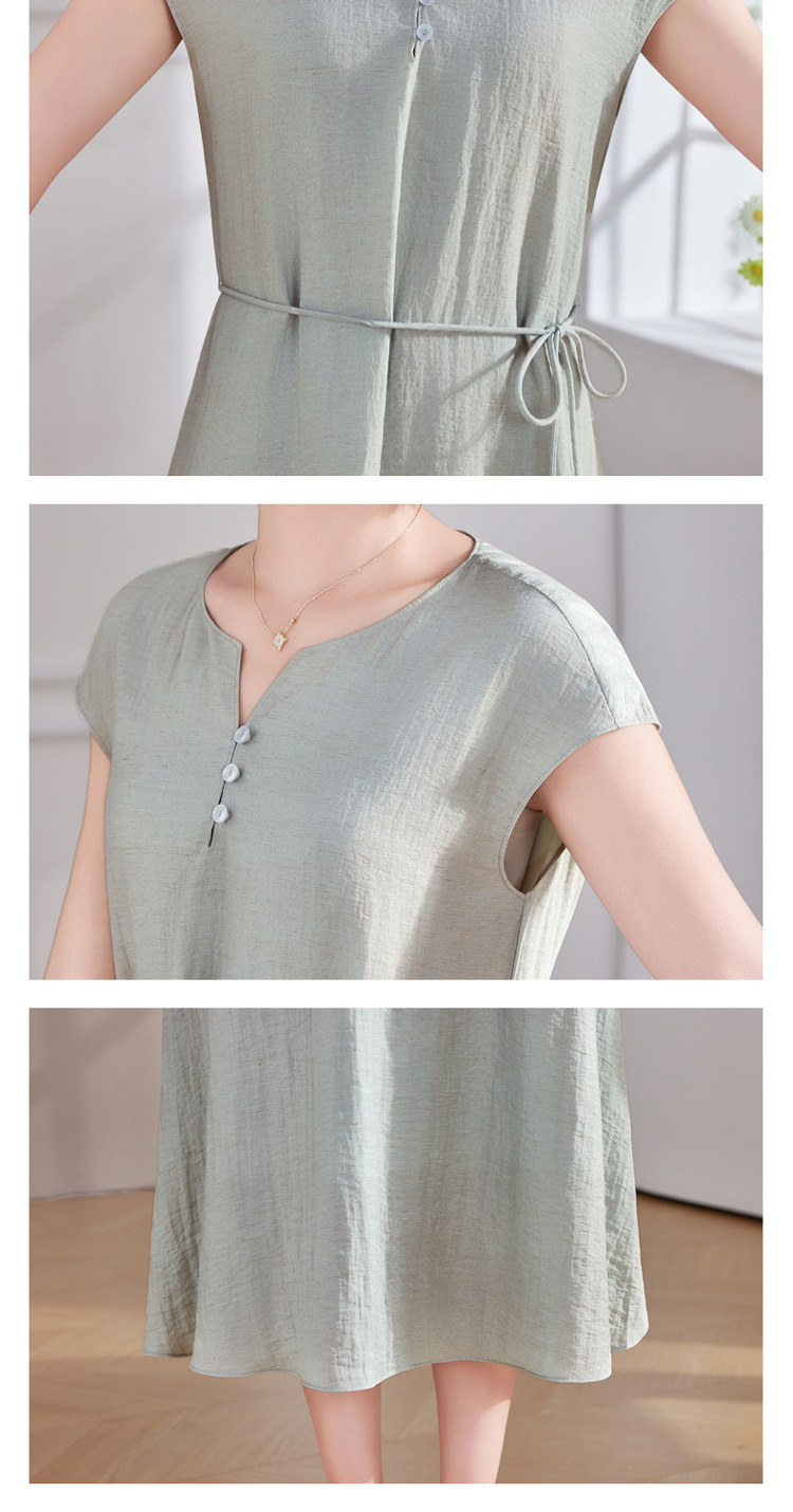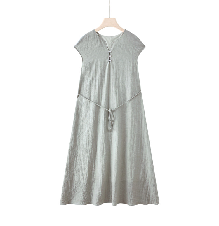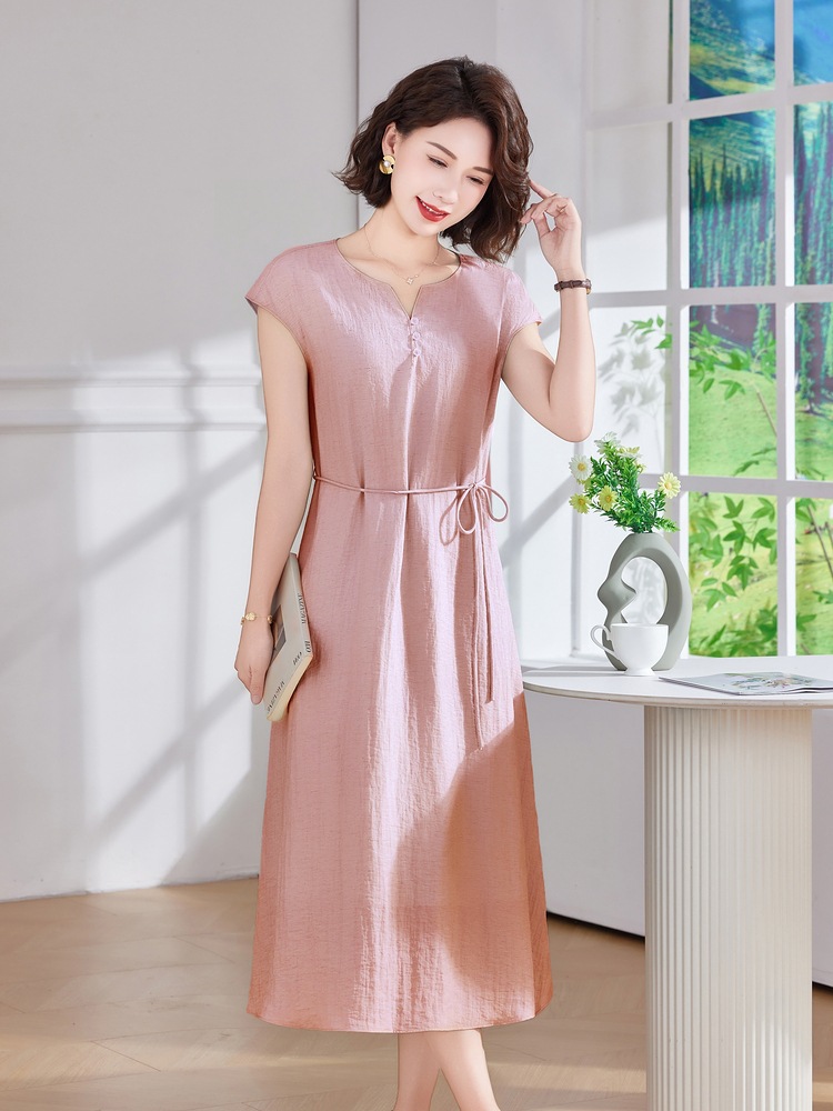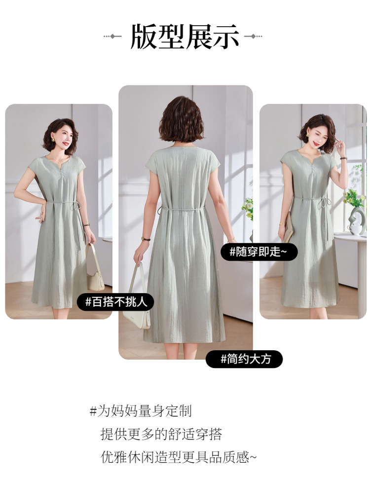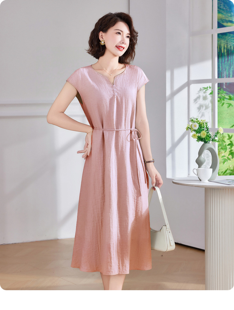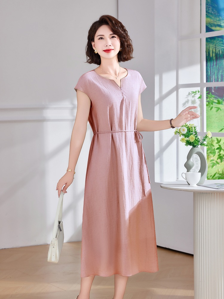 Льняное летнее новое стильное платье для мамы из тенселя, свободная талия, утягивающая длинная юбка, повседневная юбка с короткими рукавами для женщин