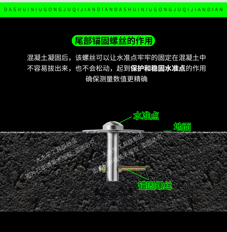 ✅ Опорная точка наблюдения, гвоздь из нержавеющей стали, контрольная точка измерения, отметка GPS, точка нивелирования, встроенная деталь, геодезия и картографирование, поперечное измерение.