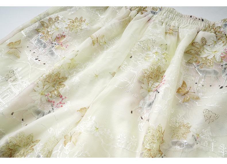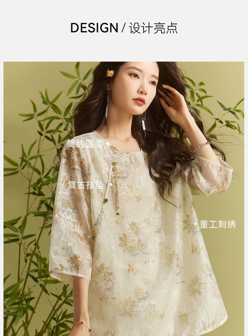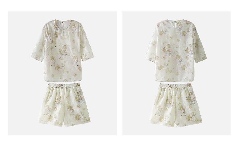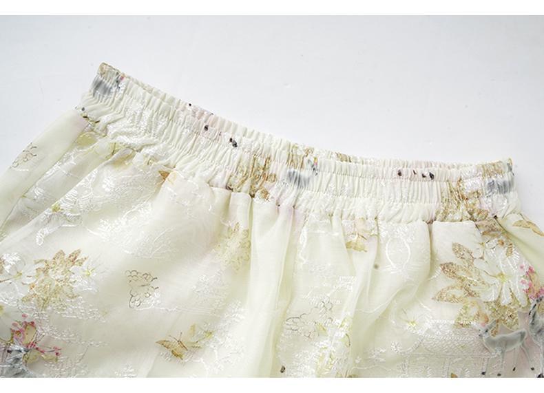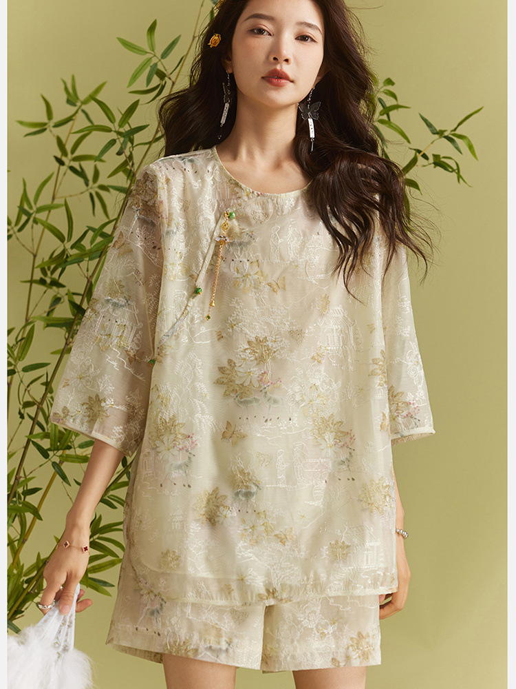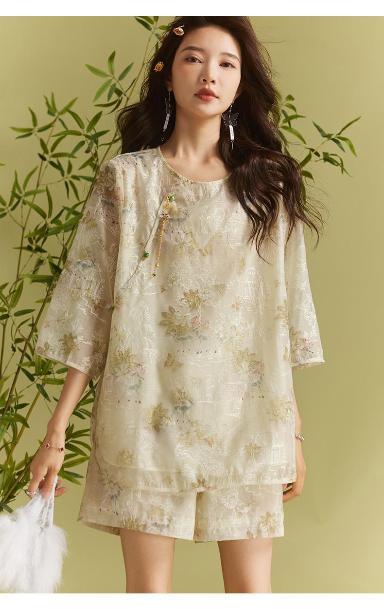 Женский новый китайский жаккардовый костюм с коротким рукавом, лето 2025, новые шорты, свободный вышитый тюлевой кардиган, комплект из двух предметов