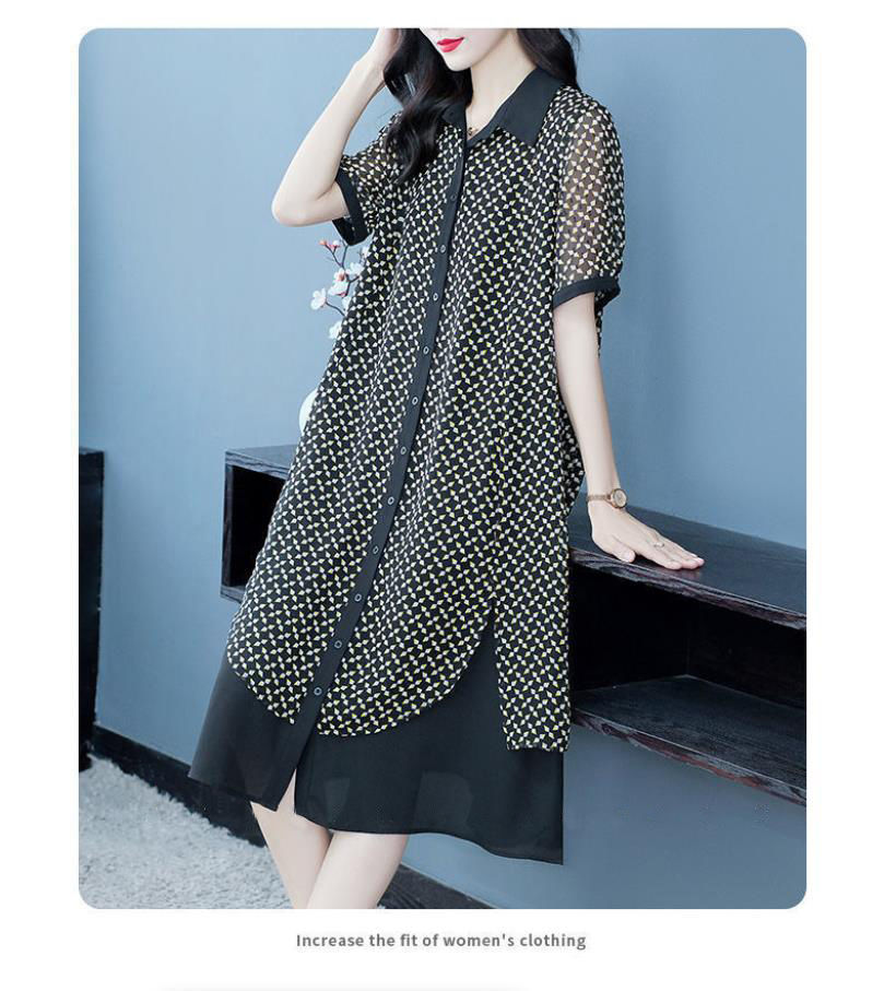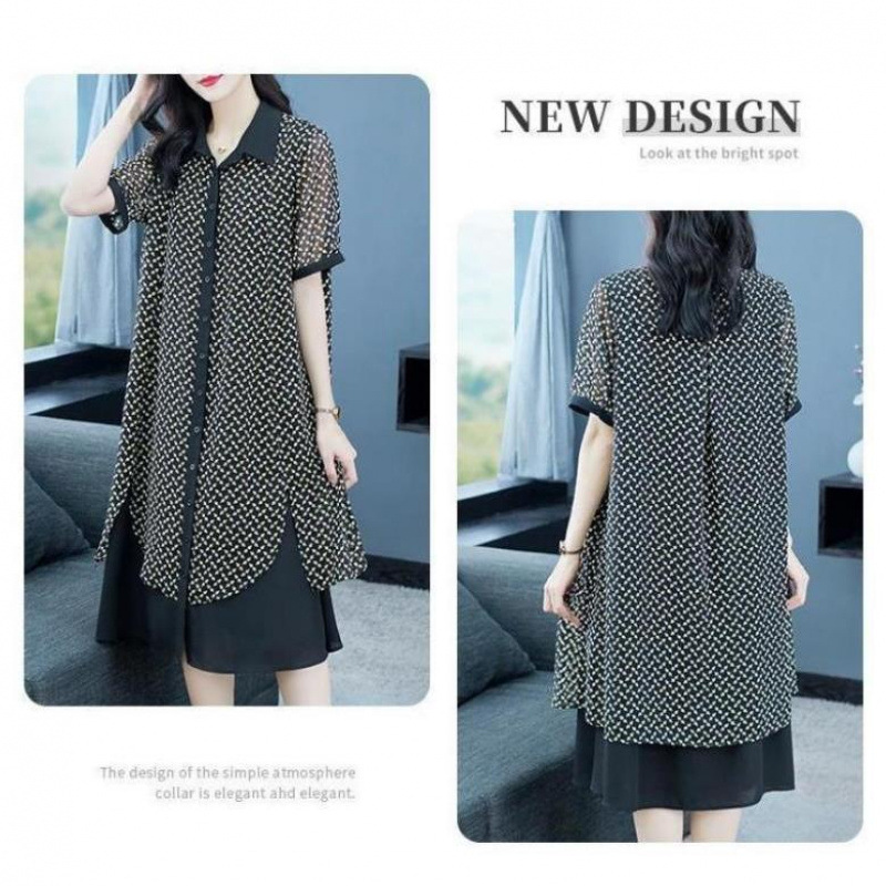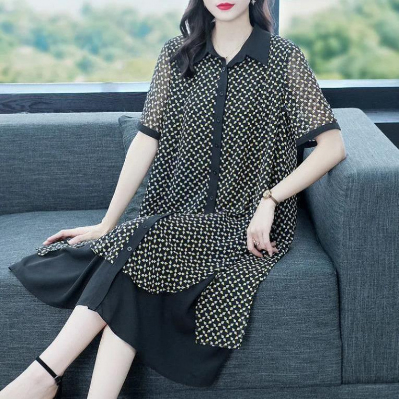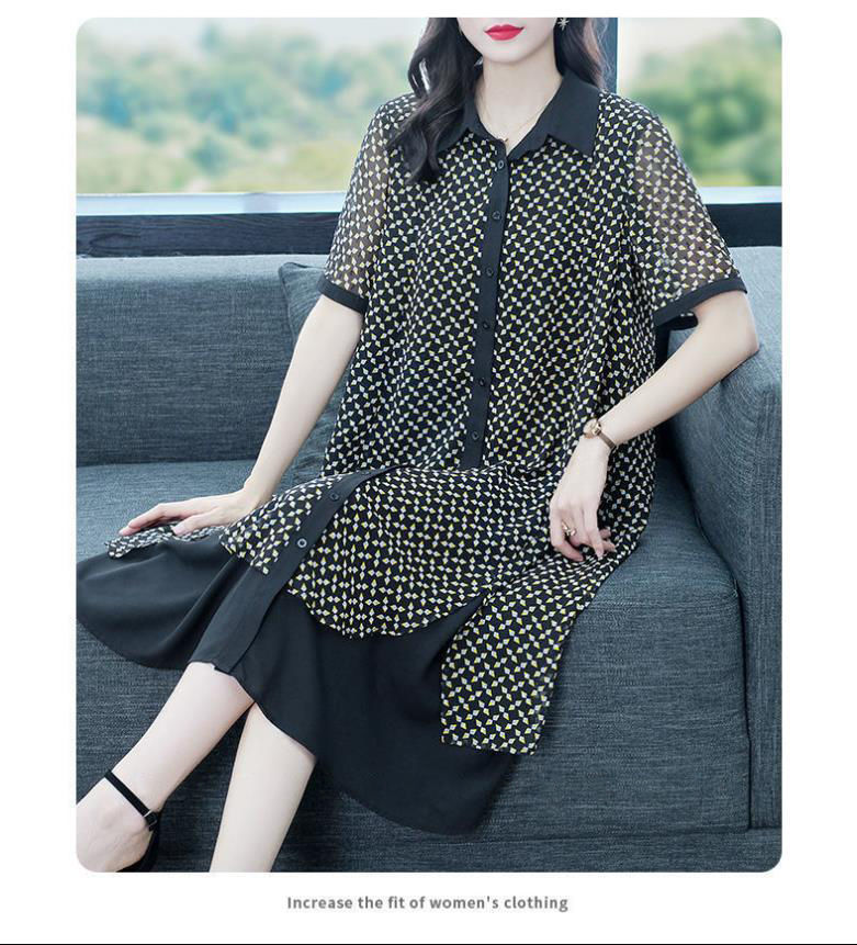 Высококачественное платье в западном стиле, платье для мамы, шифоновый костюм, свободный женственный элегантный, лацканы, юбка средней длины в этническом стиле.