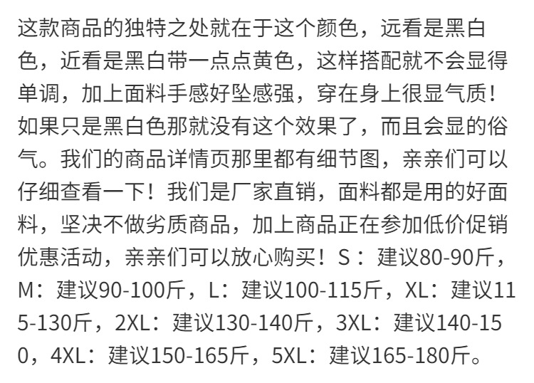 S [Рекомендация 40-45kg ]; Сбор и внимание к приоритетной доставке; М [Рекомендация 45-50kg ]; L [Рекомендация 50-57.5kg ]; XL [рекомендуется 57.5-65kg ]; 2XL [рекомендуется 65-70kg ]; 3XL [рекомендуется 70-75kg ]; 4XL [рекомендуется 75-82.5kg ]; 5XL [рекомендуется 82.5-90kg ]