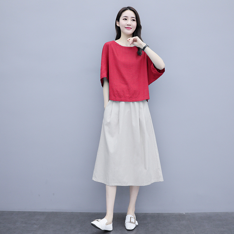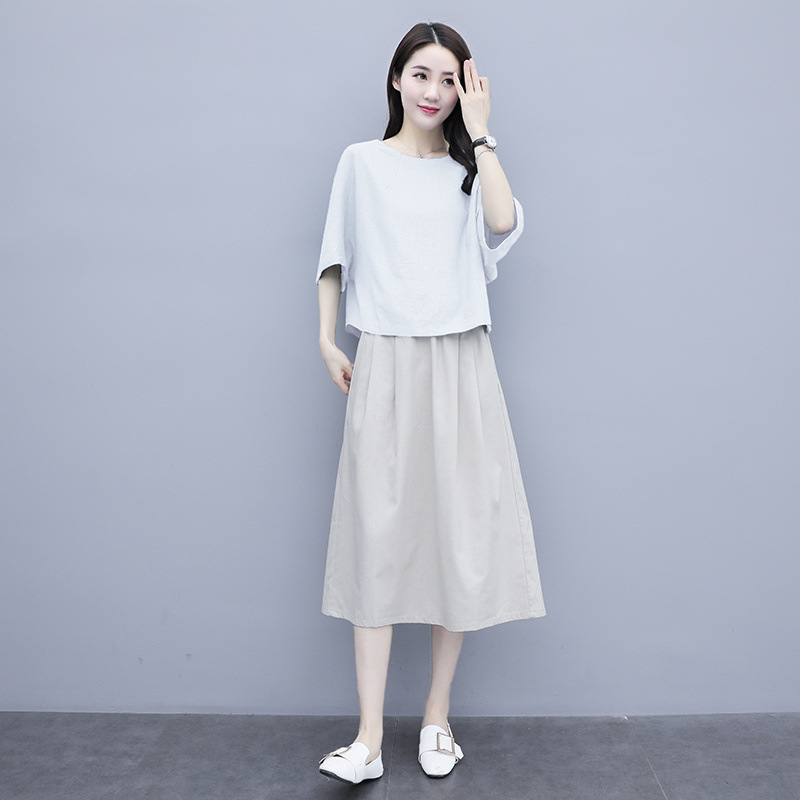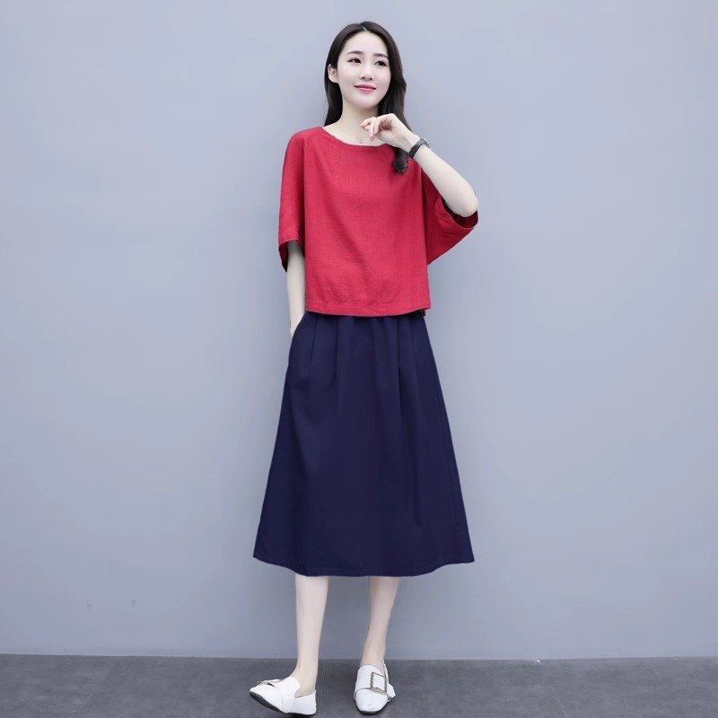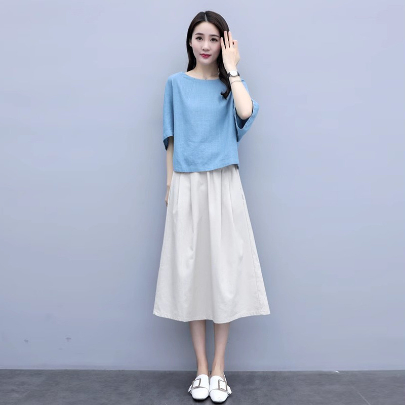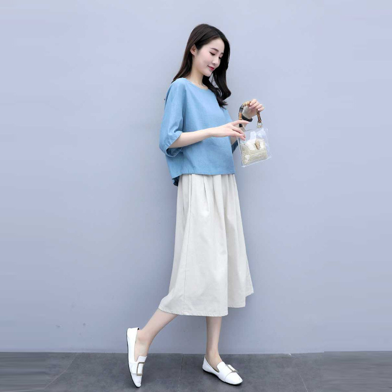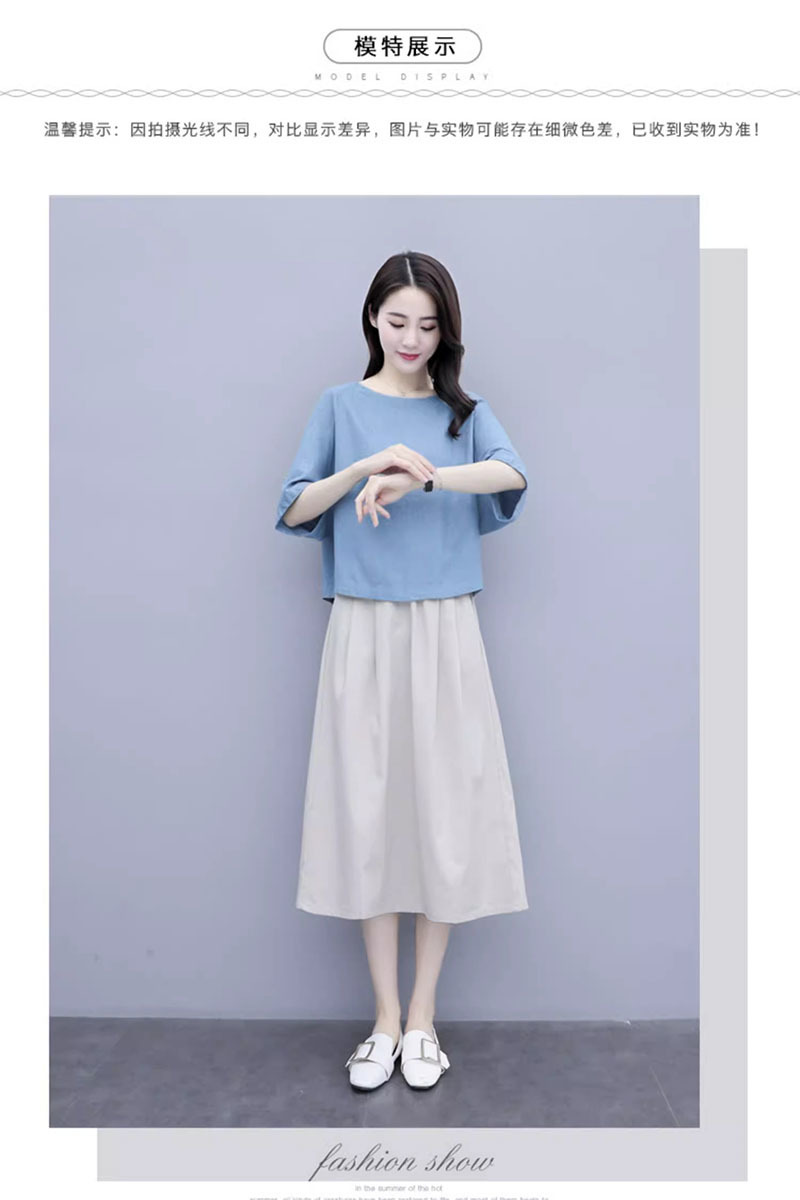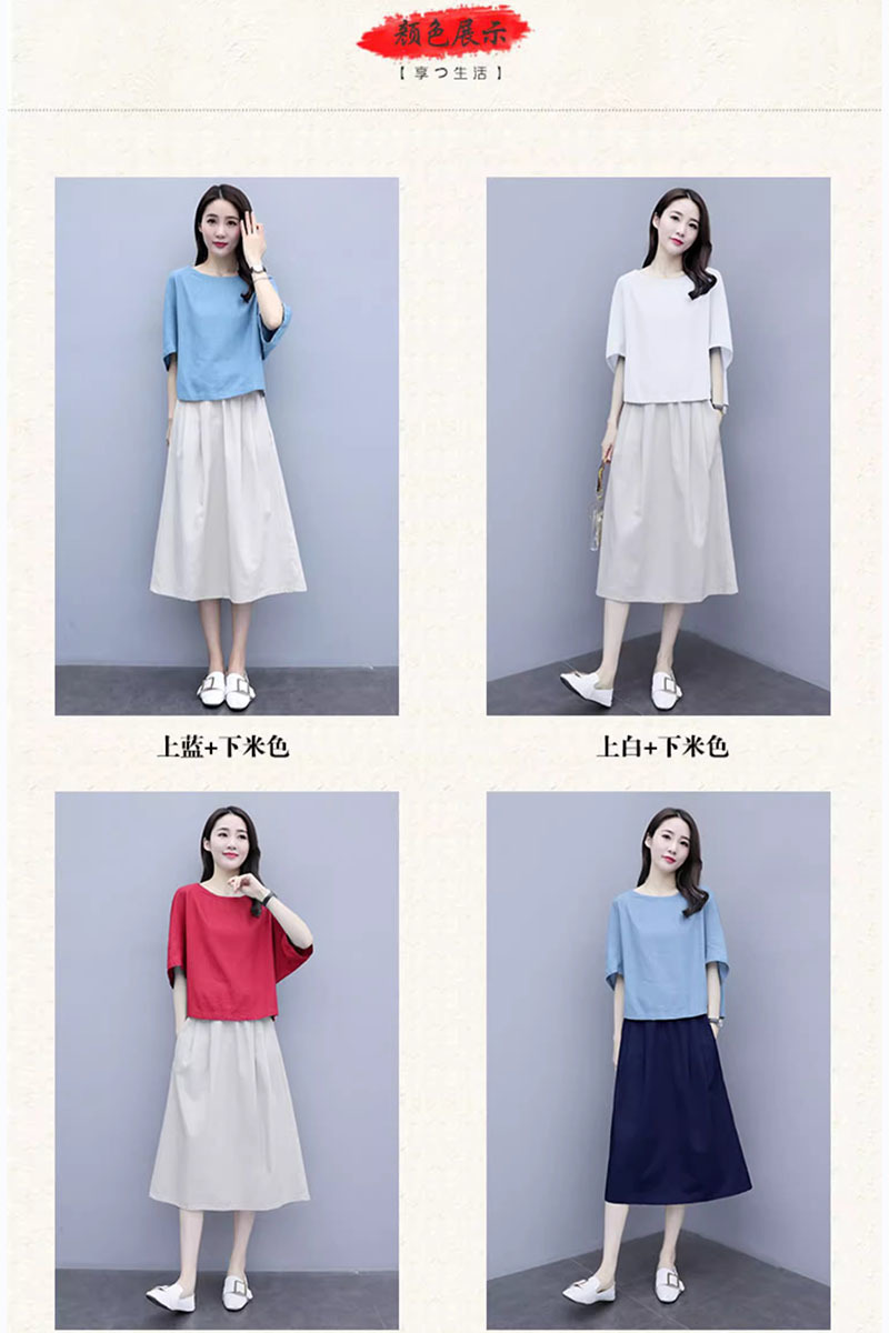 Летнее платье из хлопка и льна для женщин 2025 года, модный корейский стиль, антивозрастной эффект, двухкомпонентный костюм, льняная юбка средней длины, тренд