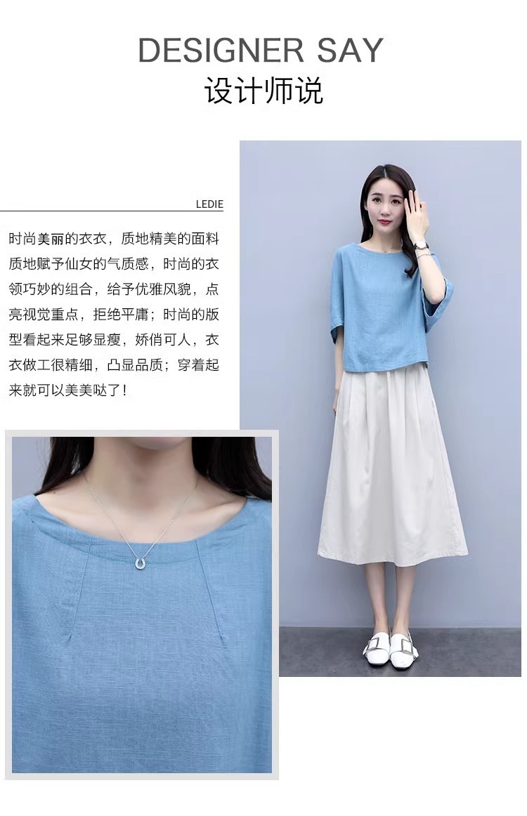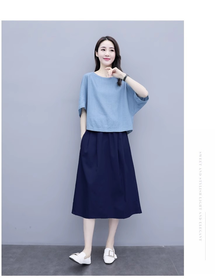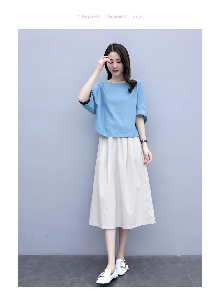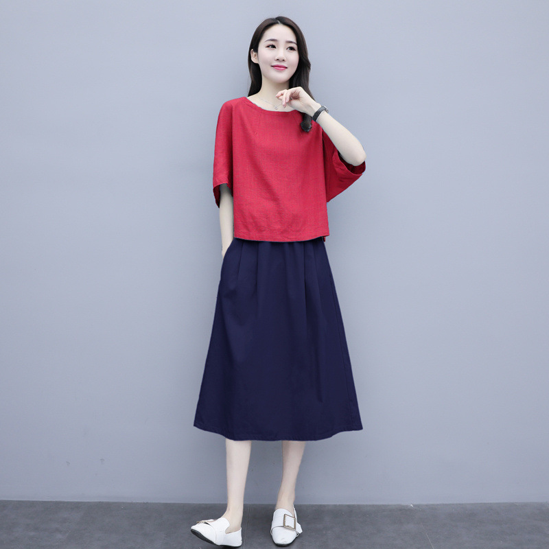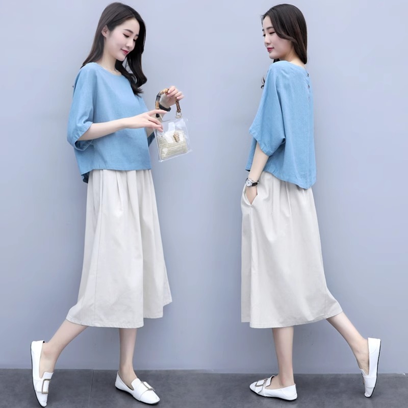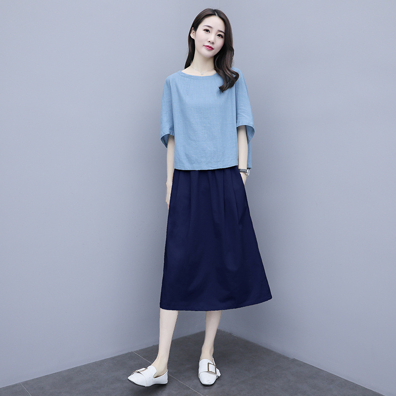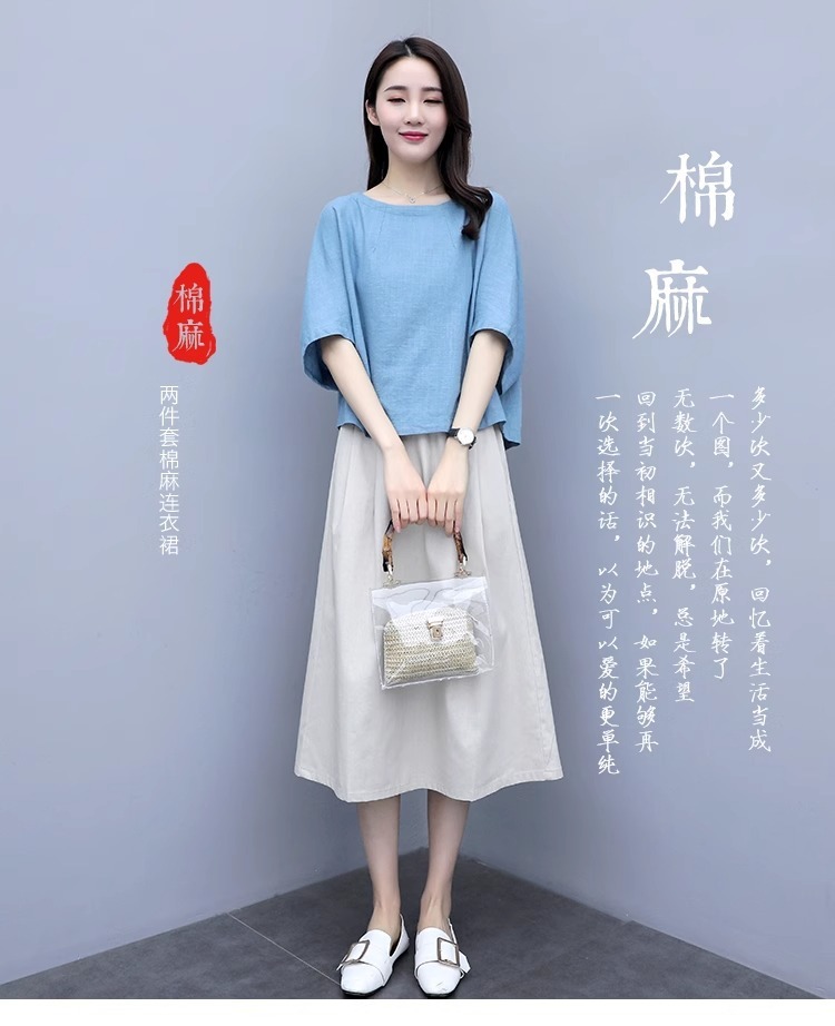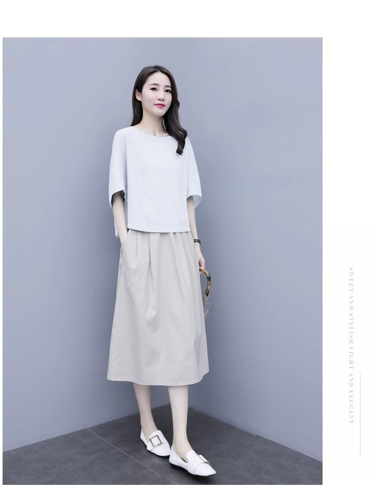 Летнее платье из хлопка и льна для женщин 2025 года, модный корейский стиль, антивозрастной эффект, двухкомпонентный костюм, льняная юбка средней длины, тренд