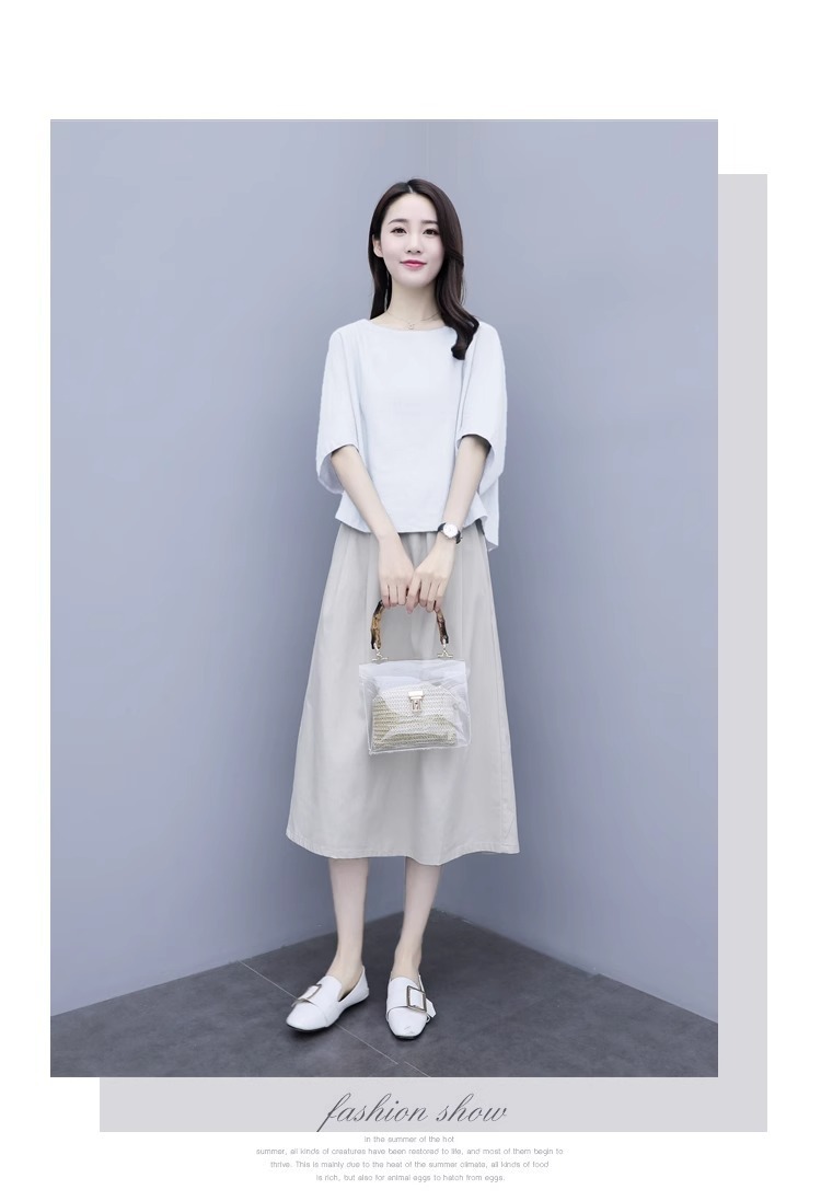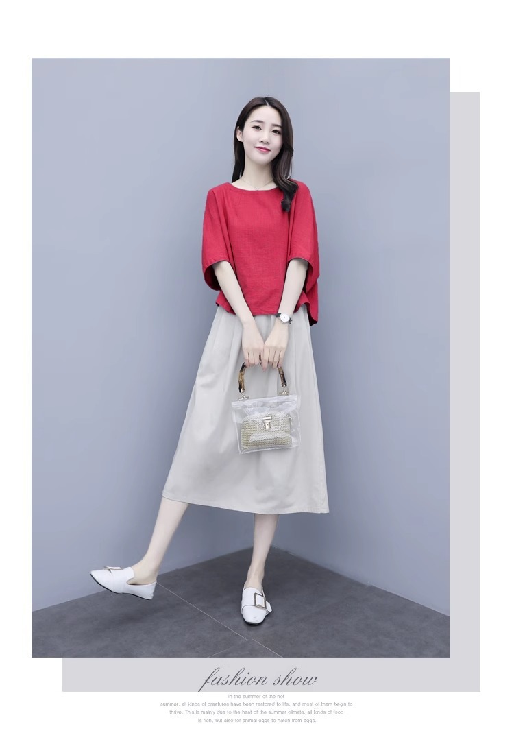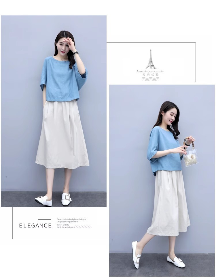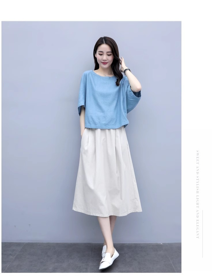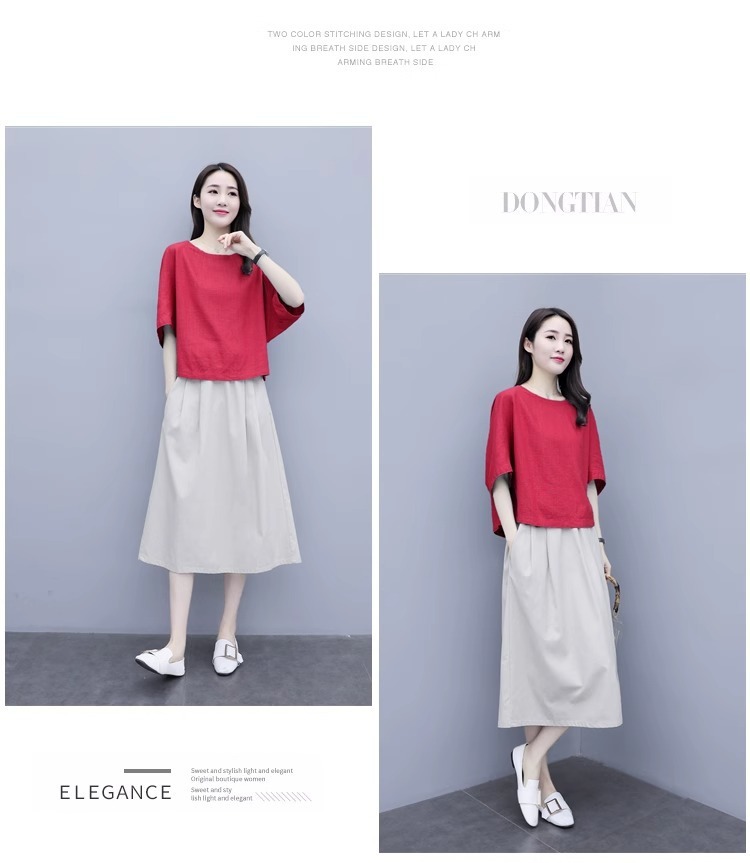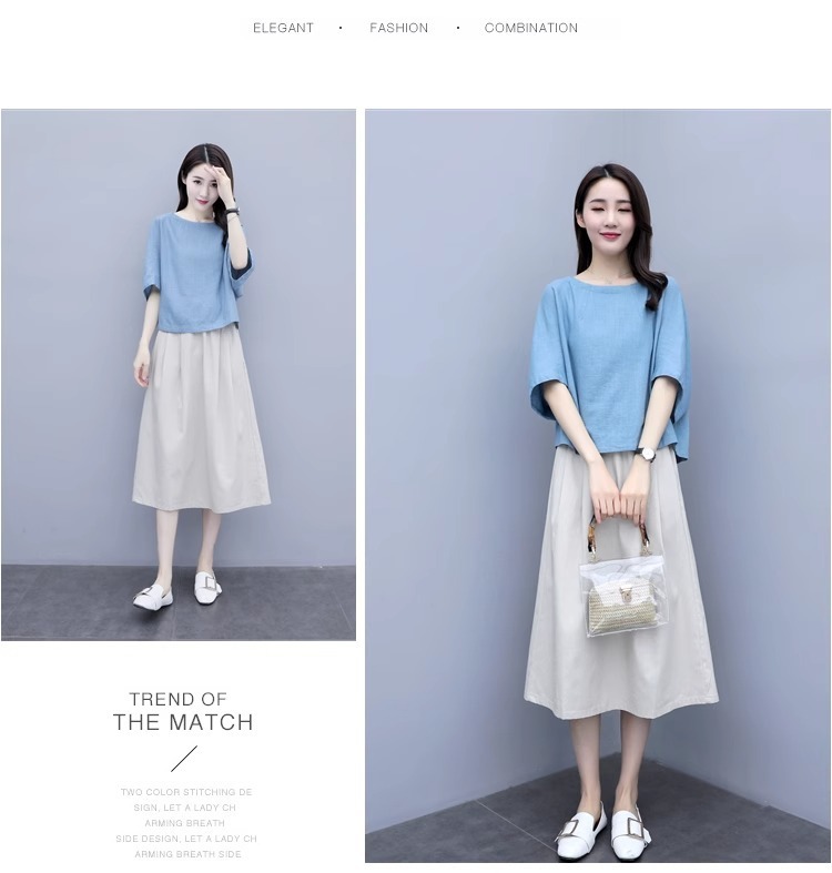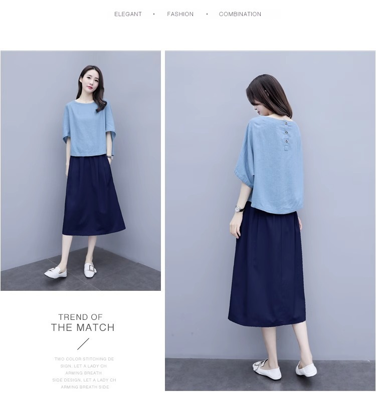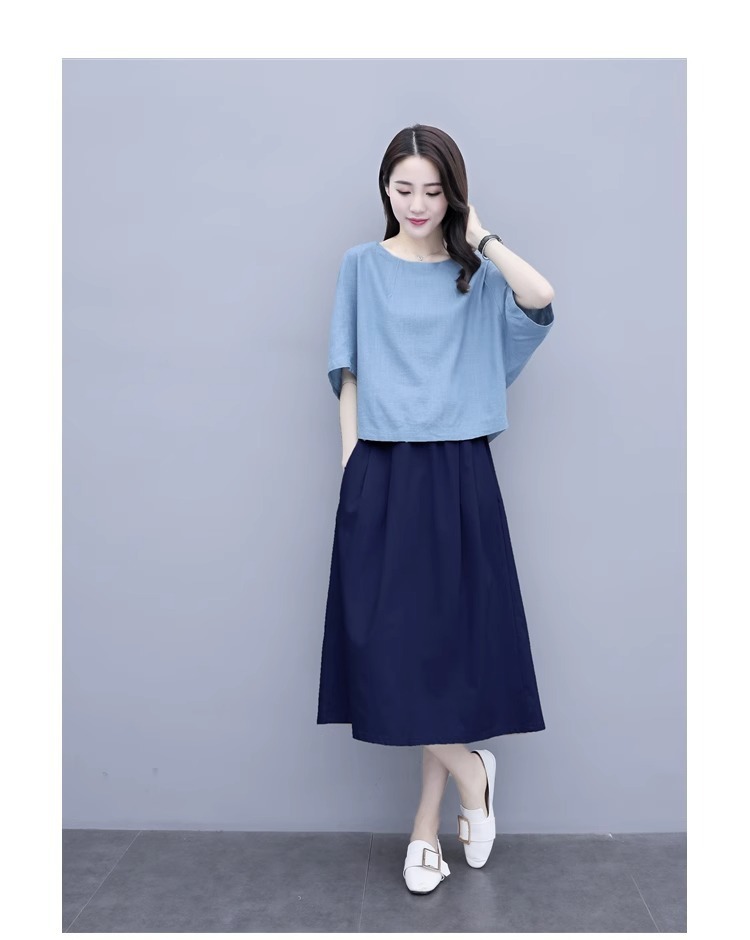 Летнее платье из хлопка и льна для женщин 2025 года, модный корейский стиль, антивозрастной эффект, двухкомпонентный костюм, льняная юбка средней длины, тренд