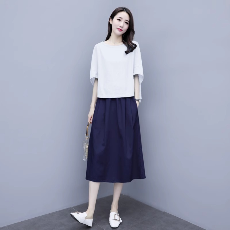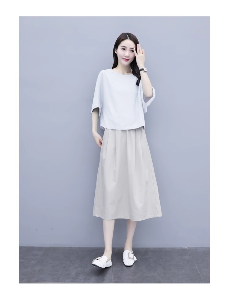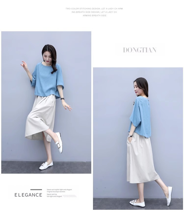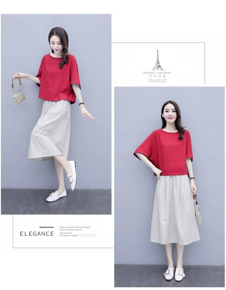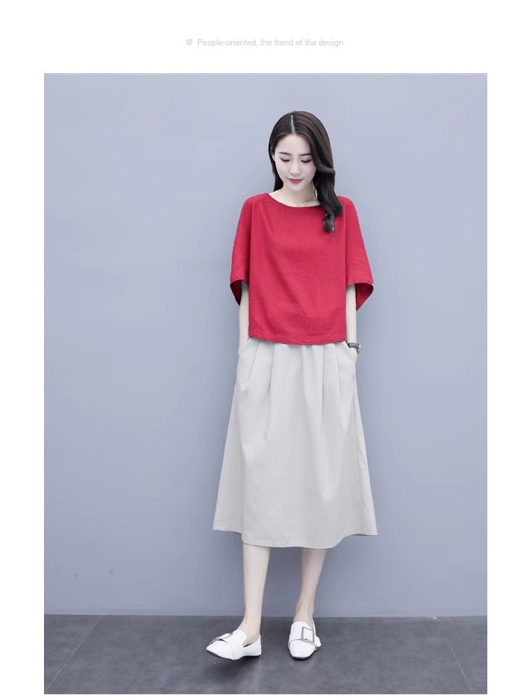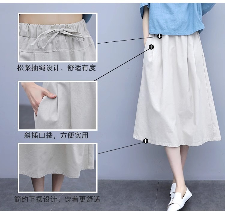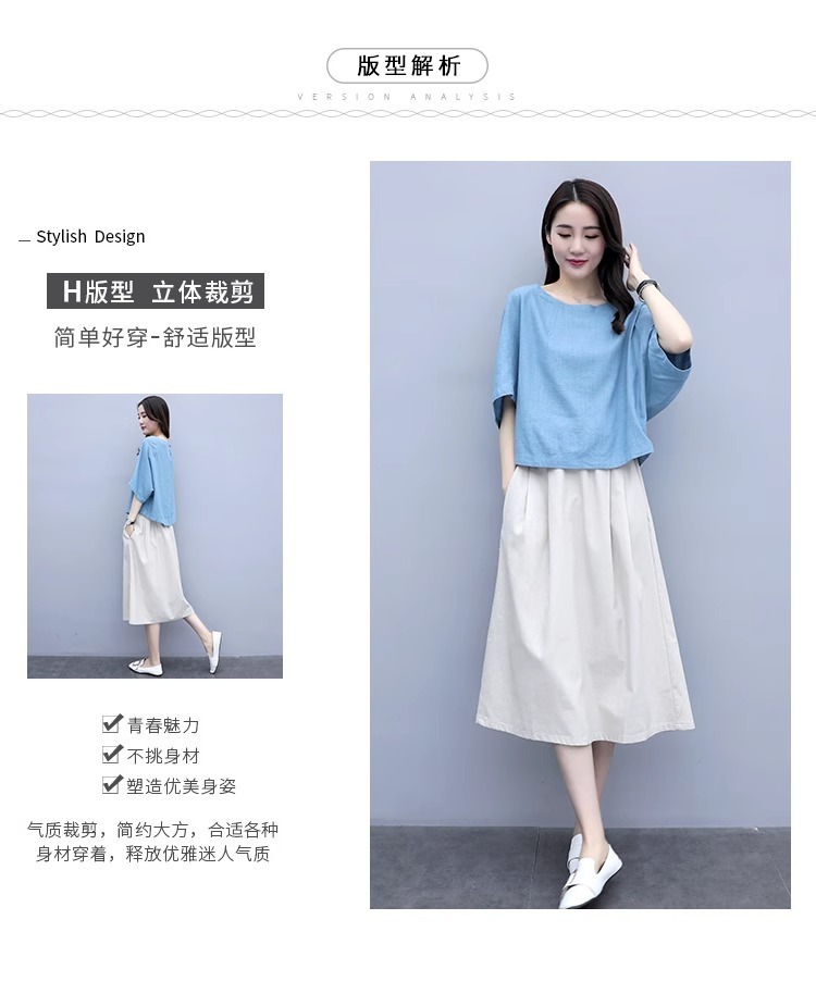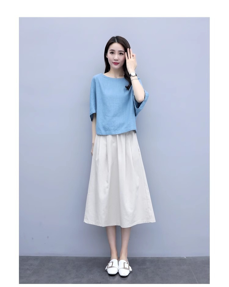 Летнее платье из хлопка и льна для женщин 2025 года, модный корейский стиль, антивозрастной эффект, двухкомпонентный костюм, льняная юбка средней длины, тренд