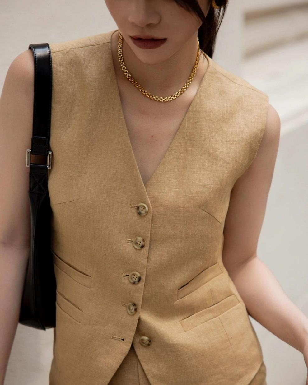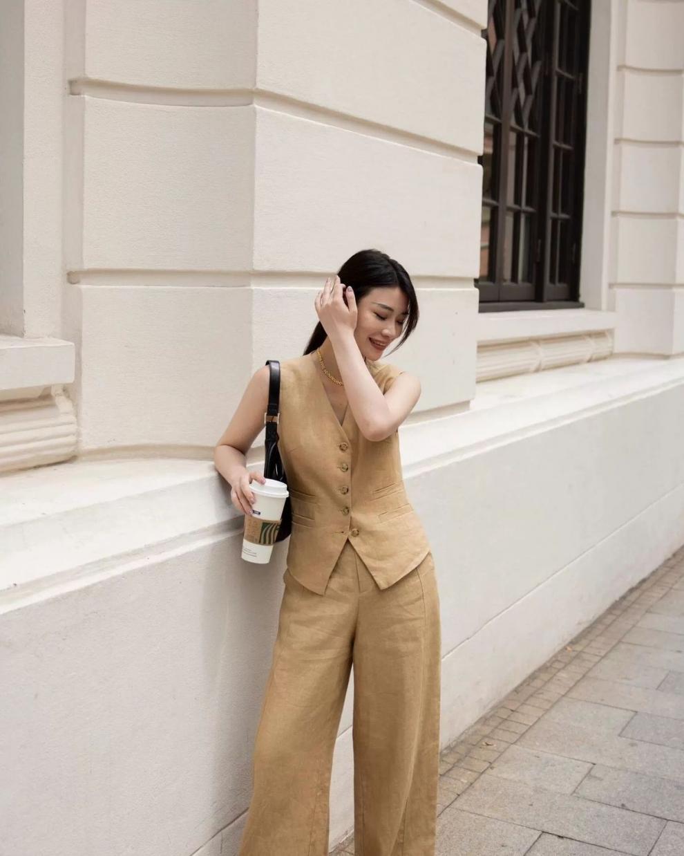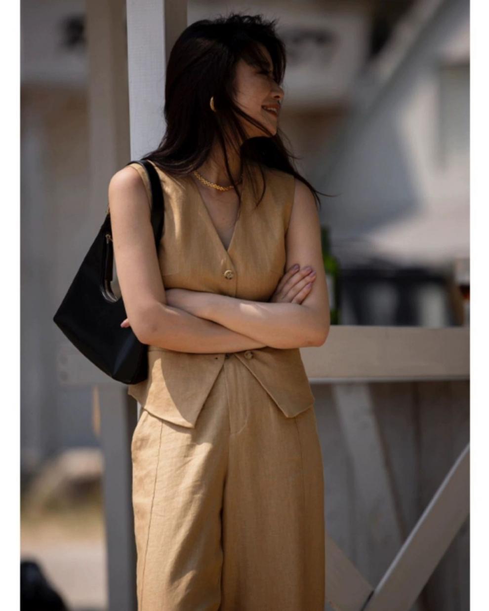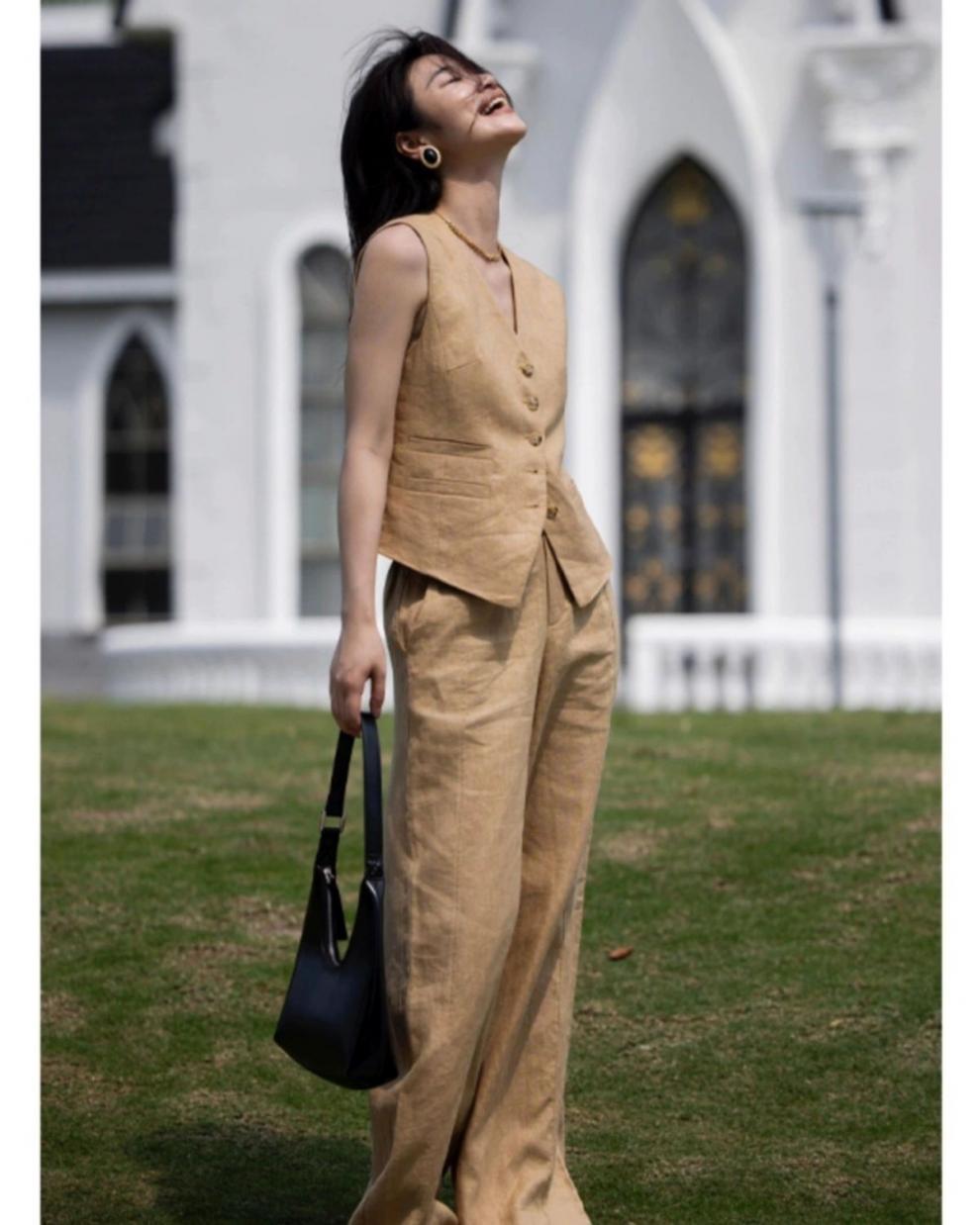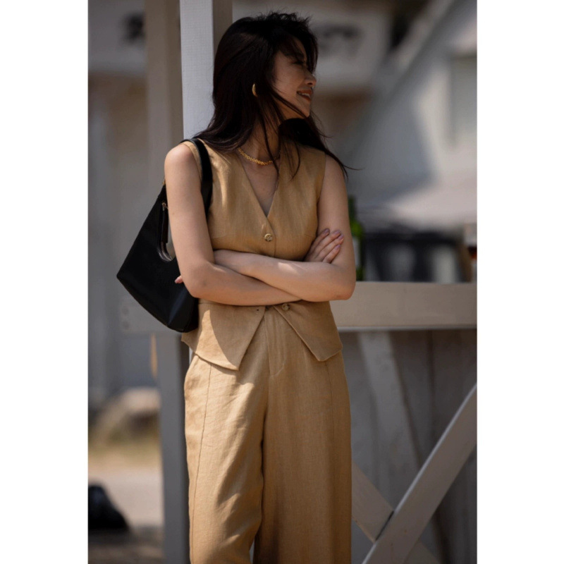Модный льняной костюм для женщин лето 2025, элегантный высококачественный костюм из хлопка и льна, жилет, топ, широкие брюки, комплект из двух предметов