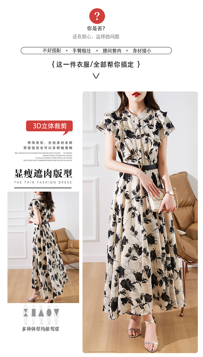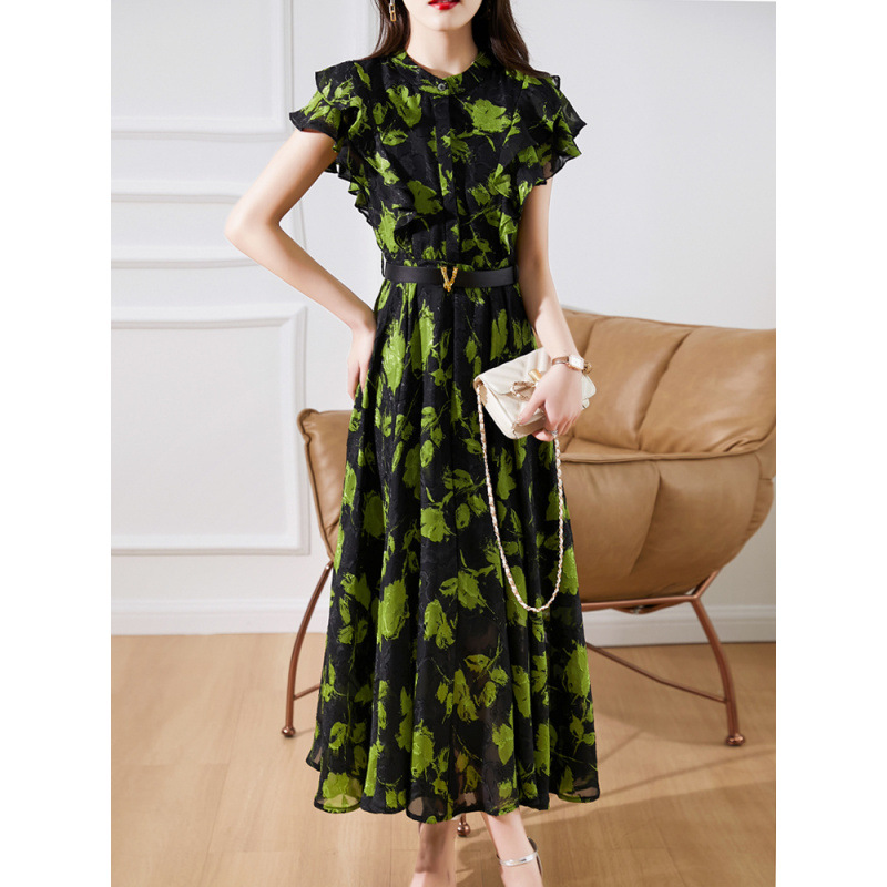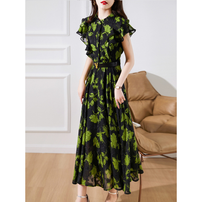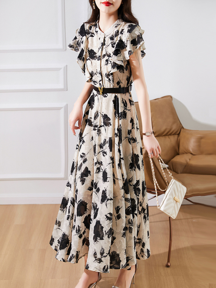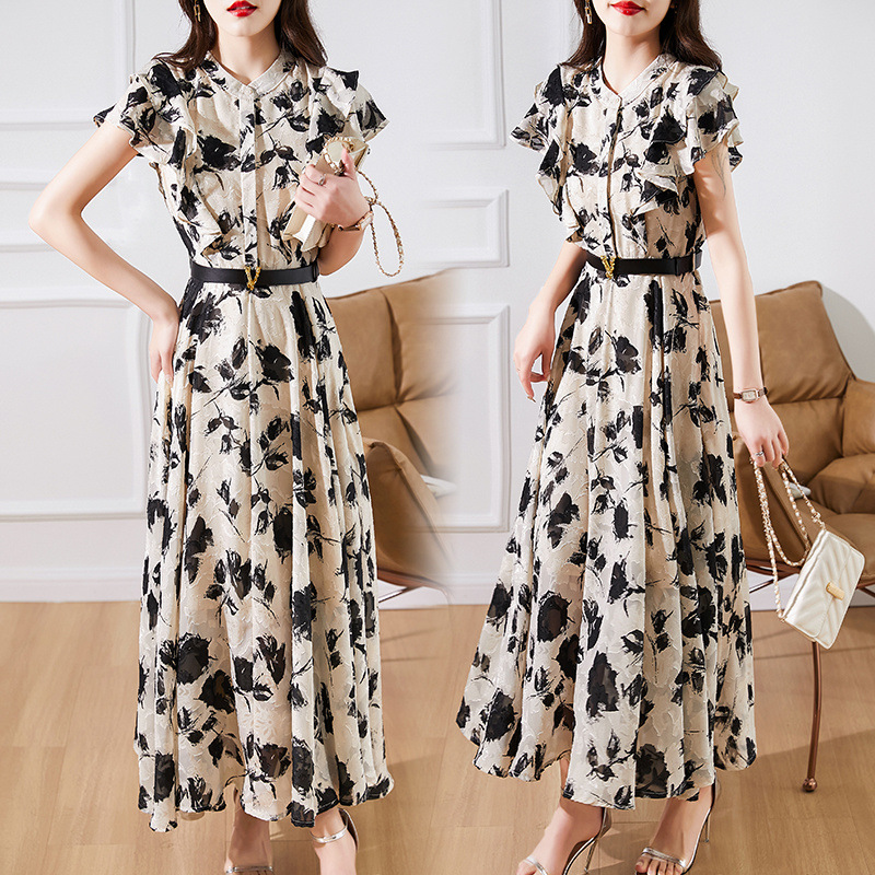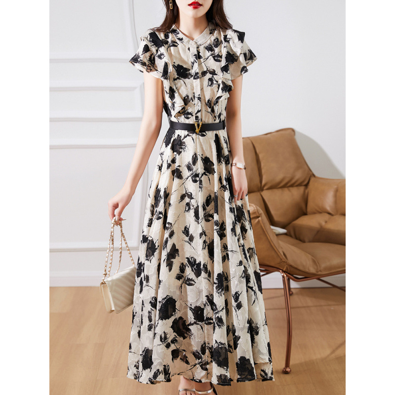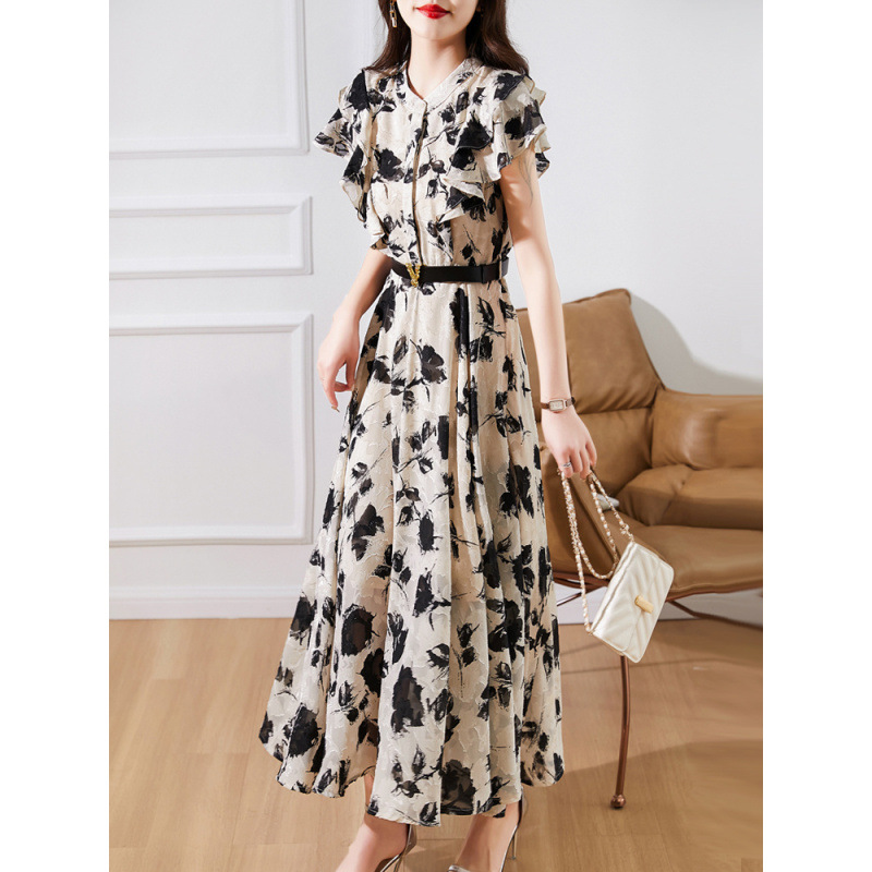 Платье с принтом для женщин, лето 2025, новая мода, элегантный нежный стиль, королевская сестра, утягивающая талию, юбка средней длины с цветочным принтом