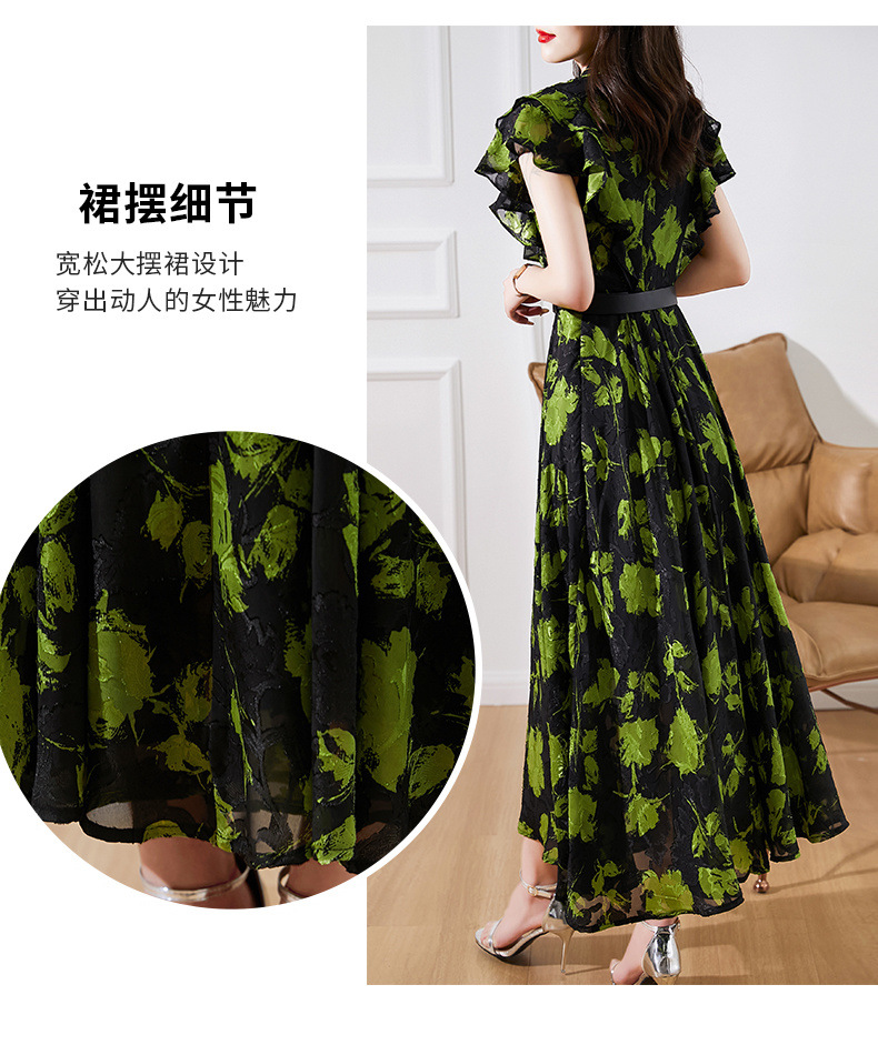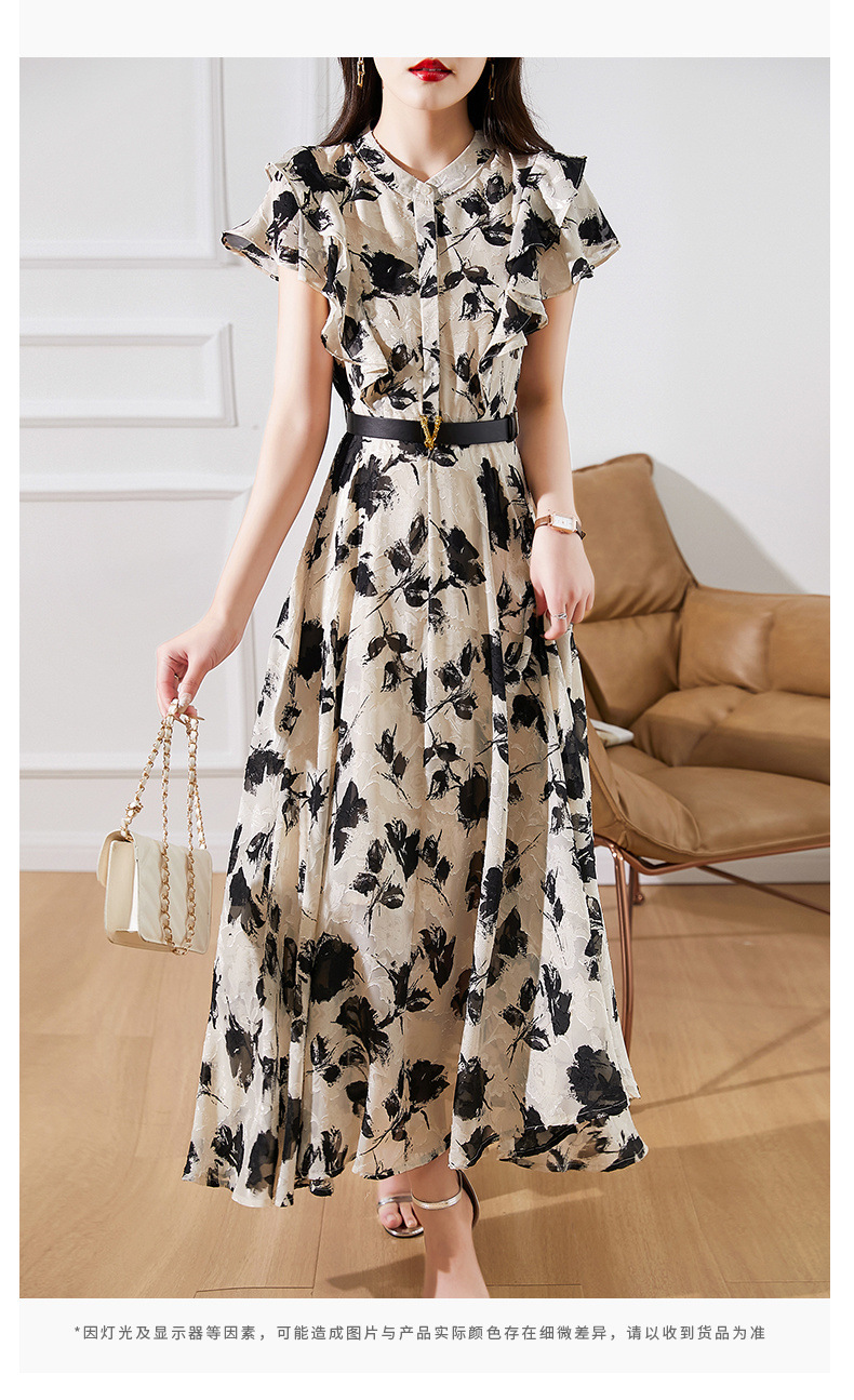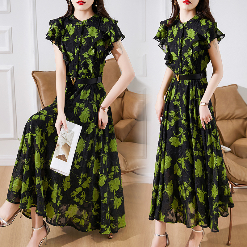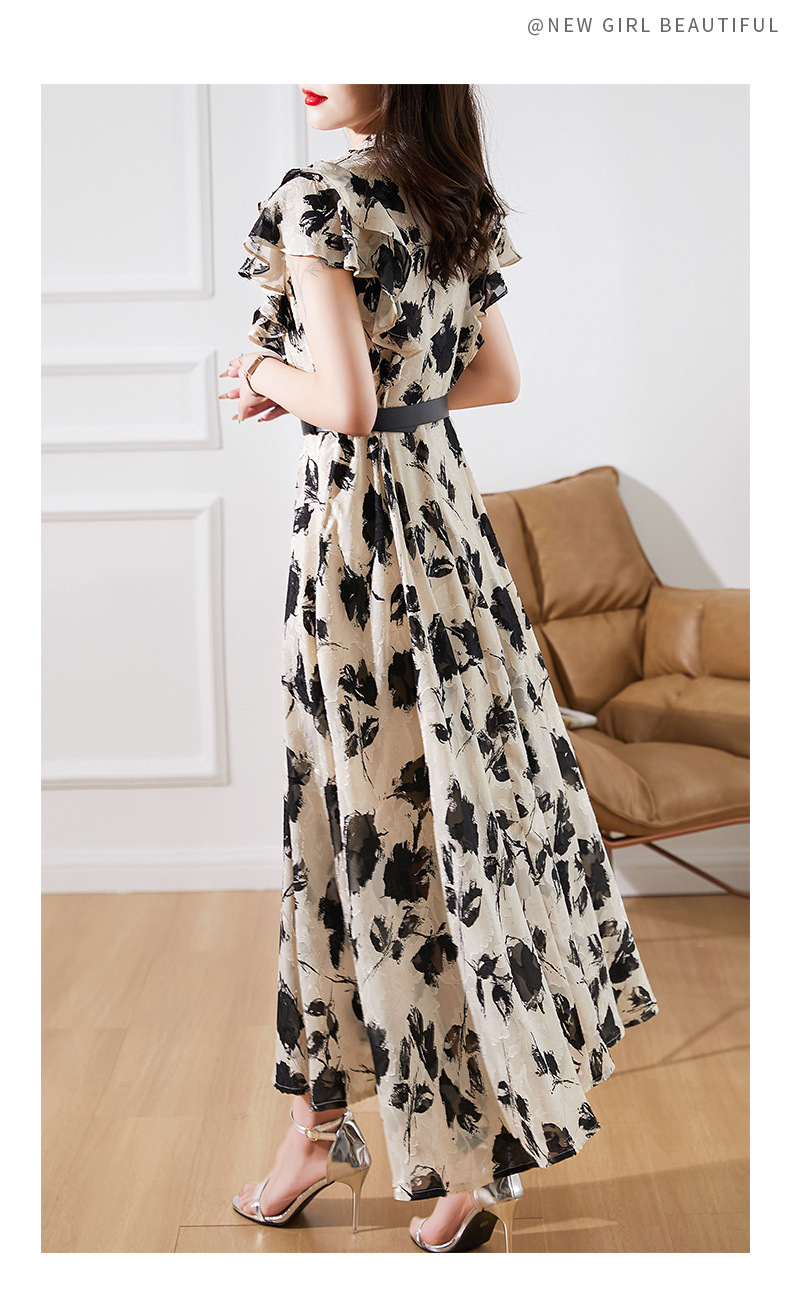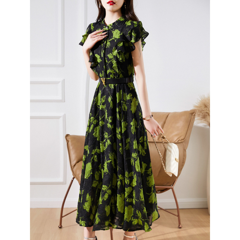 Платье с принтом для женщин, лето 2025, новая мода, элегантный нежный стиль, королевская сестра, утягивающая талию, юбка средней длины с цветочным принтом
