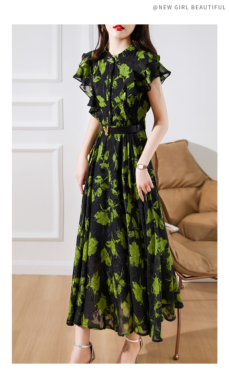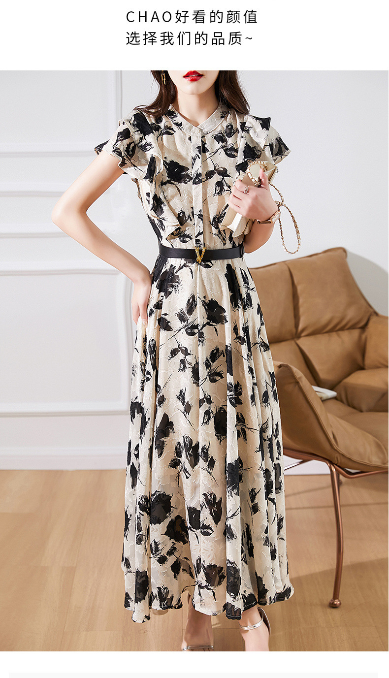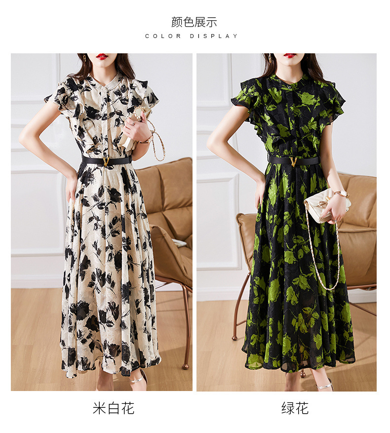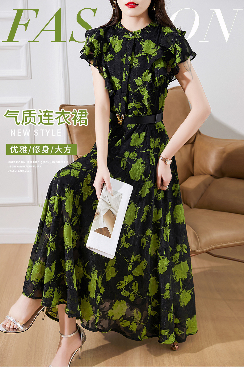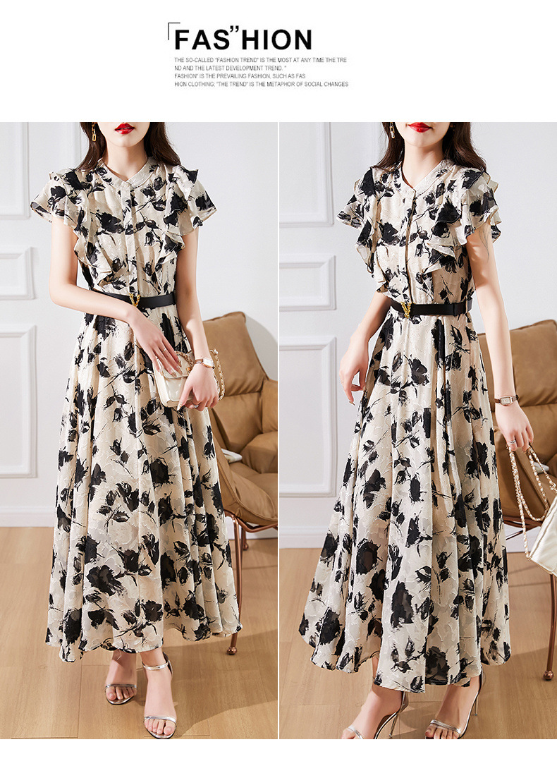 Платье с принтом для женщин, лето 2025, новая мода, элегантный нежный стиль, королевская сестра, утягивающая талию, юбка средней длины с цветочным принтом