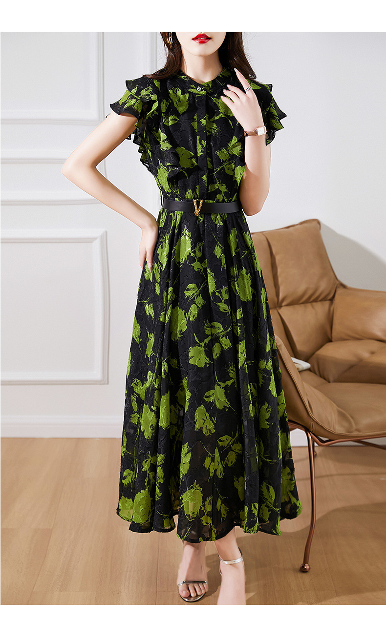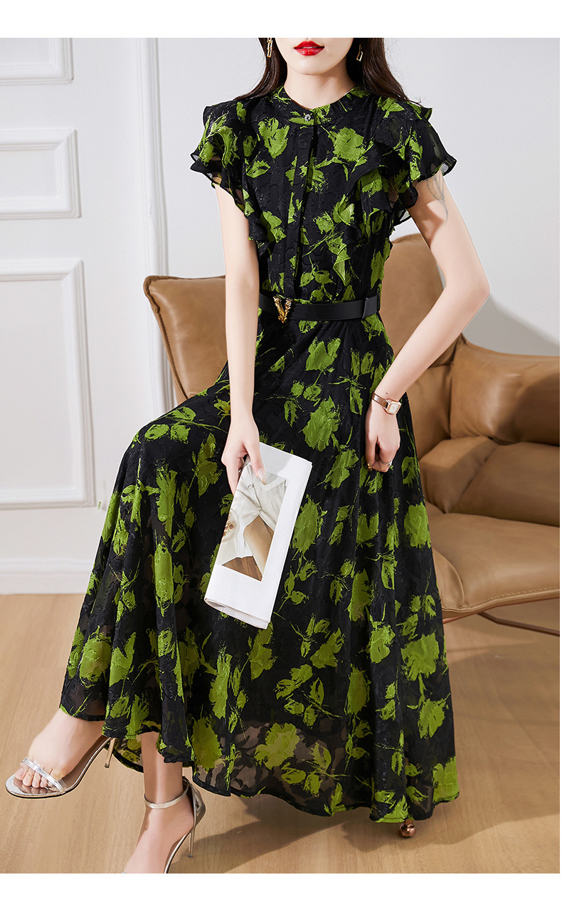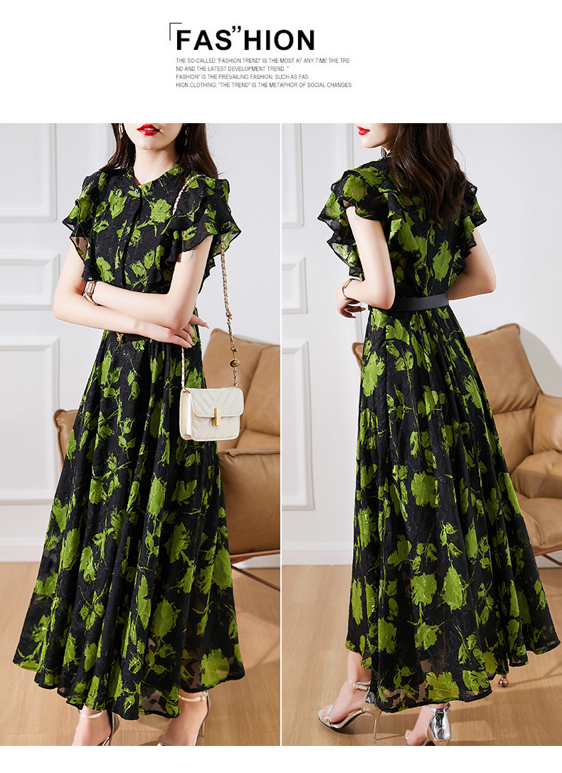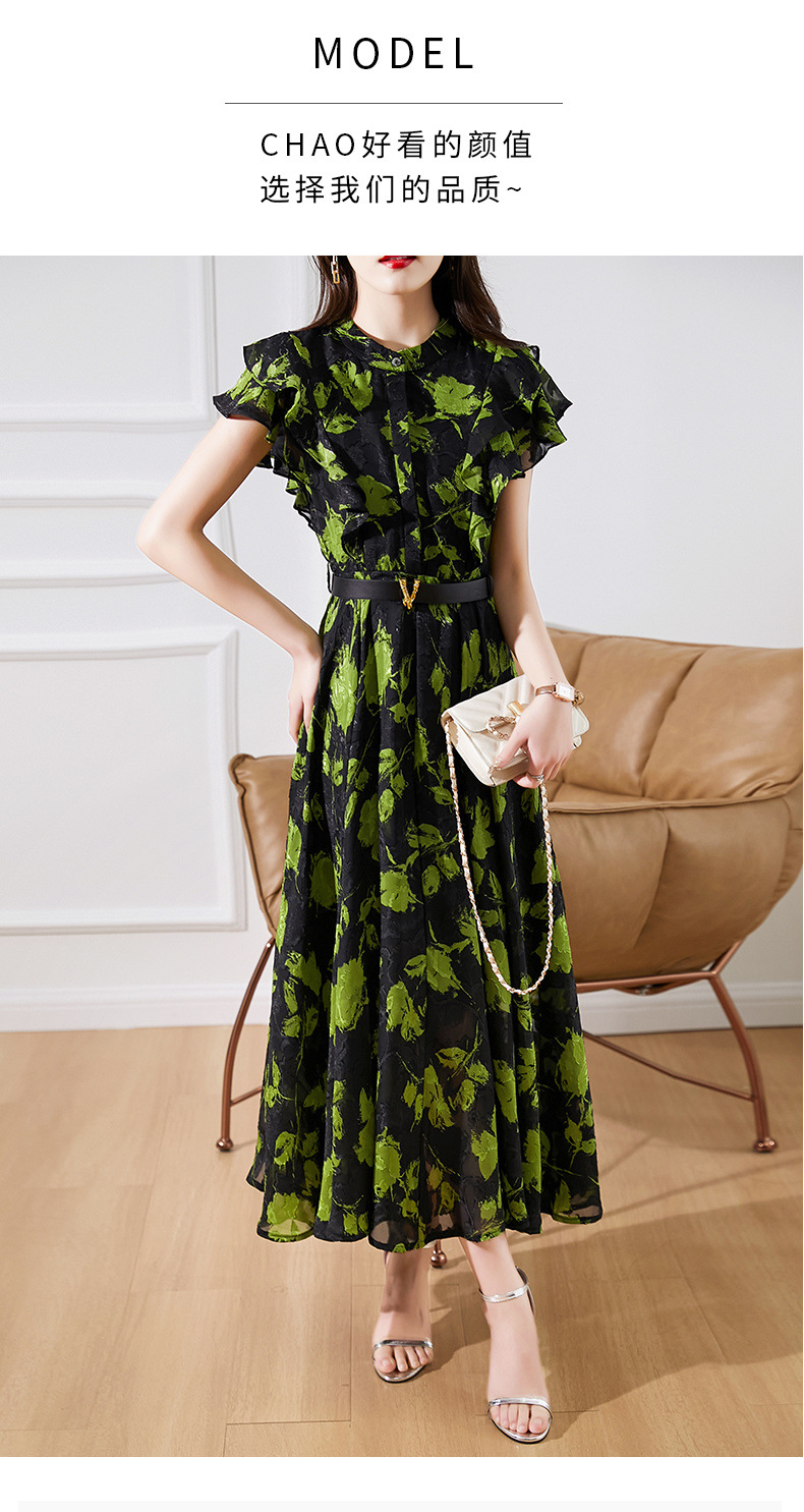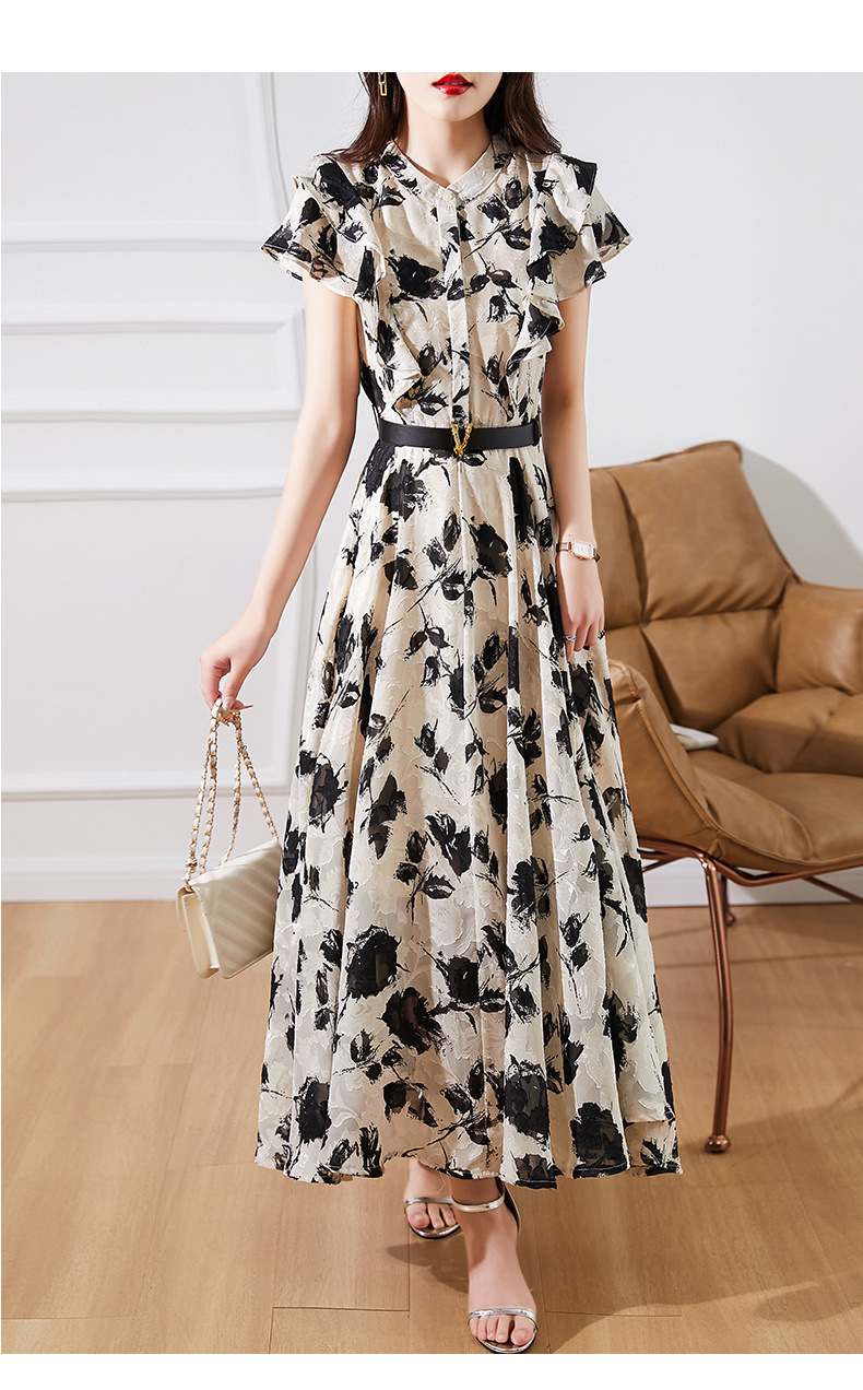 Платье с принтом для женщин, лето 2025, новая мода, элегантный нежный стиль, королевская сестра, утягивающая талию, юбка средней длины с цветочным принтом
