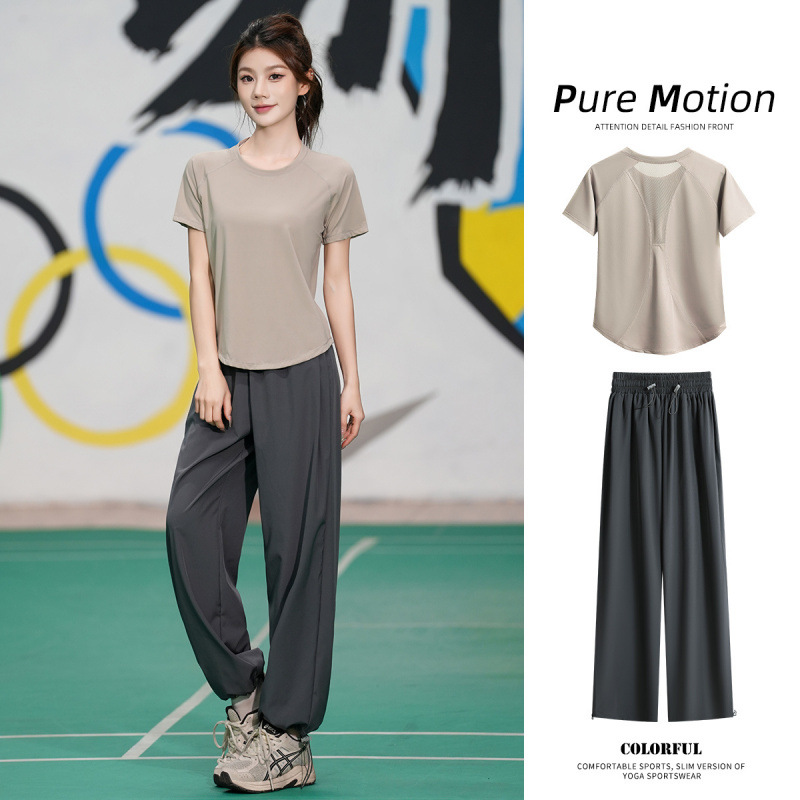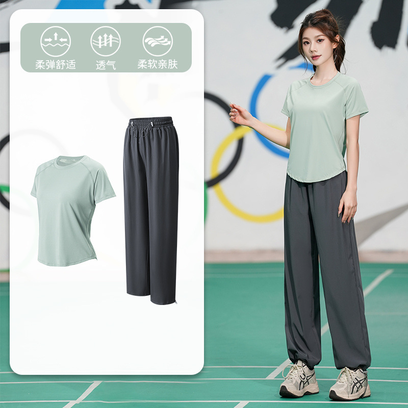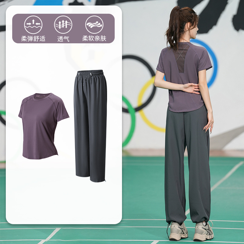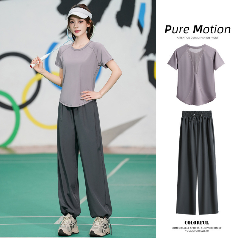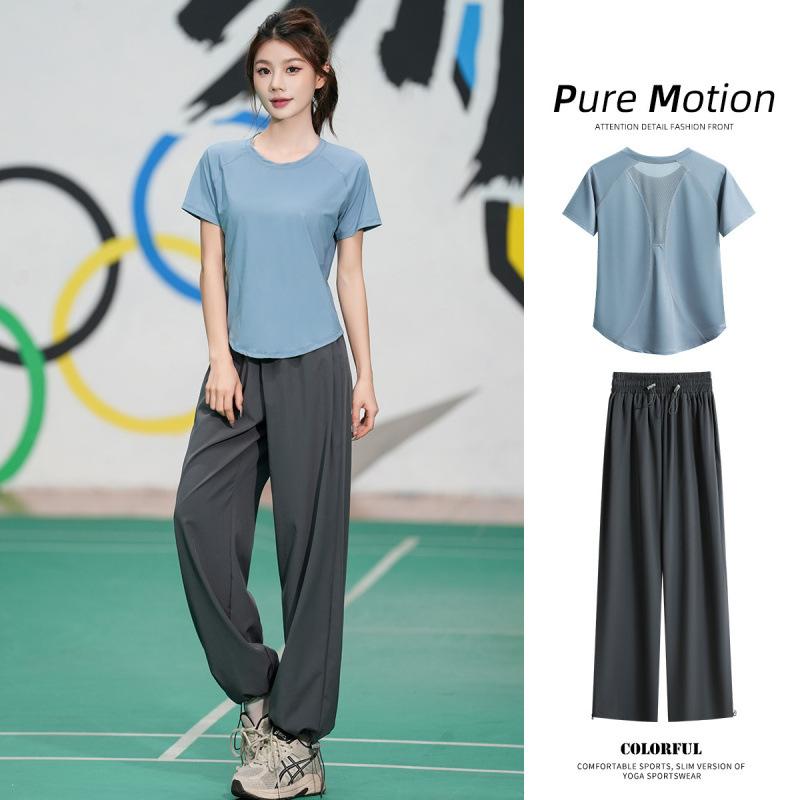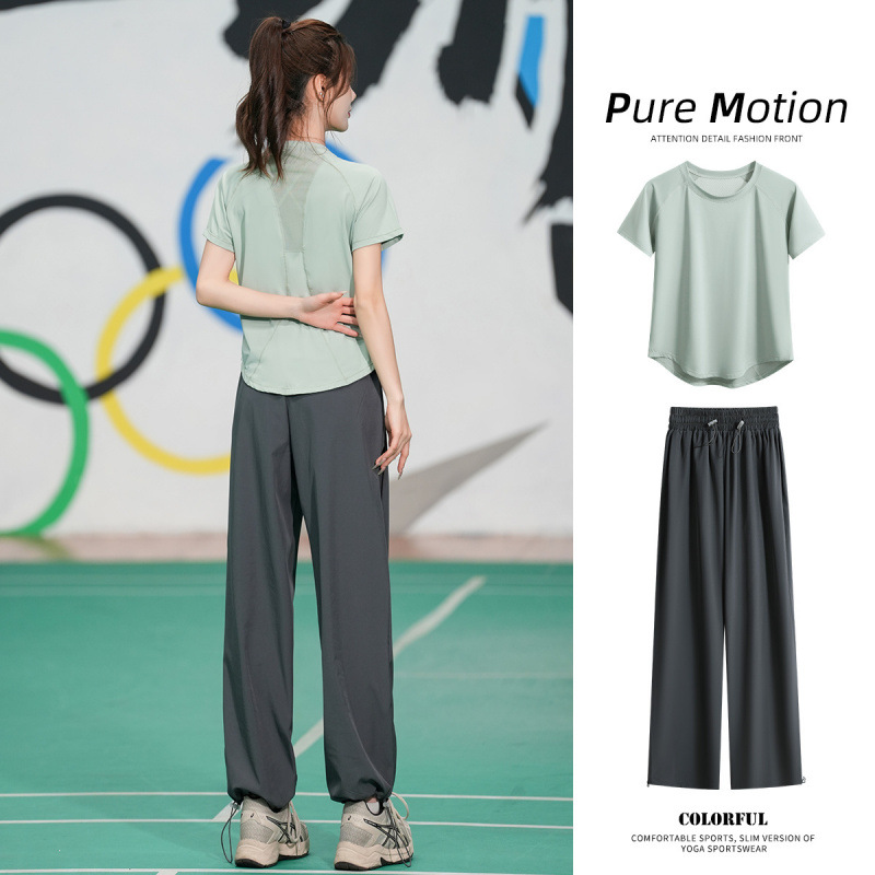 Профессиональный костюм для бега, быстросохнущий спортивный костюм, спортивный костюм для йоги, тонкий свободный уличный летний дышащий костюм для фитнеса с короткими рукавами