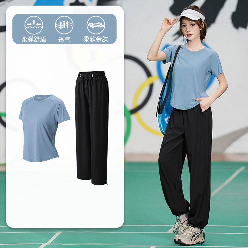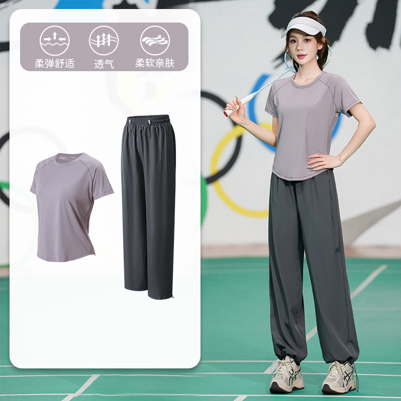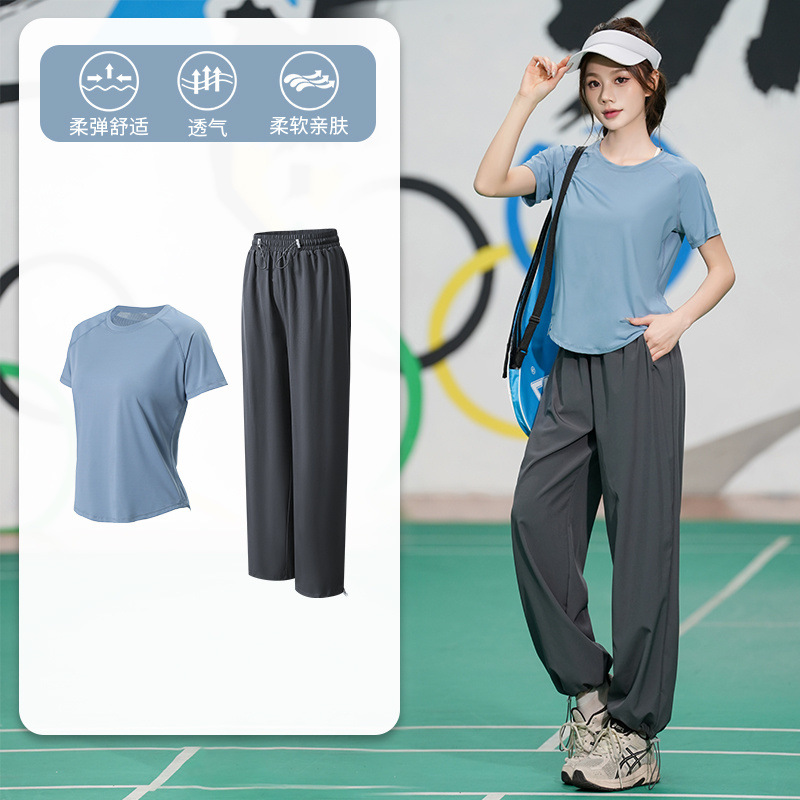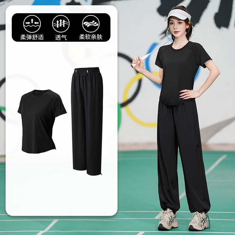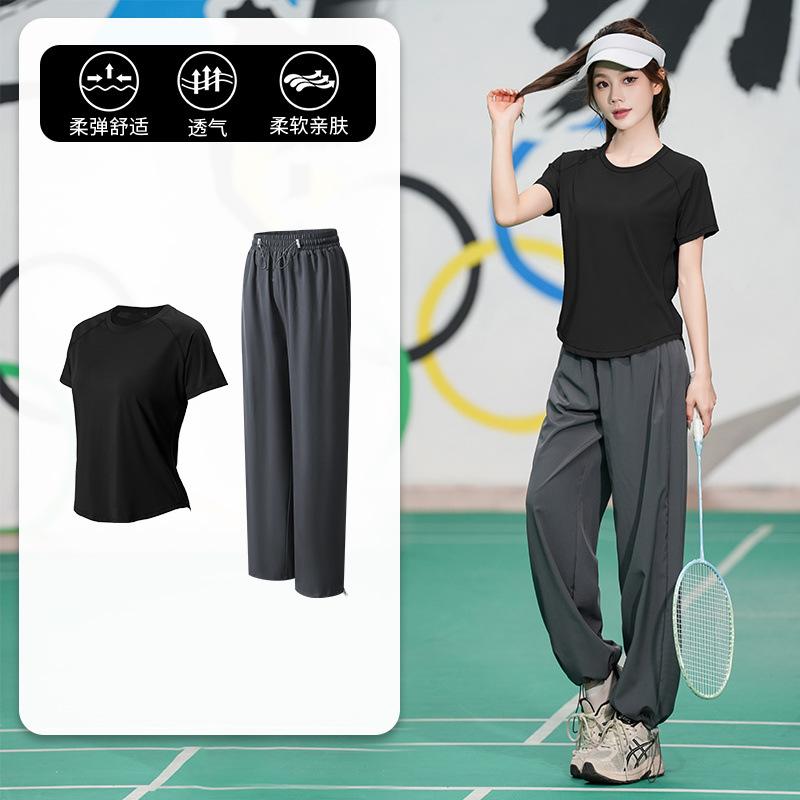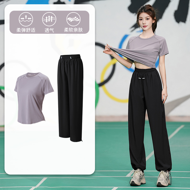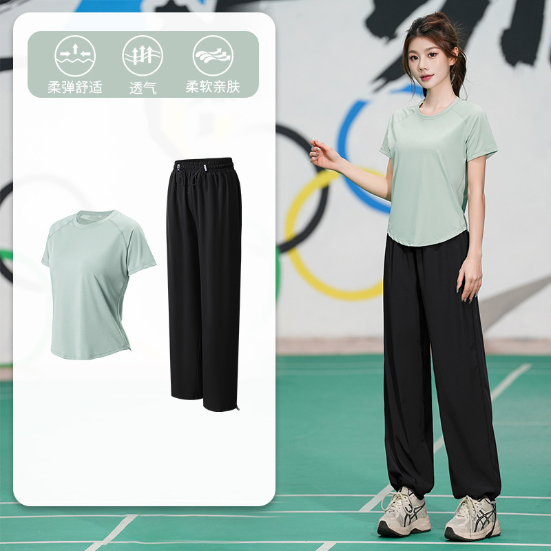 Профессиональный костюм для бега, быстросохнущий спортивный костюм, спортивный костюм для йоги, тонкий свободный уличный летний дышащий костюм для фитнеса с короткими рукавами