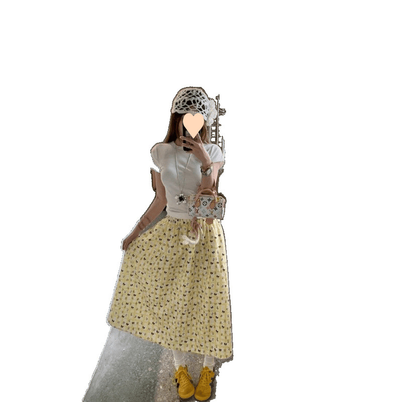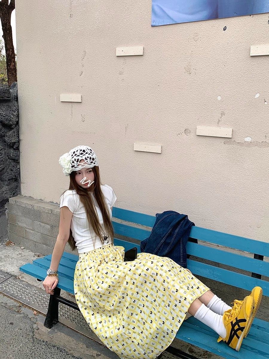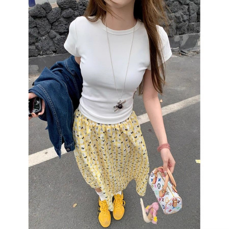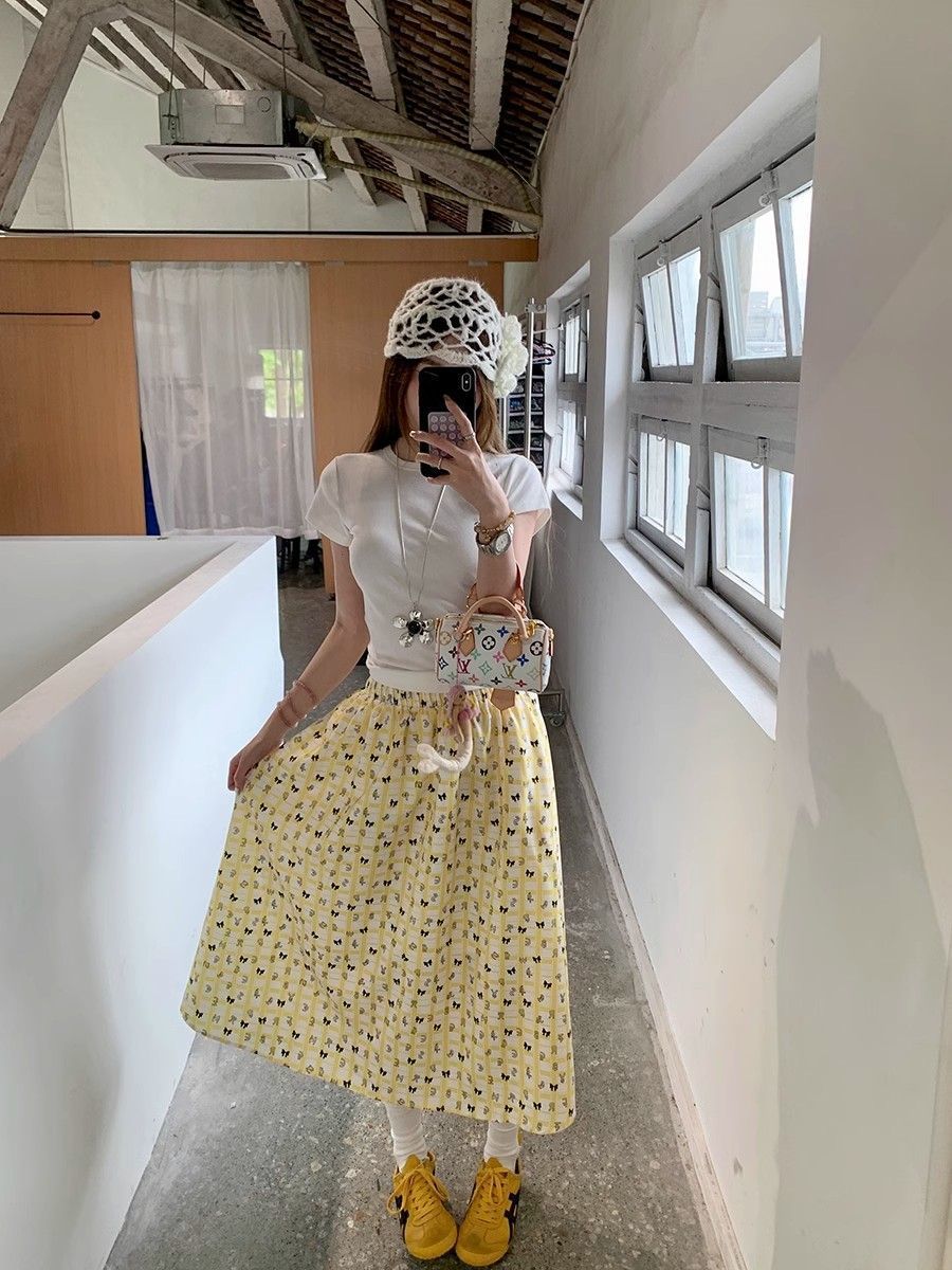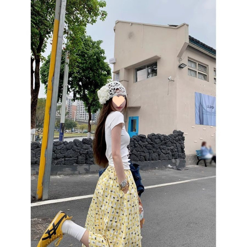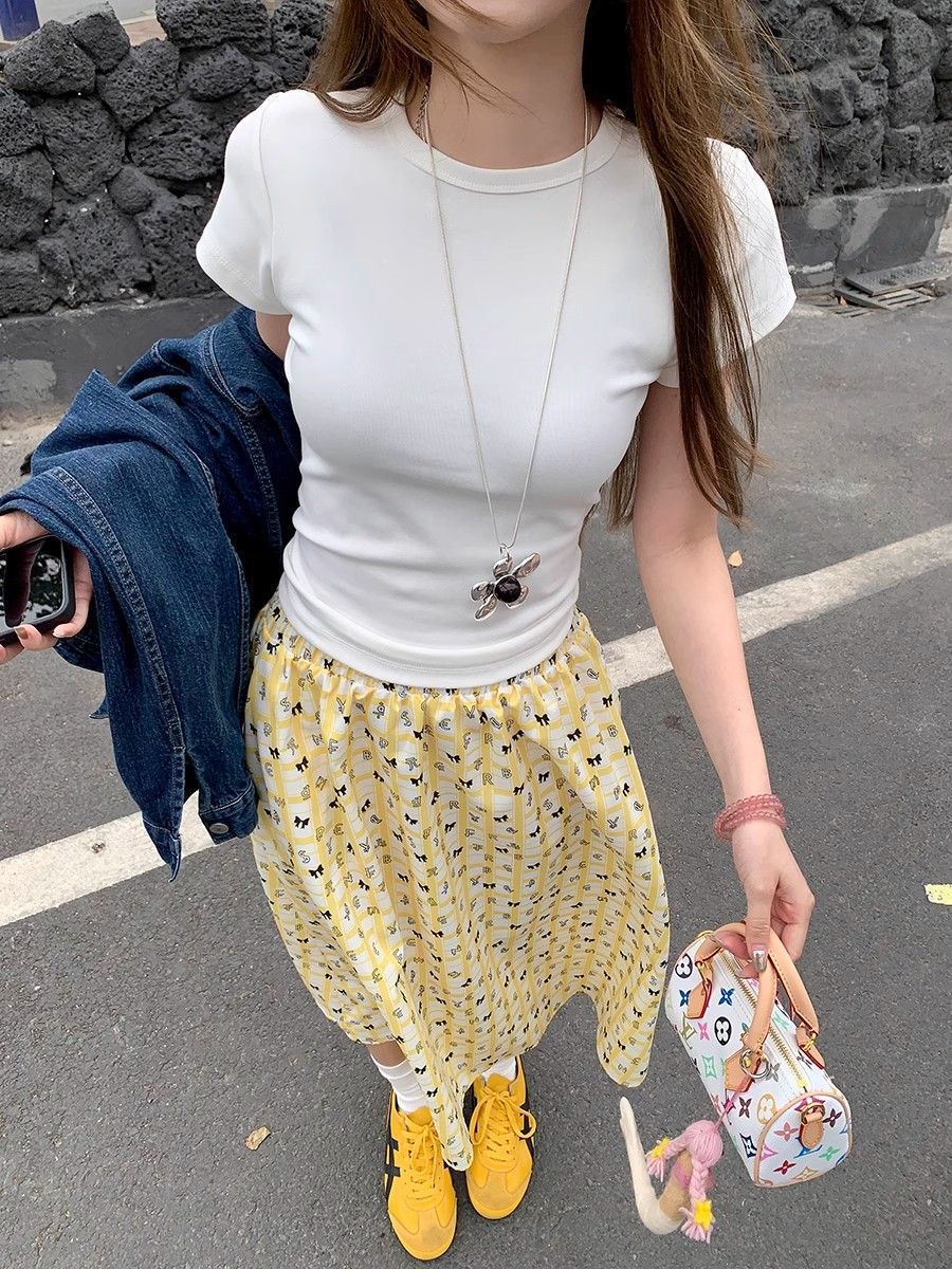 Летняя желтая новая юбка с принтом в клетку и бабочками, эластичная, с высокой талией, утягивающая, универсальная, длинная пышная юбка 2025