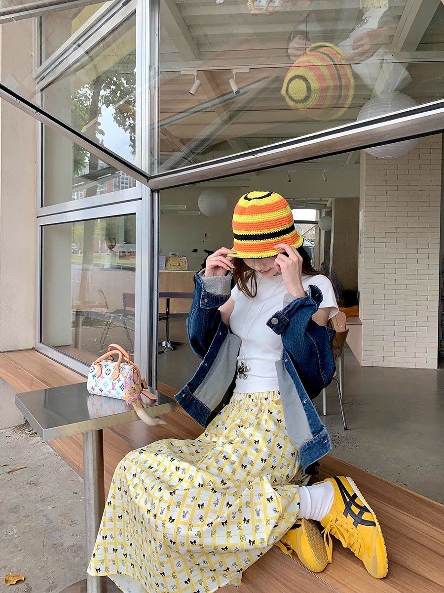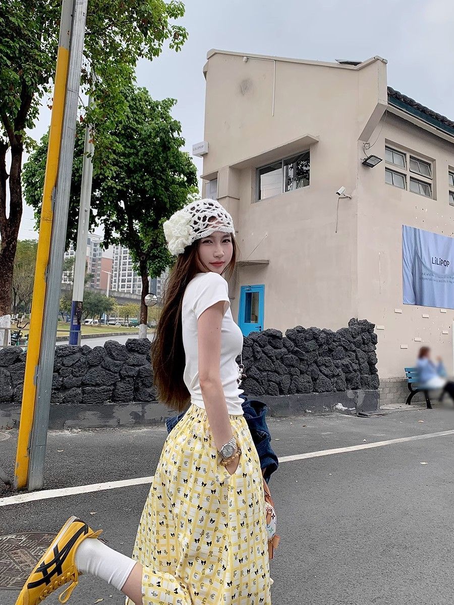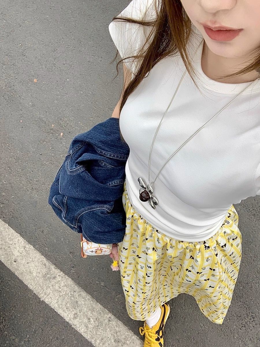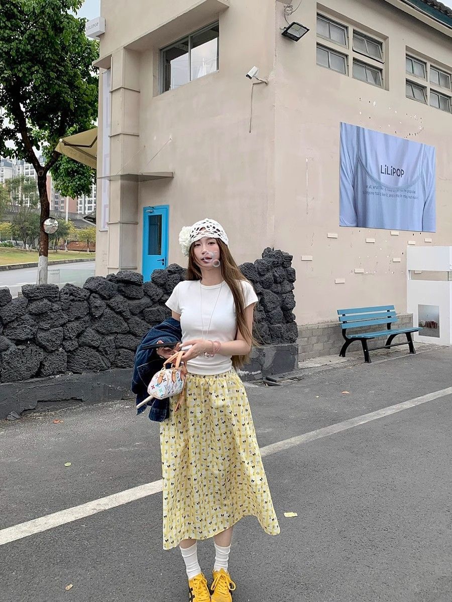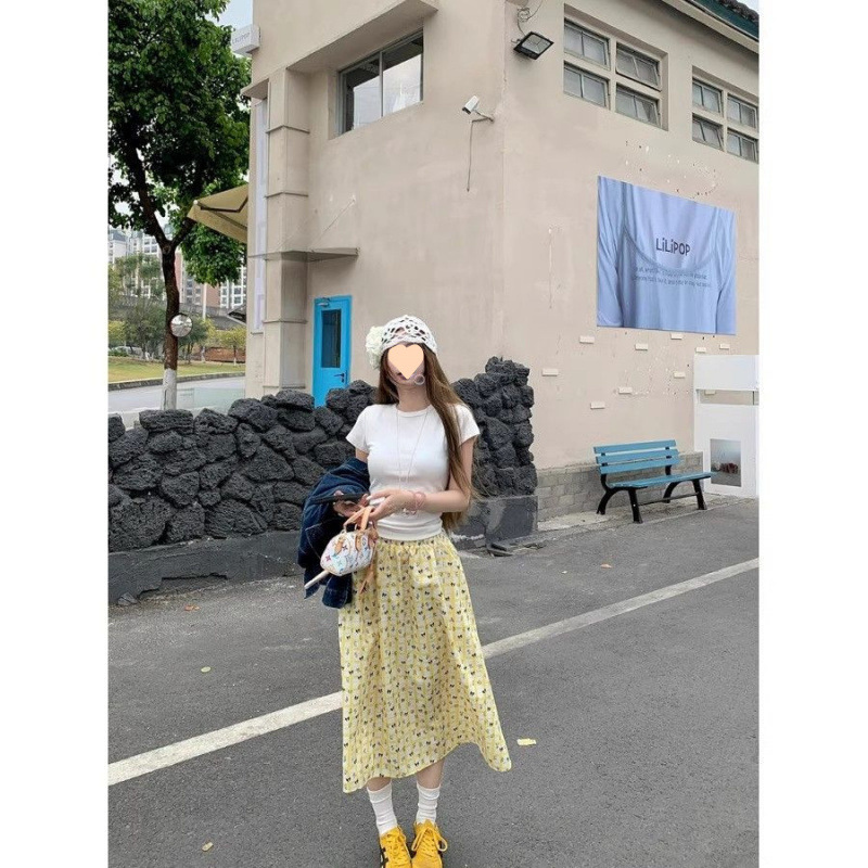 Летняя желтая новая юбка с принтом в клетку и бабочками, эластичная, с высокой талией, утягивающая, универсальная, длинная пышная юбка 2025