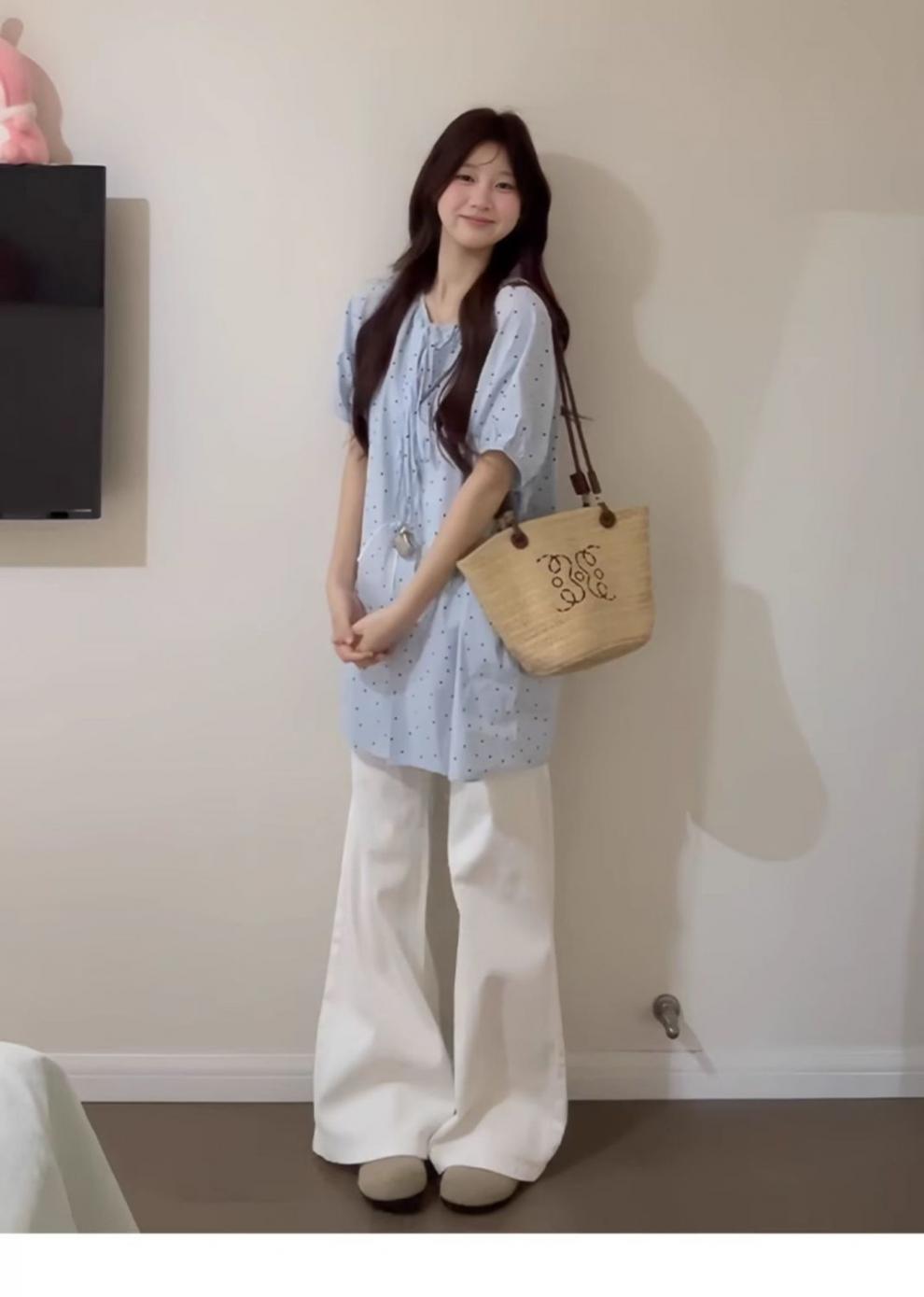 Рубашка с короткими рукавами [цельная]; Белые брюки [цельный предмет]; Рубашка с короткими рукавами + белые брюки [комплект из двух предметов]