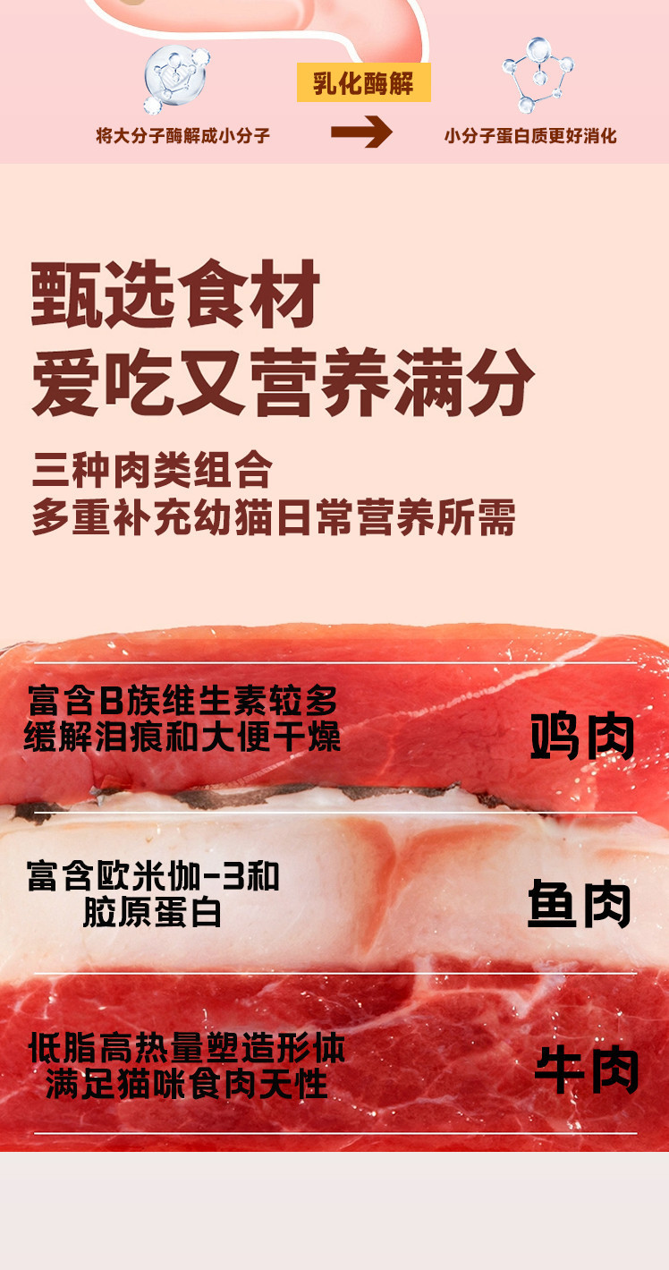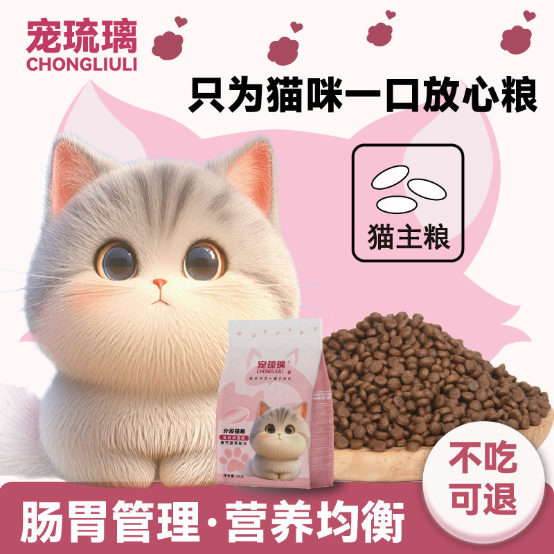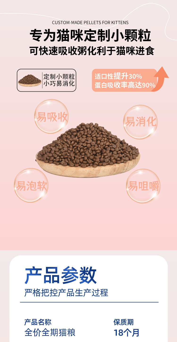 Корм для молодых кошек Chongliu Li, полноценный основной корм для молодых кошек со специальным питательным и мясистым составом для молодых кошек в период отлучения от груди в возрасте от 1 до 12 месяцев.
