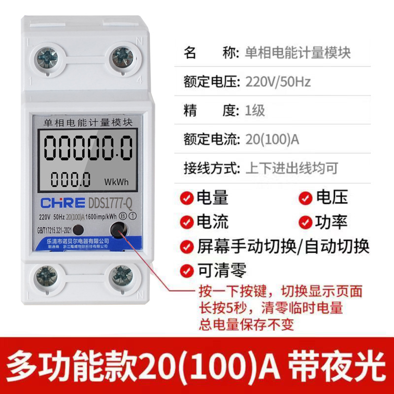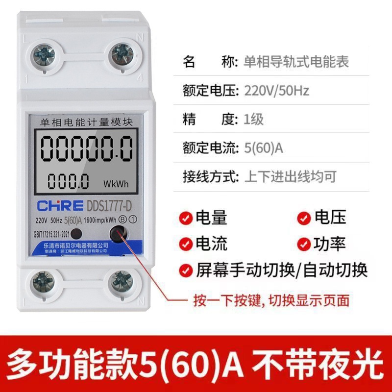 Однофазный рельсовый электрический счетчик для квартиры, бытовой электросчетчик 220 В, высокоточный электрический счетчик, рельсовый электрический счетчик для аренды дома