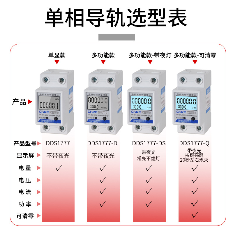 CHRE/рейочный счетчик/один дисплей/60А; CHRE/рейочный счетчик/многофункциональный D/60A; CHRE/рейочный счетчик/многофункциональный со светящимся DS/60A; CHRE/рейочный счетчик/многофункциональный D/100A; CHRE/рейочный счетчик/многофункциональный со светящимся DS/100A; CHRE/рейочный счетчик/прозрачная модель со светящимся Q/60A; CHRE/рейочный счетчик/прозрачная модель со светящимся Q/100A
