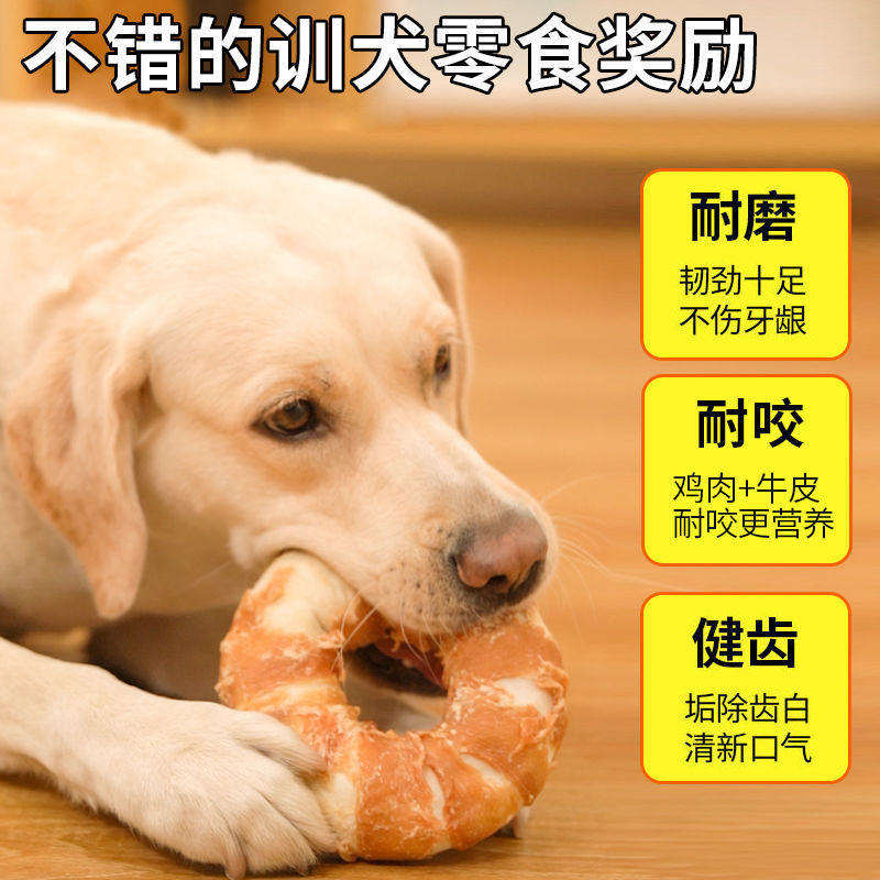 Лакомства для собак, палочки для прорезывания зубов, куриные пончики, лакомства для чистки зубов для домашних животных, жевательные конфеты для собак из воловьей кожи, универсальные для собак больших и маленьких размеров.