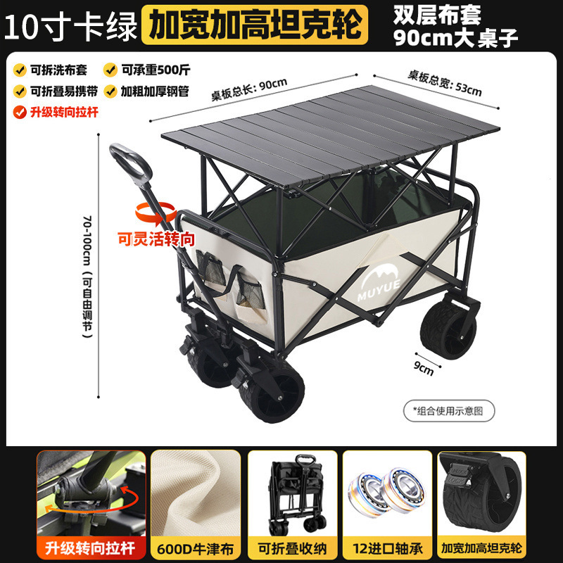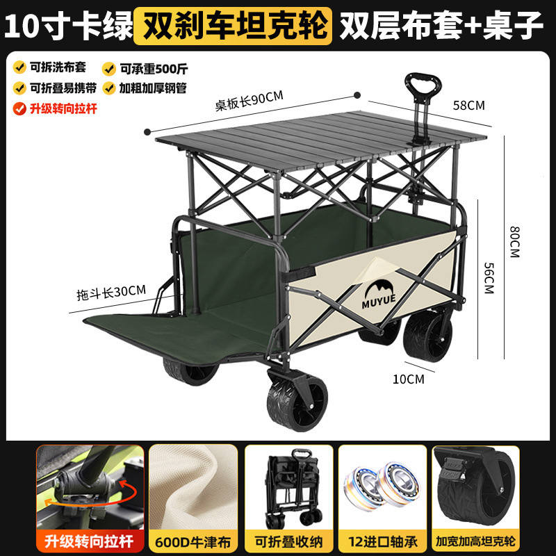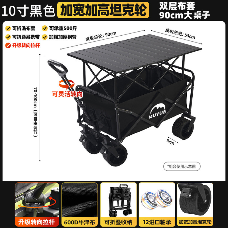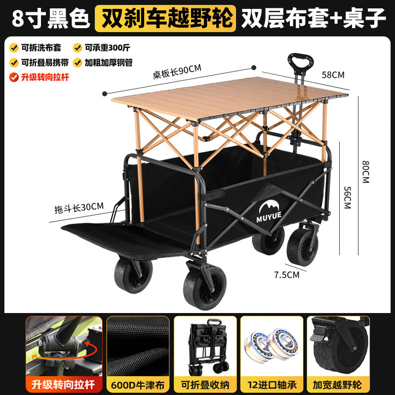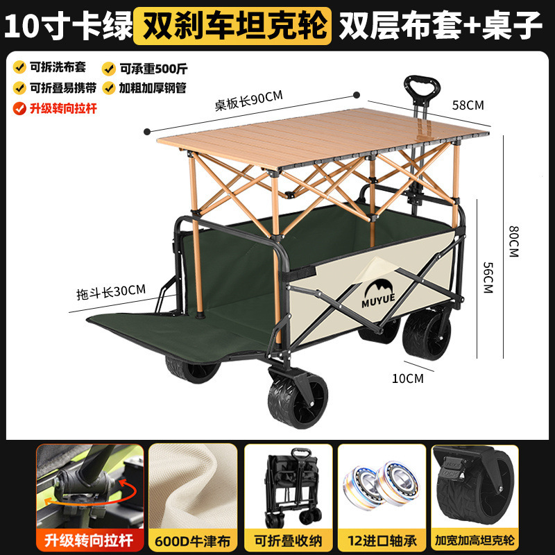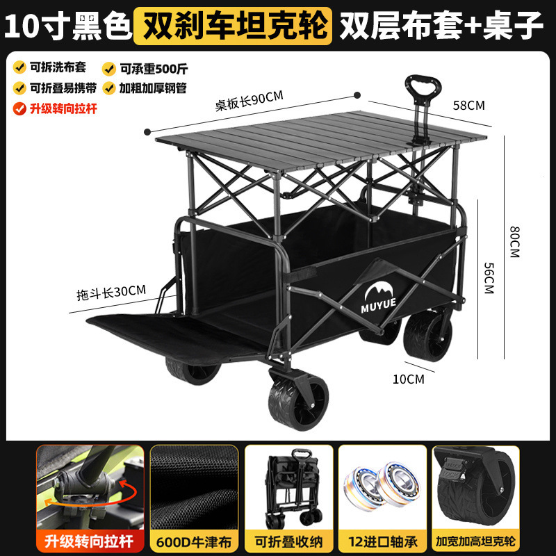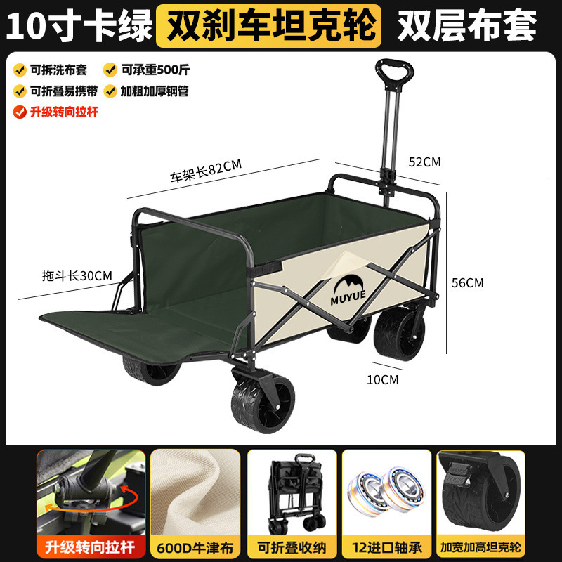 Складная тележка для кемпинга, уличная ручная тележка для пикника, портативный прицеп для кемпинга, тяговая штанга, многофункциональная тележка для кемпинга