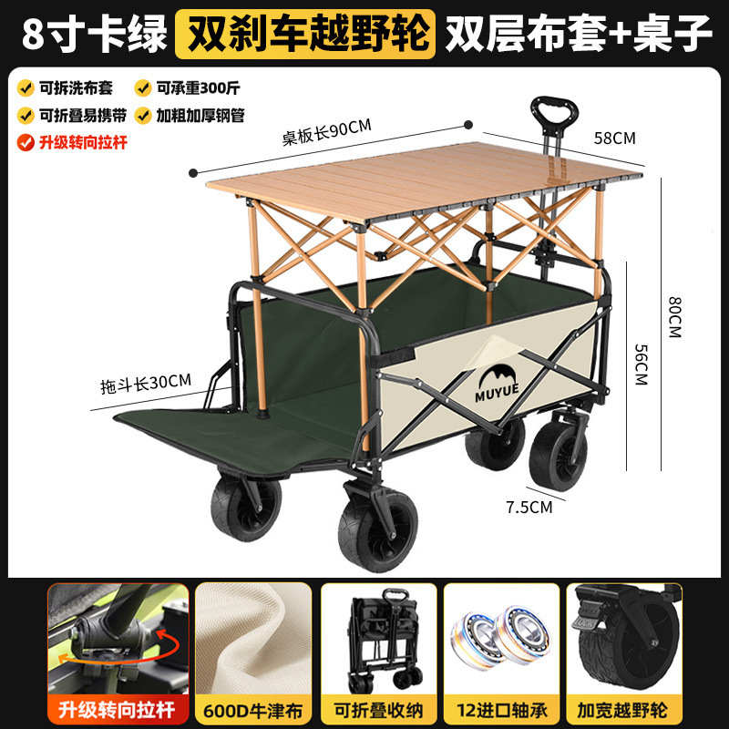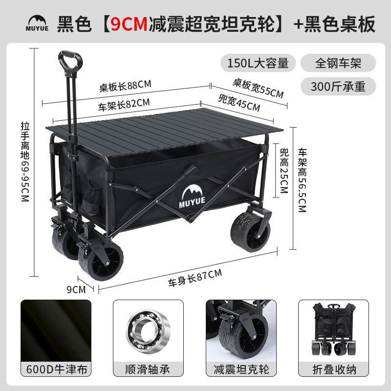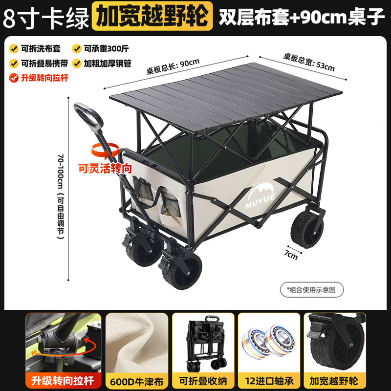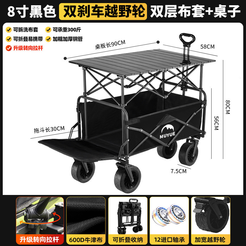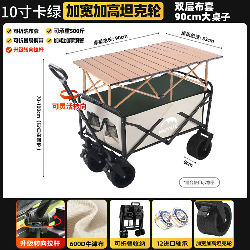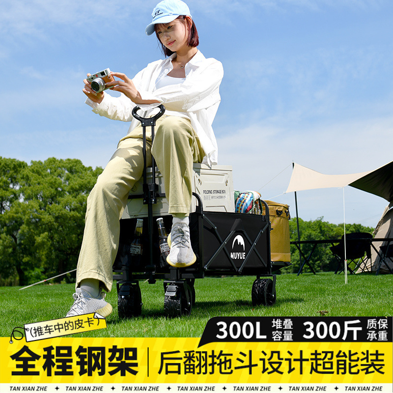 Складная тележка для кемпинга, уличная ручная тележка для пикника, портативный прицеп для кемпинга, тяговая штанга, многофункциональная тележка для кемпинга