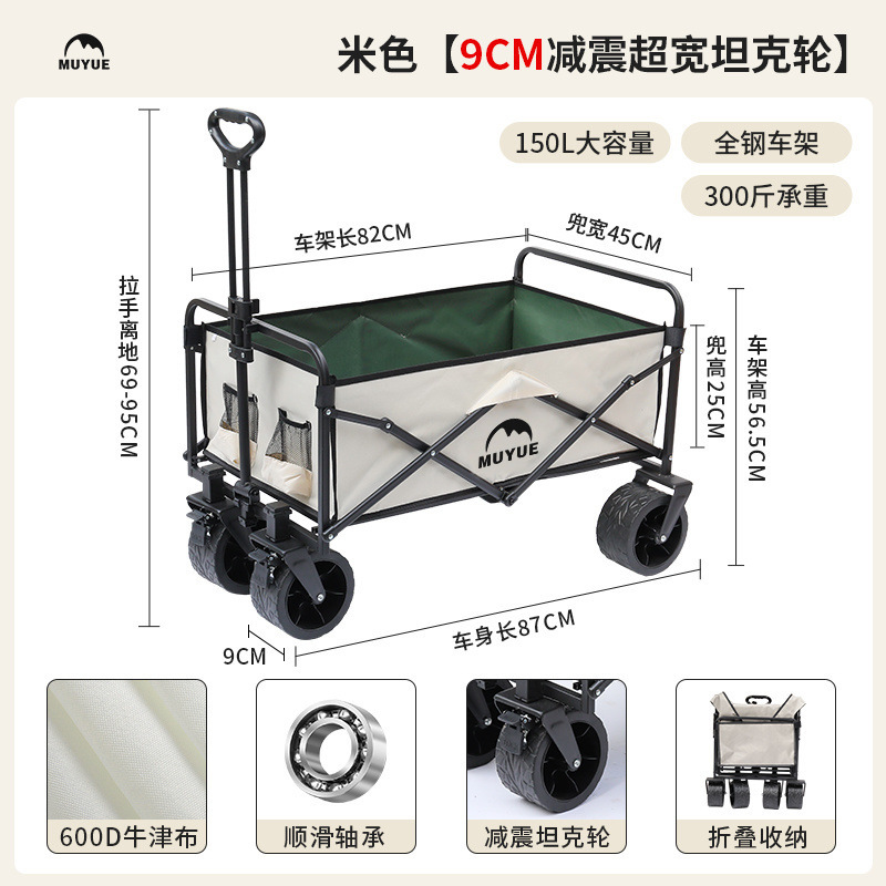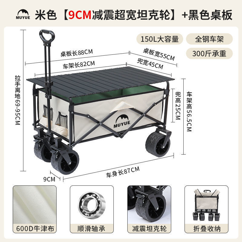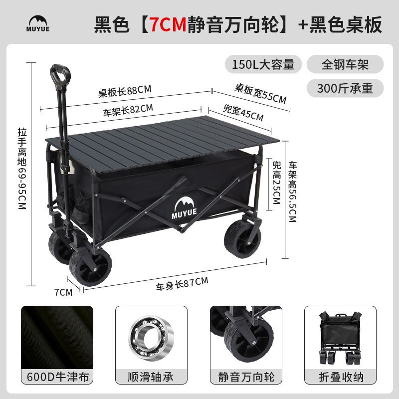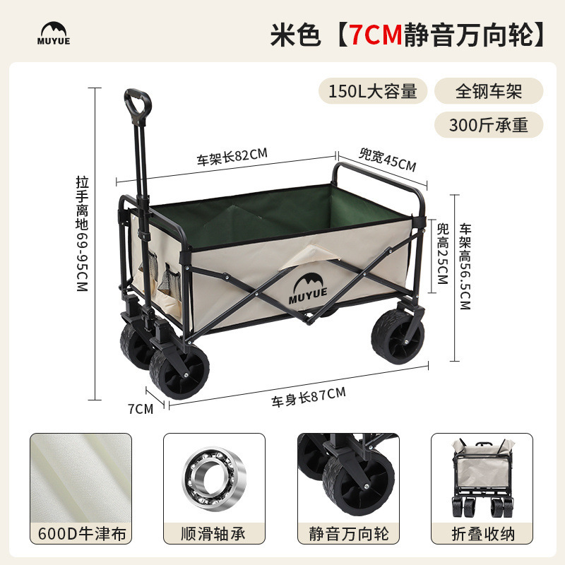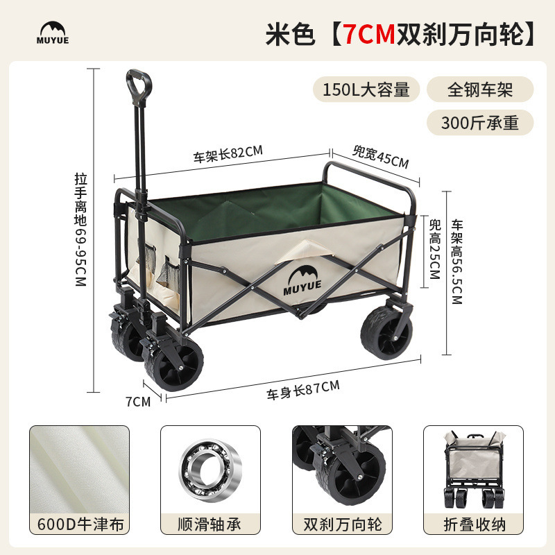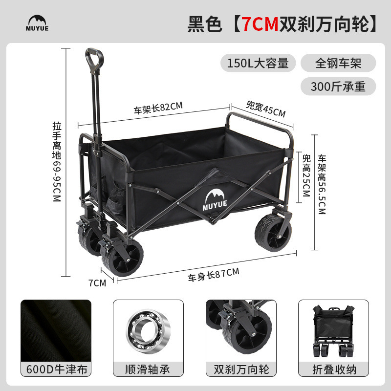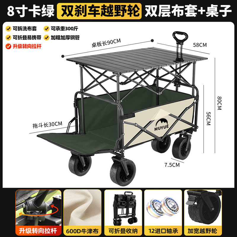 Складная тележка для кемпинга, уличная ручная тележка для пикника, портативный прицеп для кемпинга, тяговая штанга, многофункциональная тележка для кемпинга