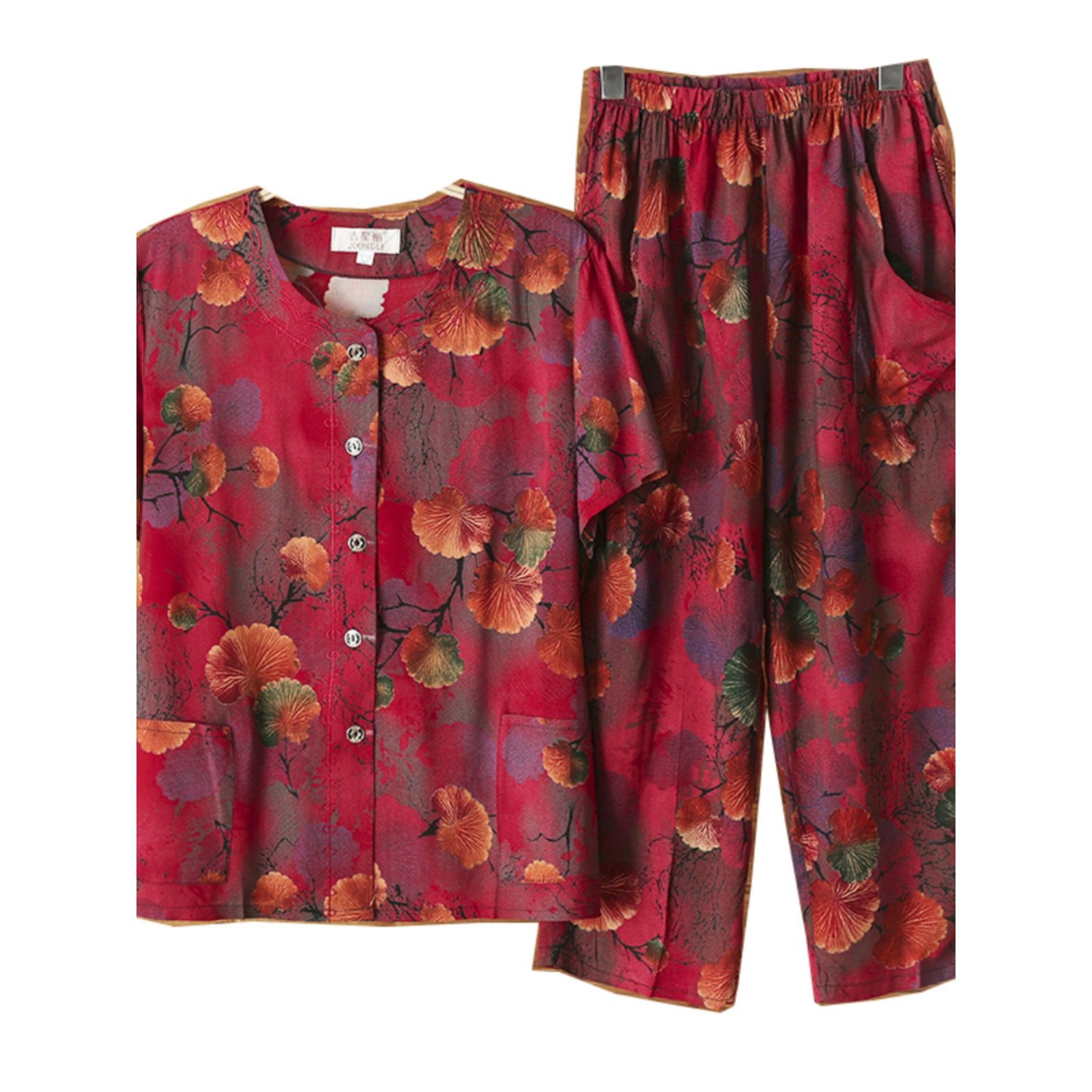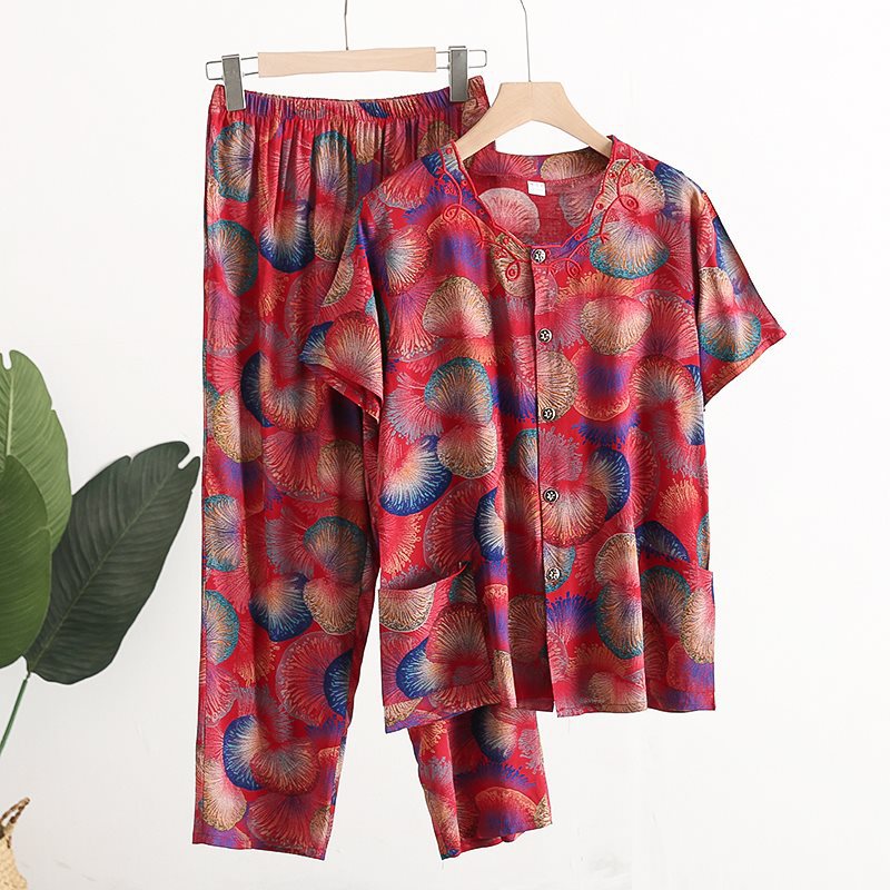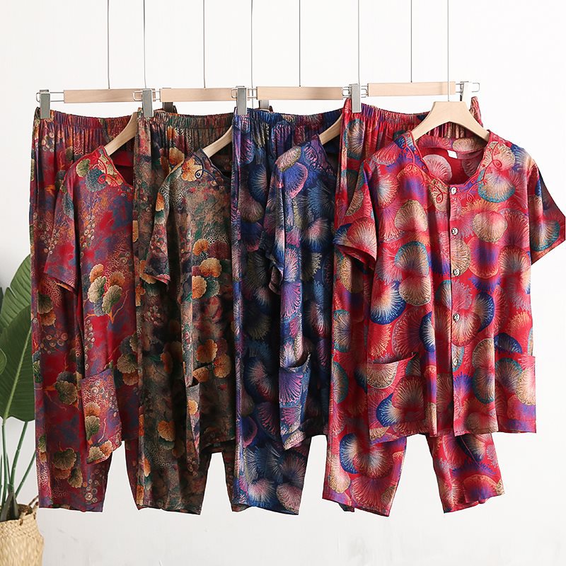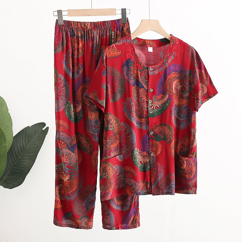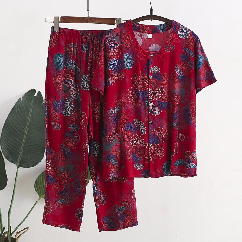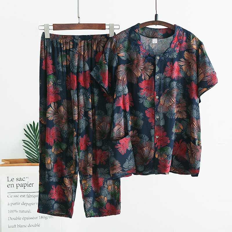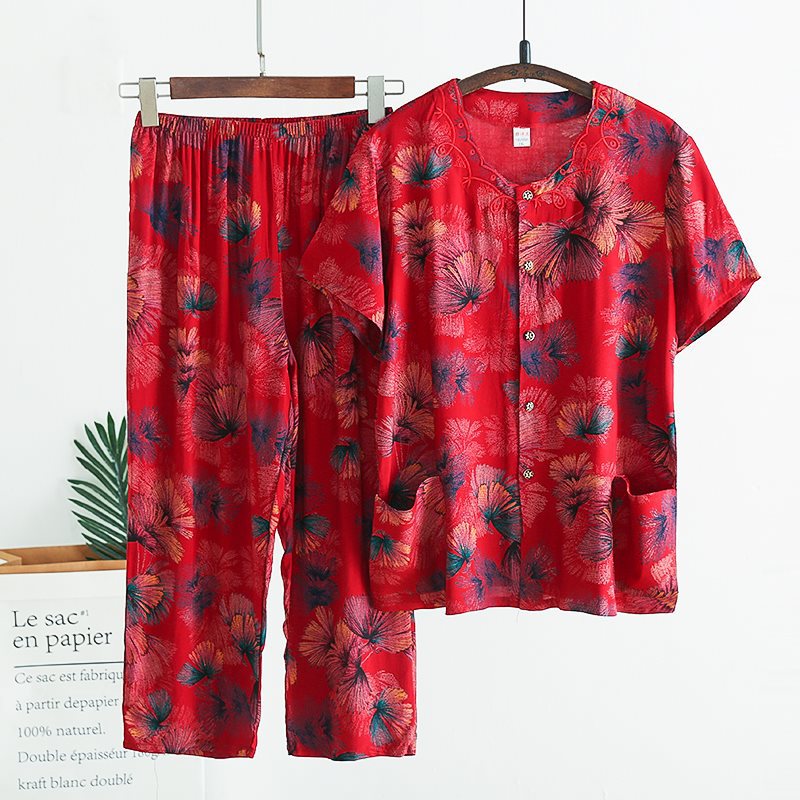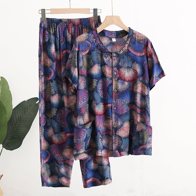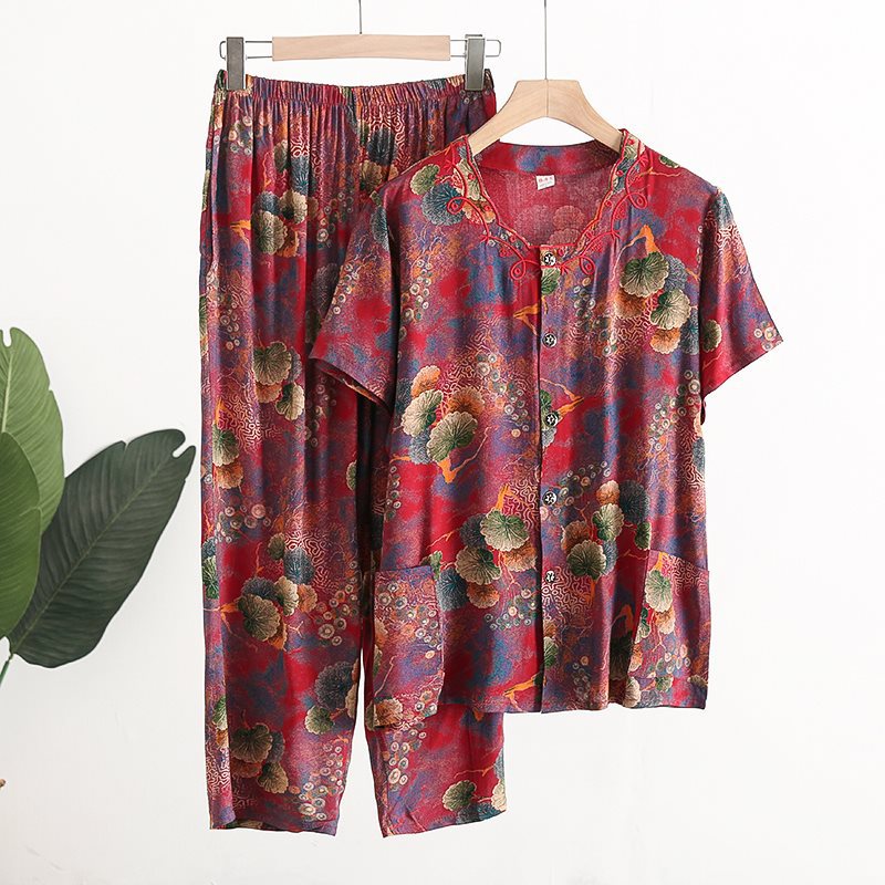 Женский хлопковый кардиган с короткими рукавами среднего и пожилого возраста, одежда для мам больших размеров, комплект из двух предметов из хлопкового шелка для старухи с девятью точками.