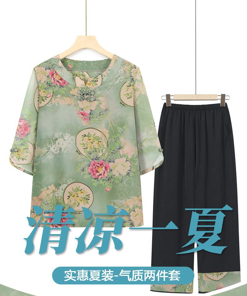 Летние женские костюмы с короткими рукавами среднего и пожилого возраста, новые рубашки для старух, летняя одежда бабушки, модная одежда для мам, тонкая одежда.