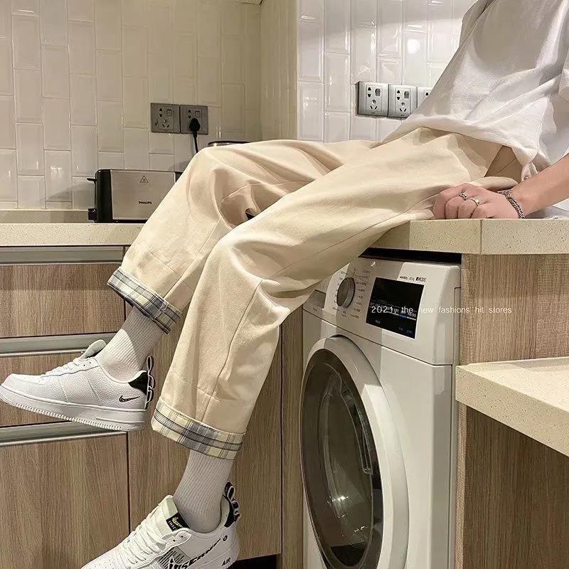 Весенние, летние и осенние мужские брюки, тонкие, свободные и удобные повседневные мужские брюки, модные прямые мужские брюки-шаровары с девятью точками, дышащие брюки.