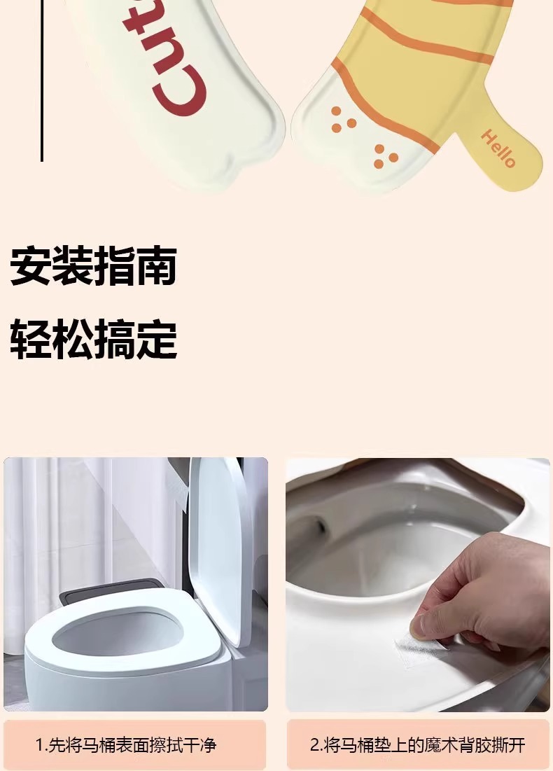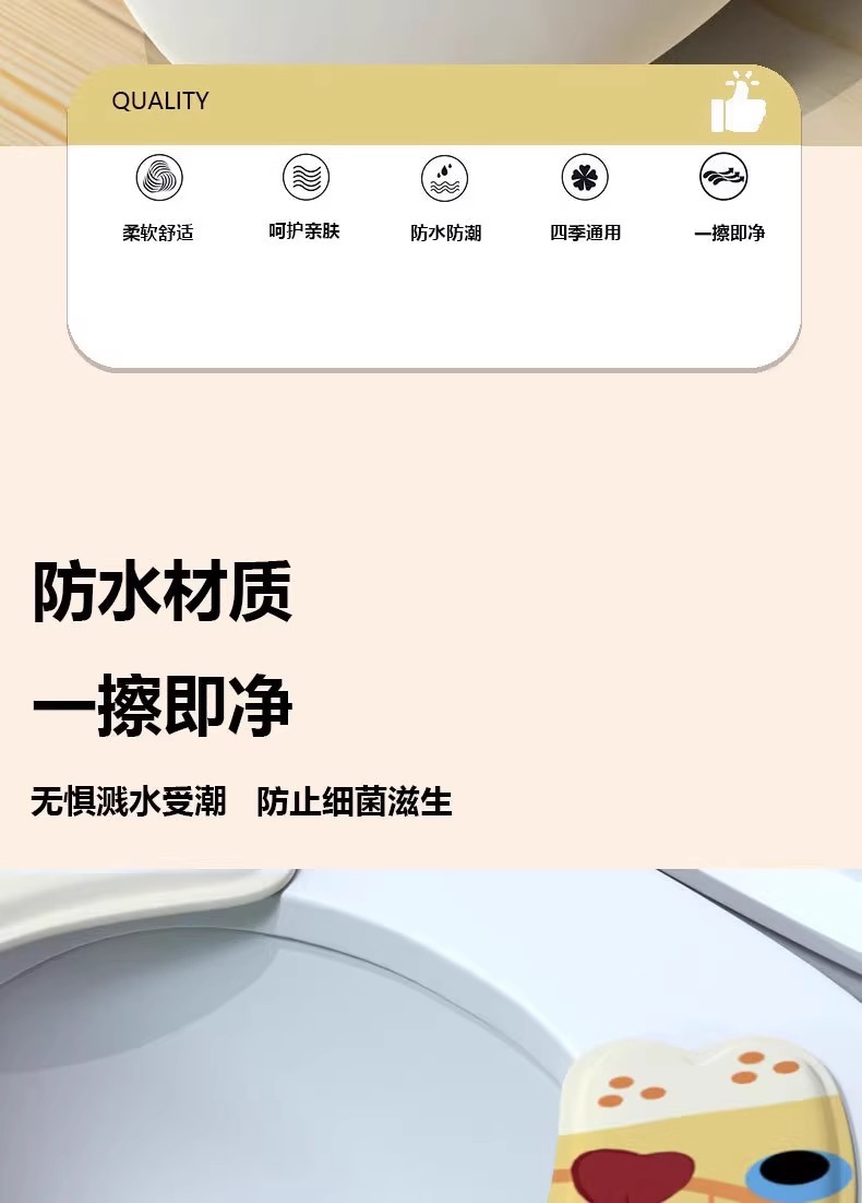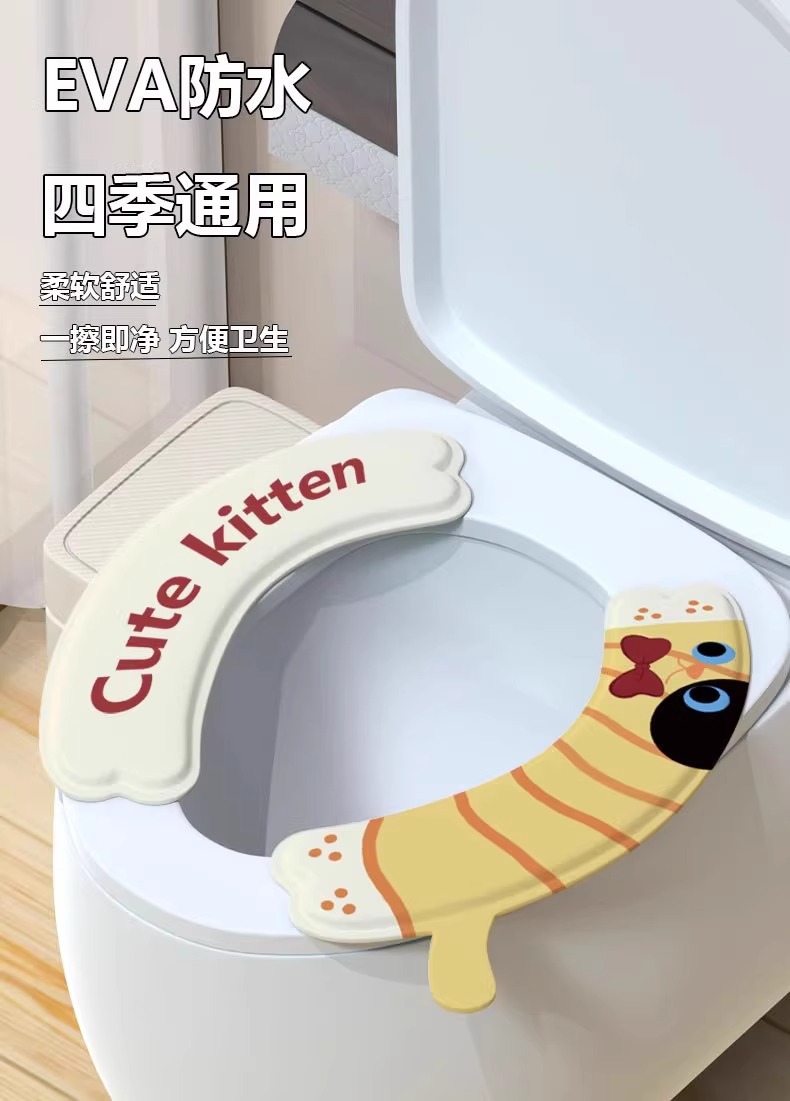 Милый коврик для унитаза с изображением кота, водонепроницаемый для всех сезонов, новинка 2025 года, водонепроницаемая бытовая двухсекционная подушка для сиденья унитаза