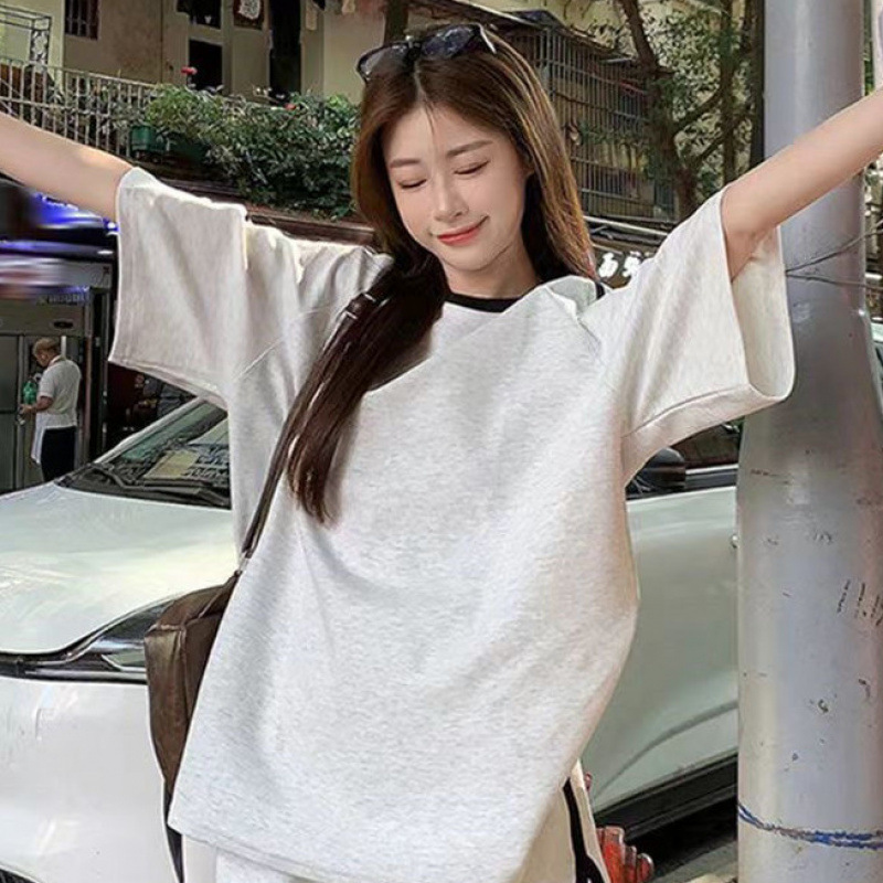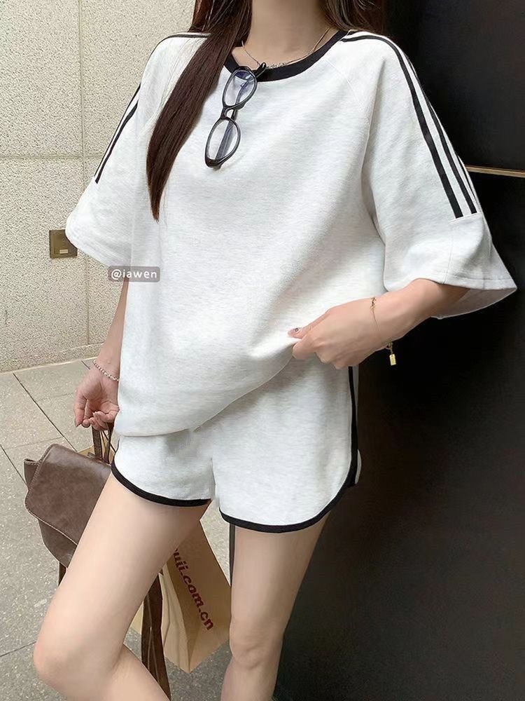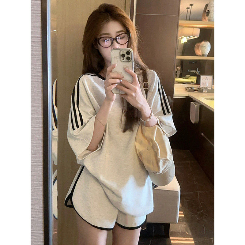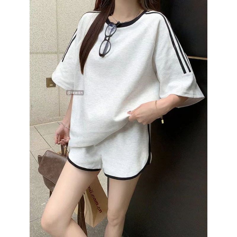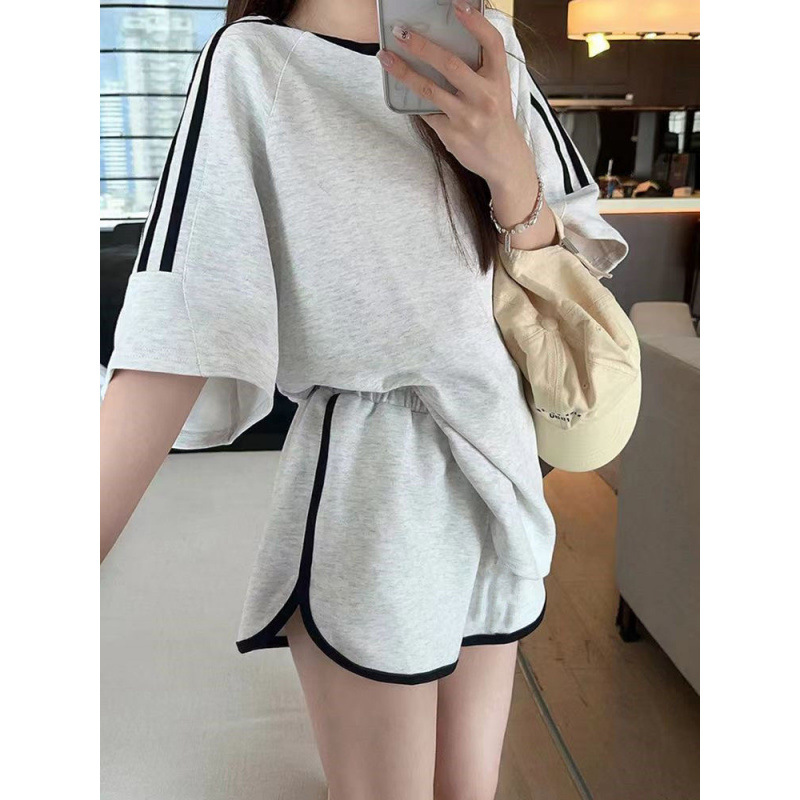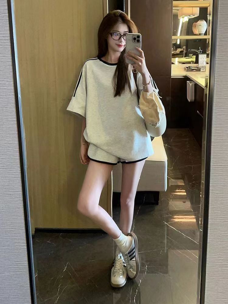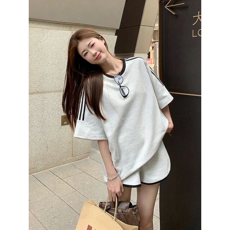 Спортивный костюм для женщин 2025 новый хлопковый шорты футболка с коротким рукавом свободный корейский стиль ленивый стиль повседневный двухкомпонентный летний комплект