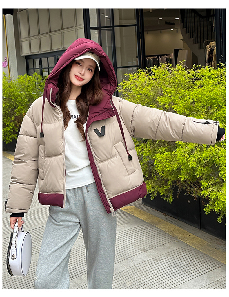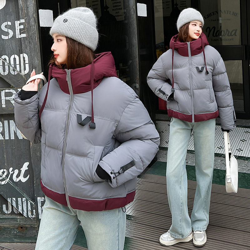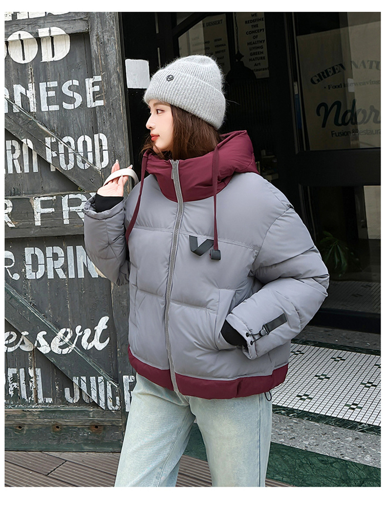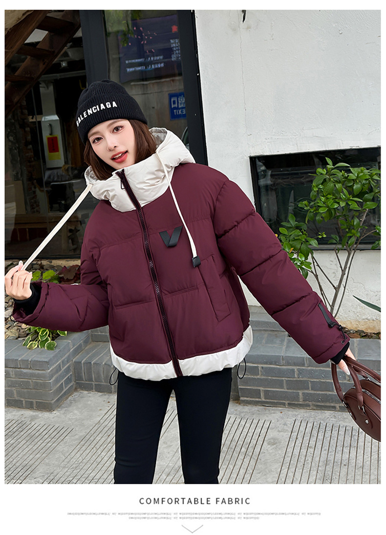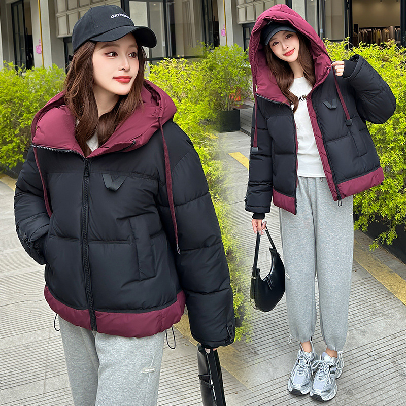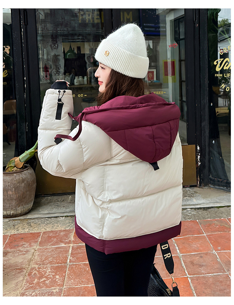 Европейская модная цветная короткая хлопковая куртка для женщин 2025 зима миниатюрная свободная ультрамягкая утепленная куртка с капюшоном