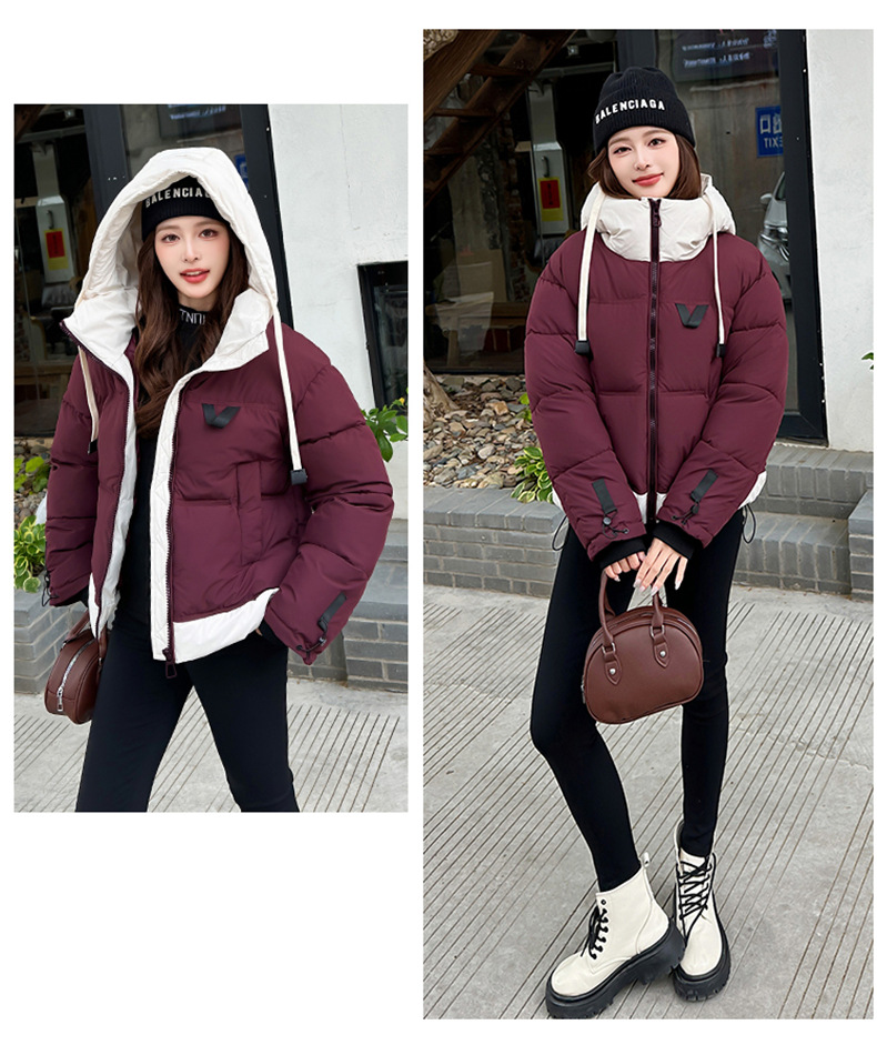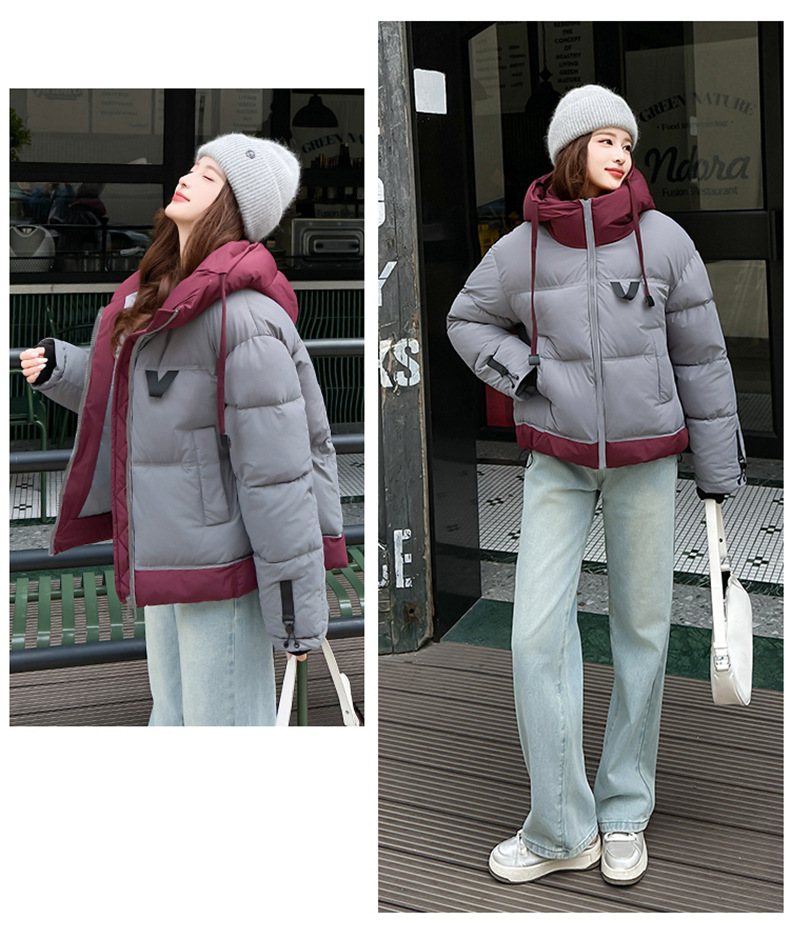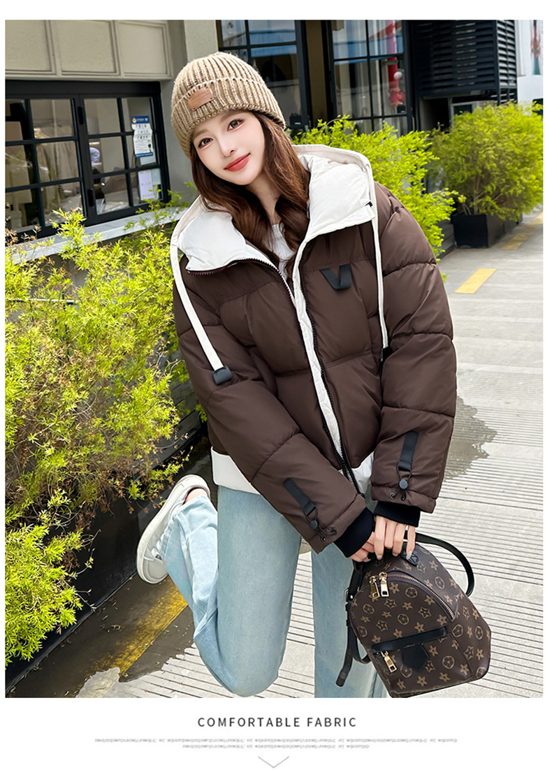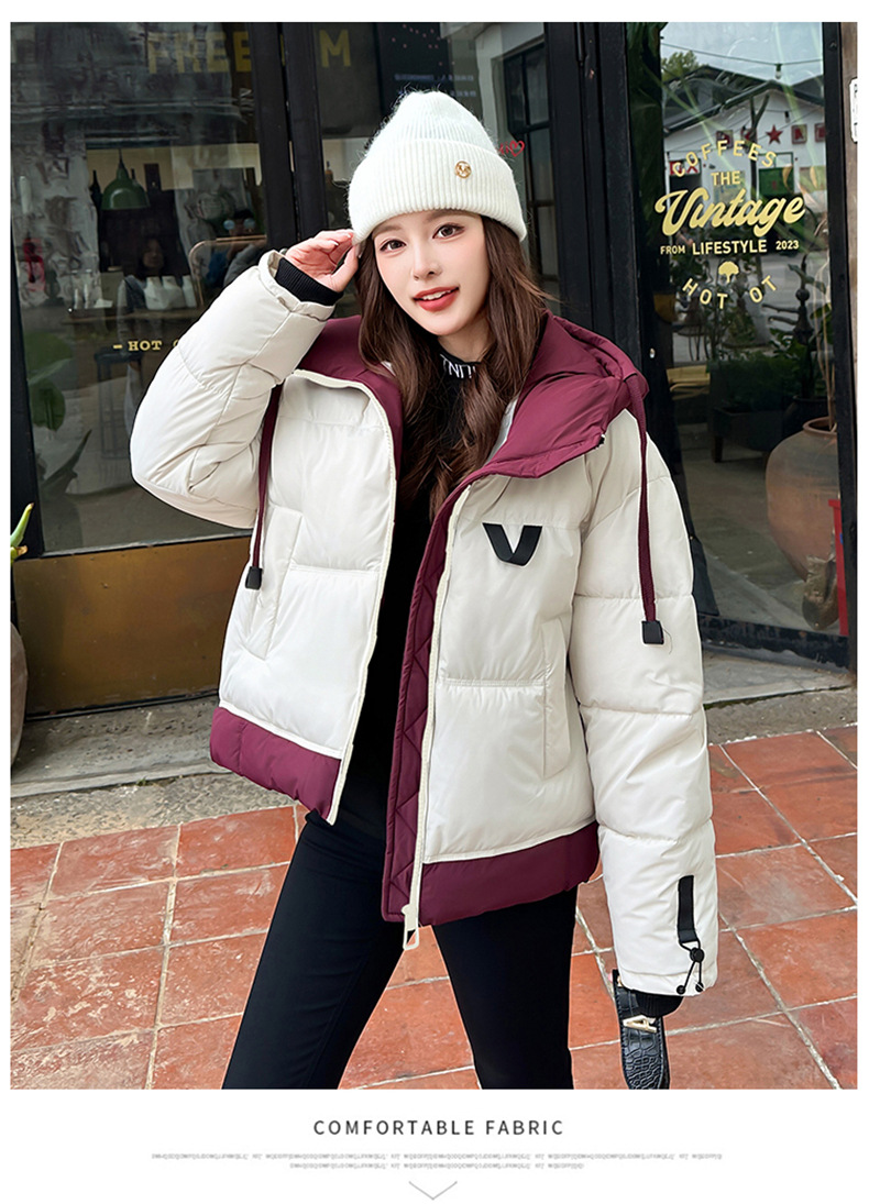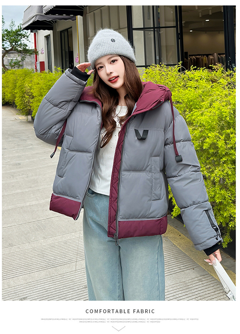 Европейская модная цветная короткая хлопковая куртка для женщин 2025 зима миниатюрная свободная ультрамягкая утепленная куртка с капюшоном