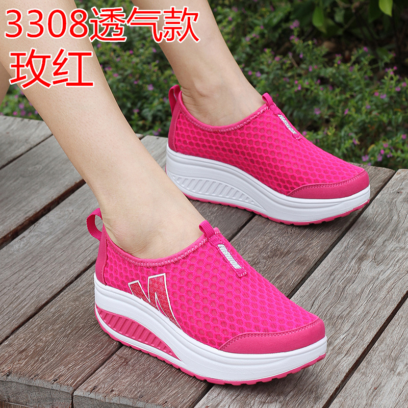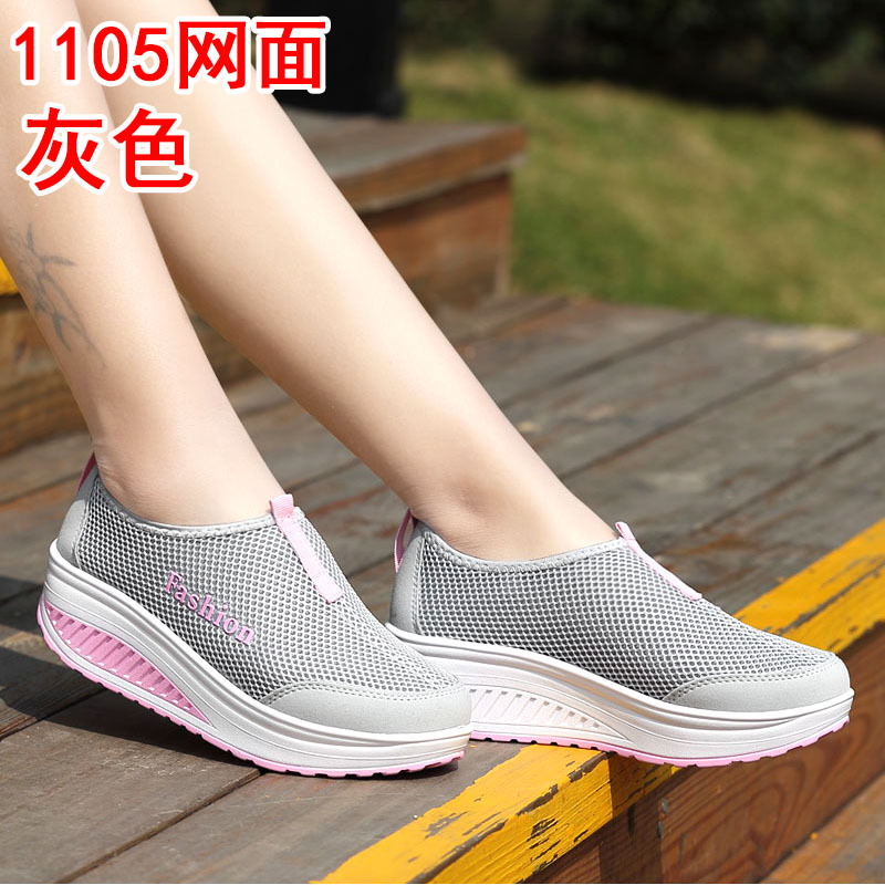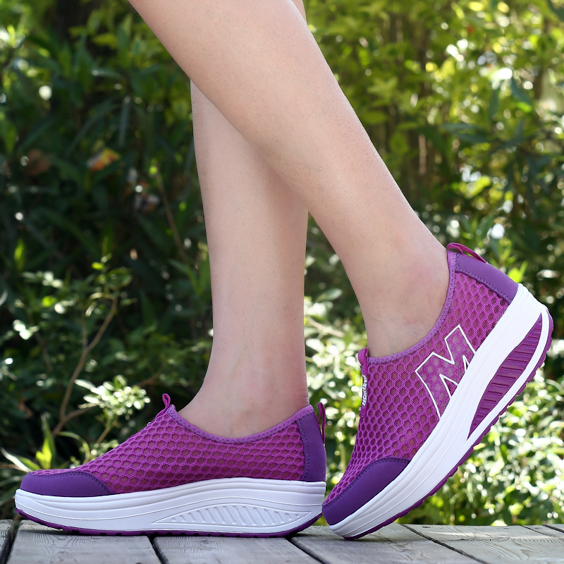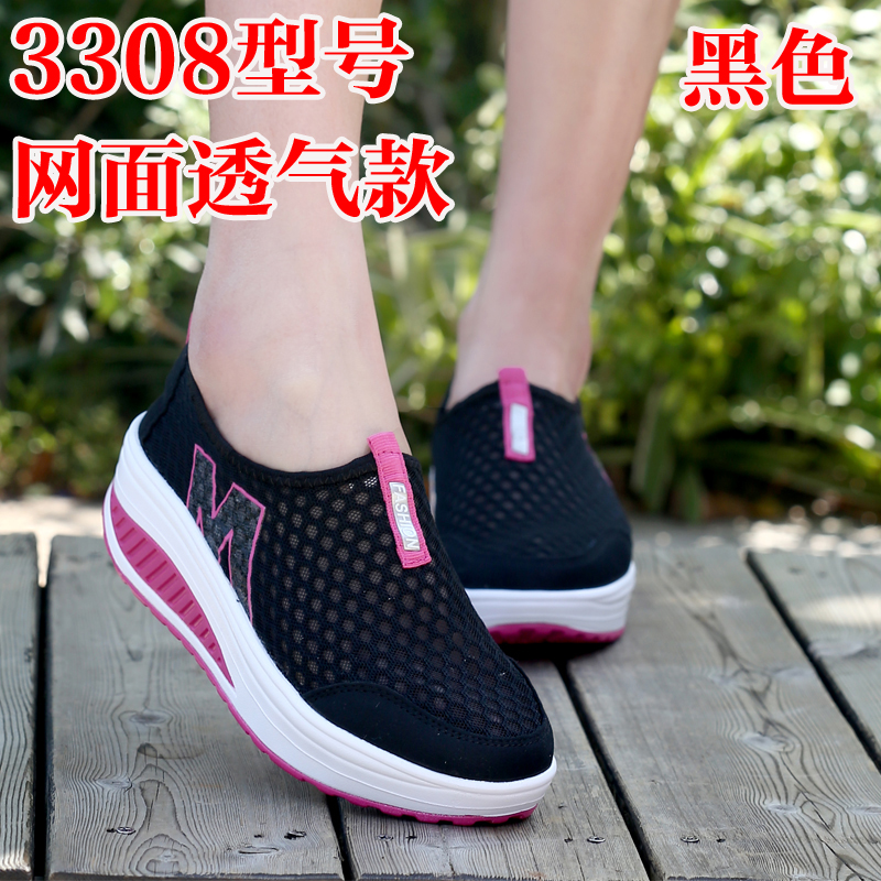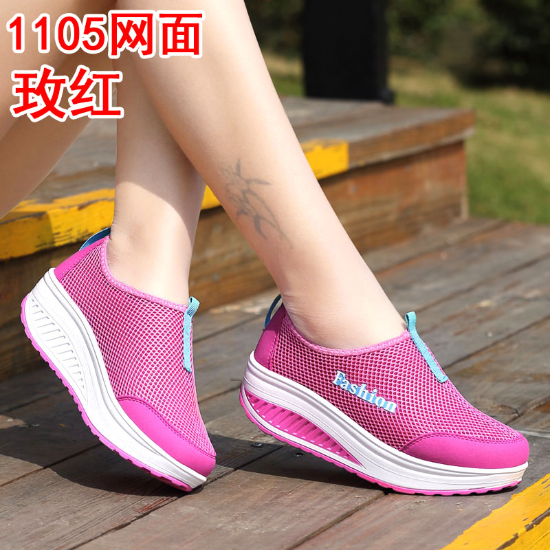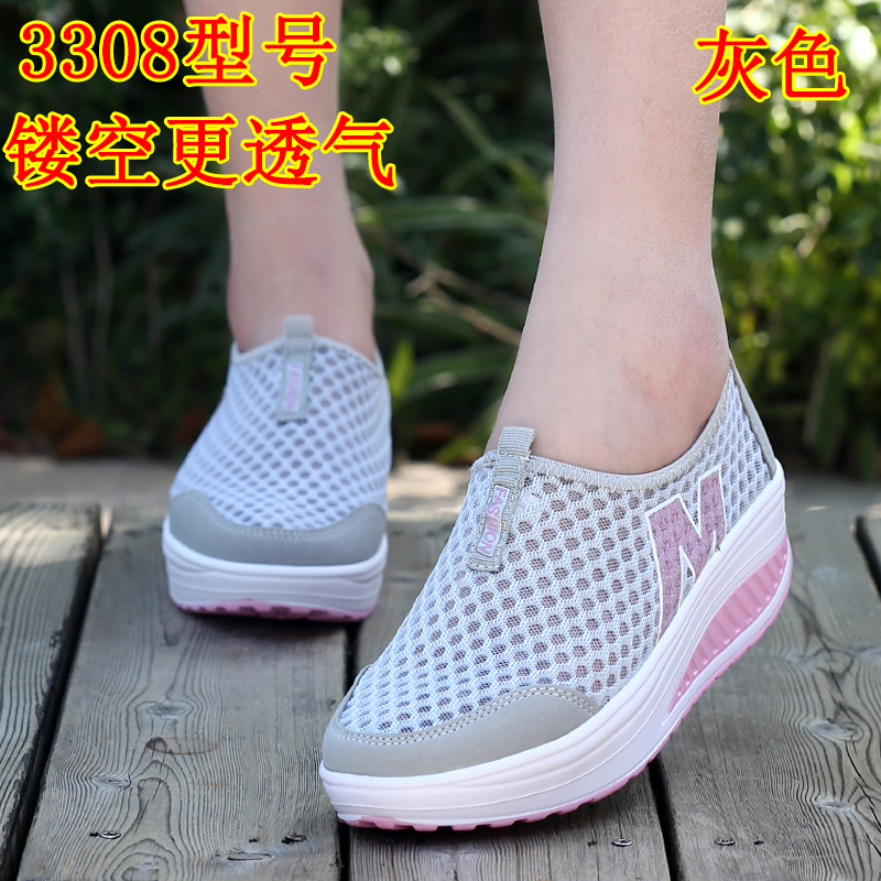 Трясущаяся обувь, женская сетчатая дышащая летняя обувь с сеткой, повседневная обувь без шнуровки, женская обувь небольшого размера, кроссовки для бега на толстой подошве