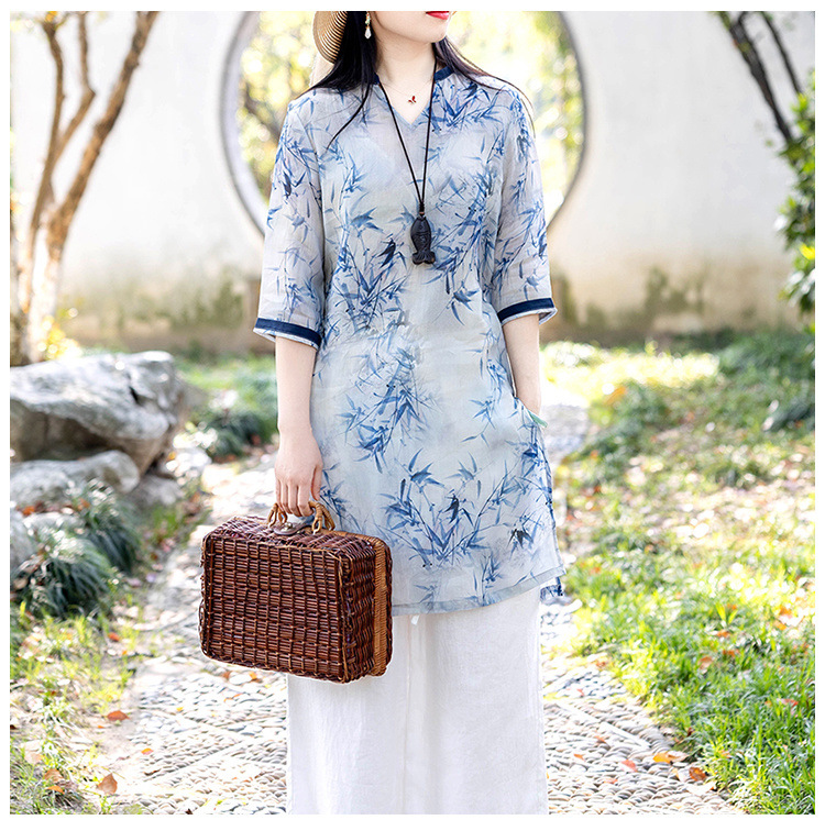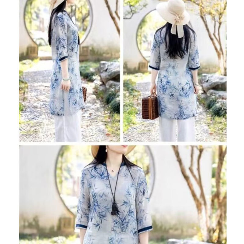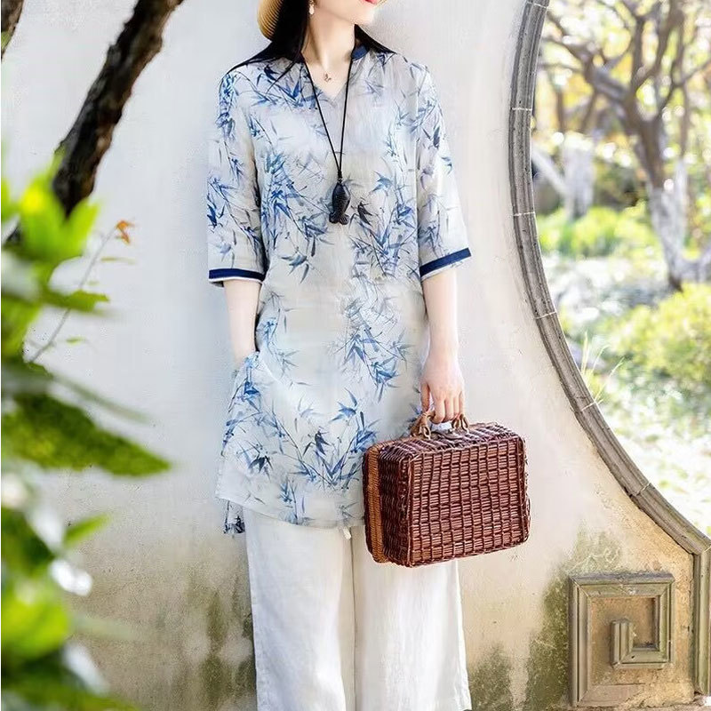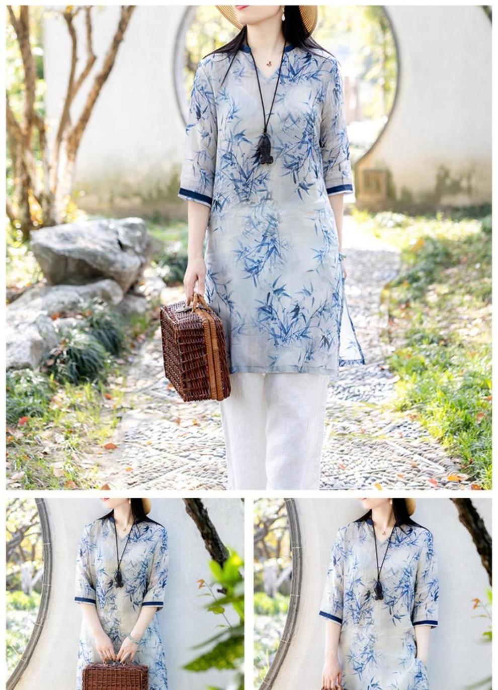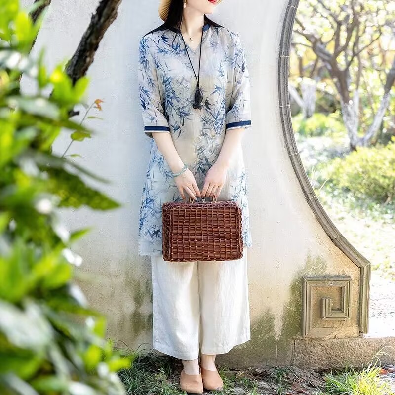 Летняя хлопчатобумажная и льняная юбка в китайском стиле дзен, ретро, средней длины, 2025 года, для повседневной носки, модная, с принтом, женская, тонкая, облегающая, чайная одежда.