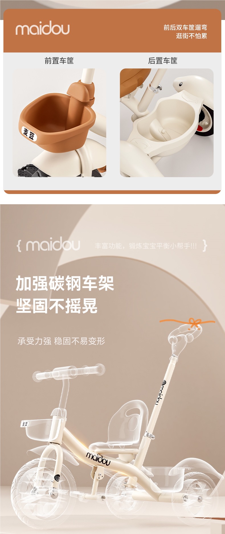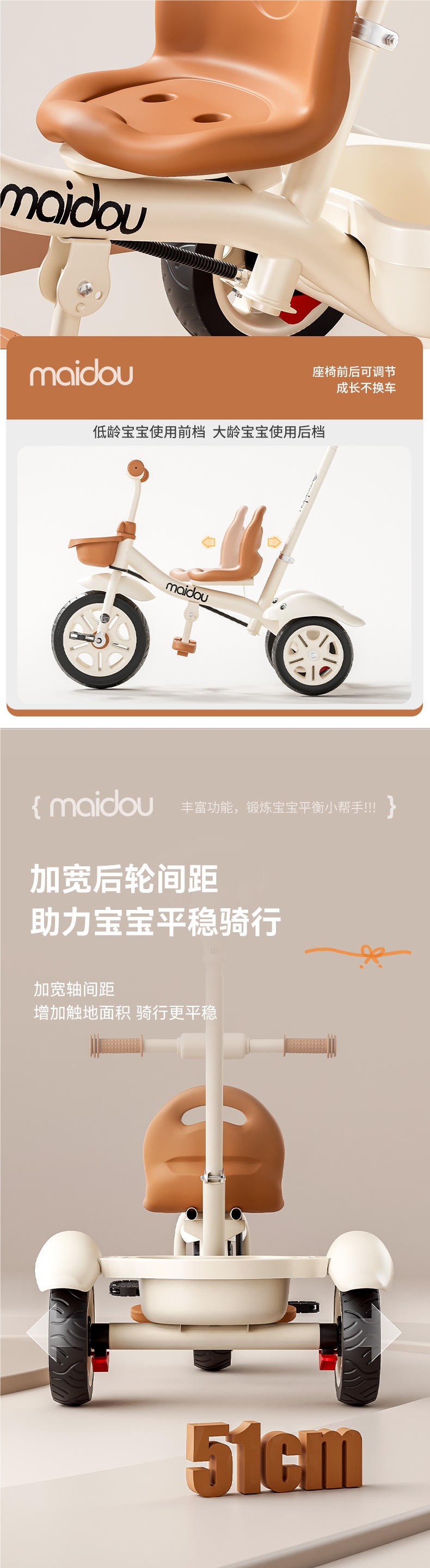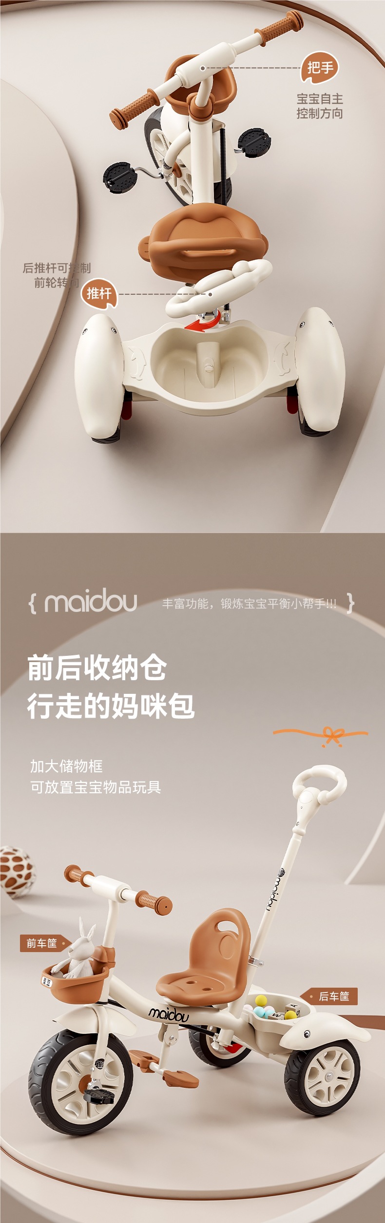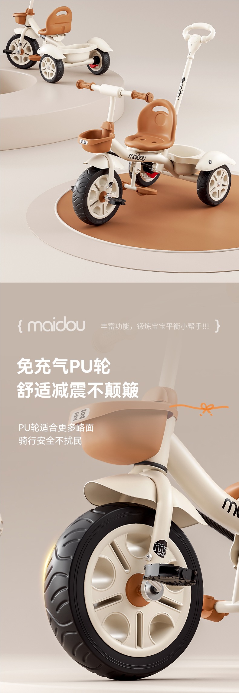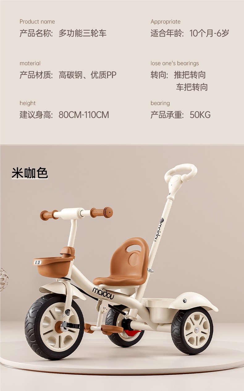 Детский трехколесный велосипед-коляска для малышей 1-3-5 лет, велосипед-коляска для детей