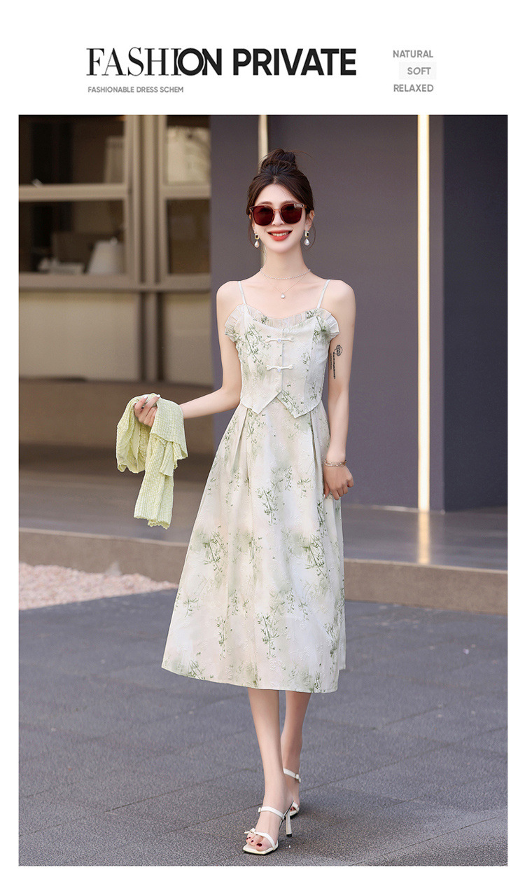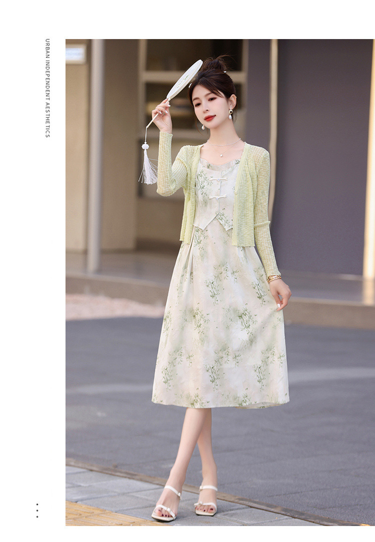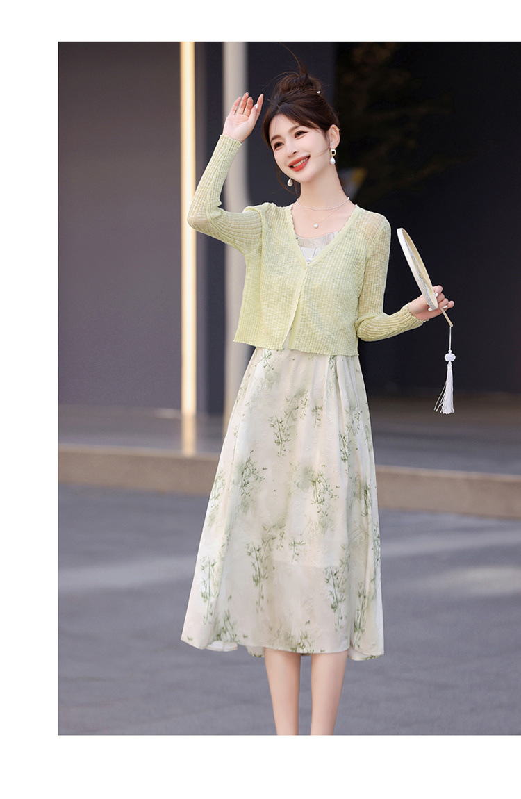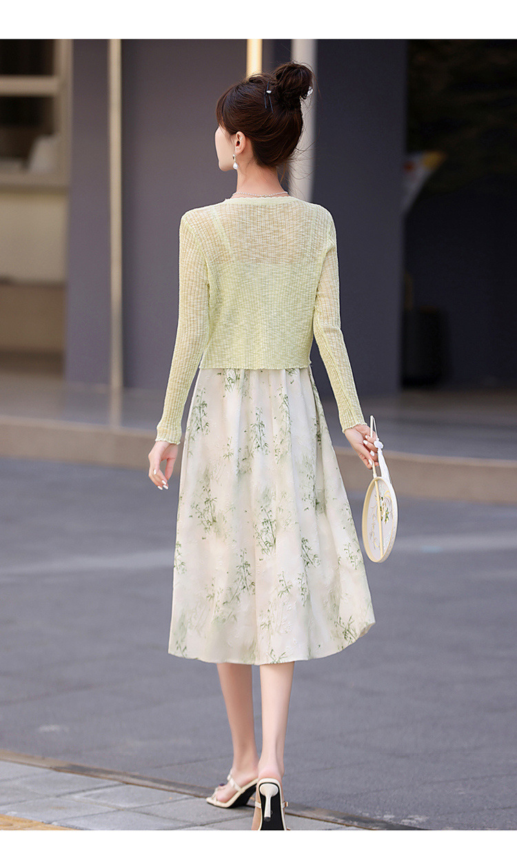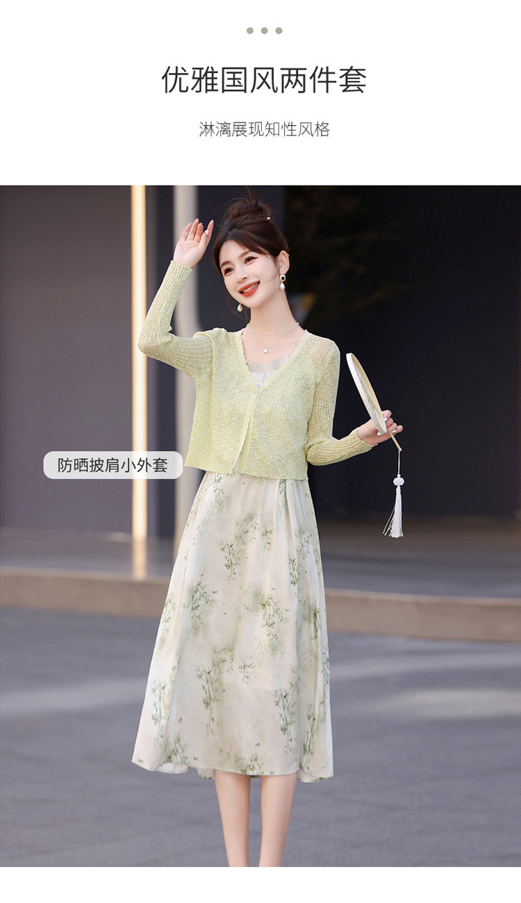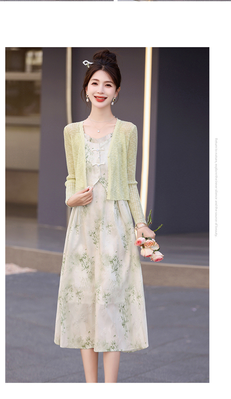 Платье на подтяжках с французским цветочным принтом, комплект из двух предметов для женщин, летний новый стиль, утягивающий талию, супер сказочный темпераментный кардиган, костюм, юбка