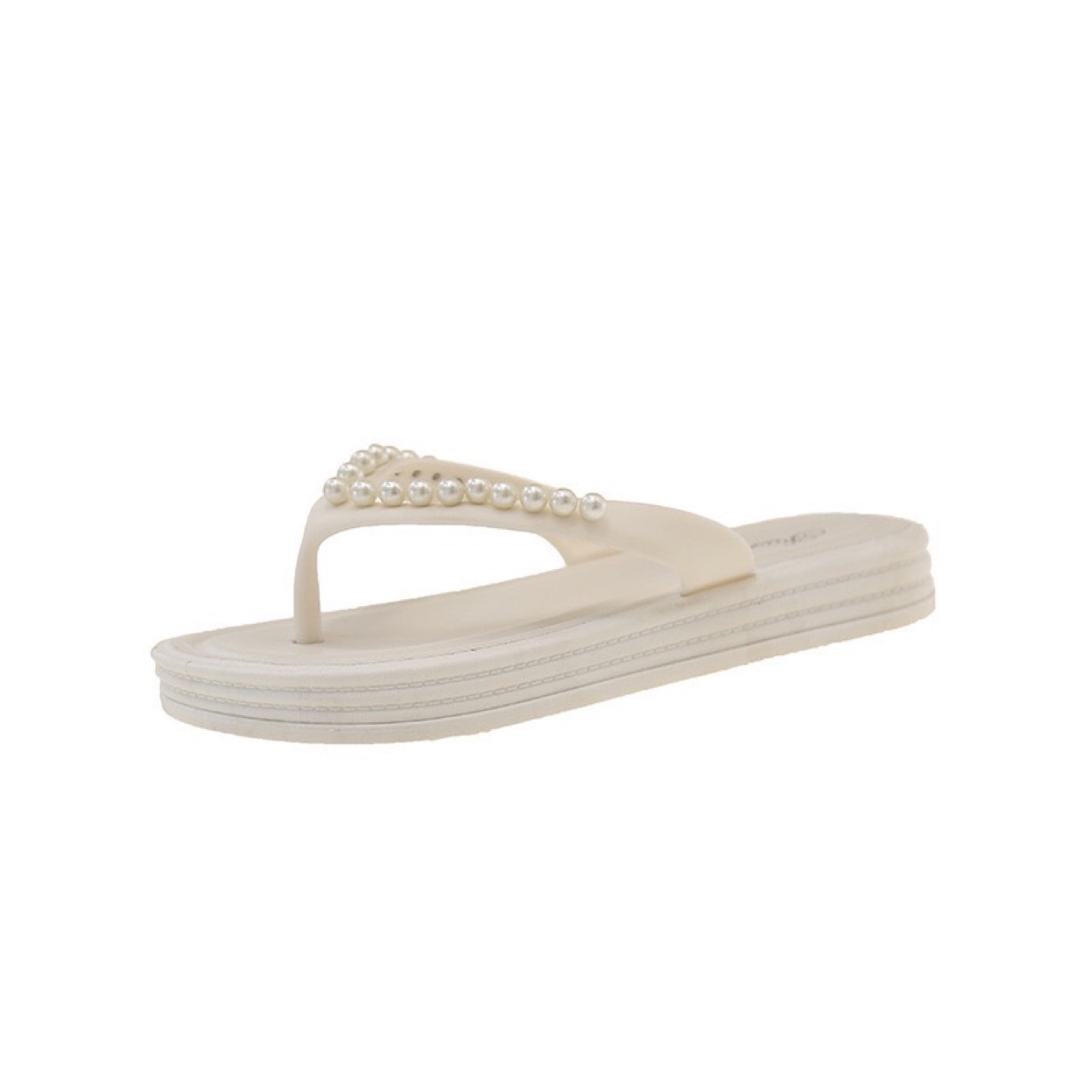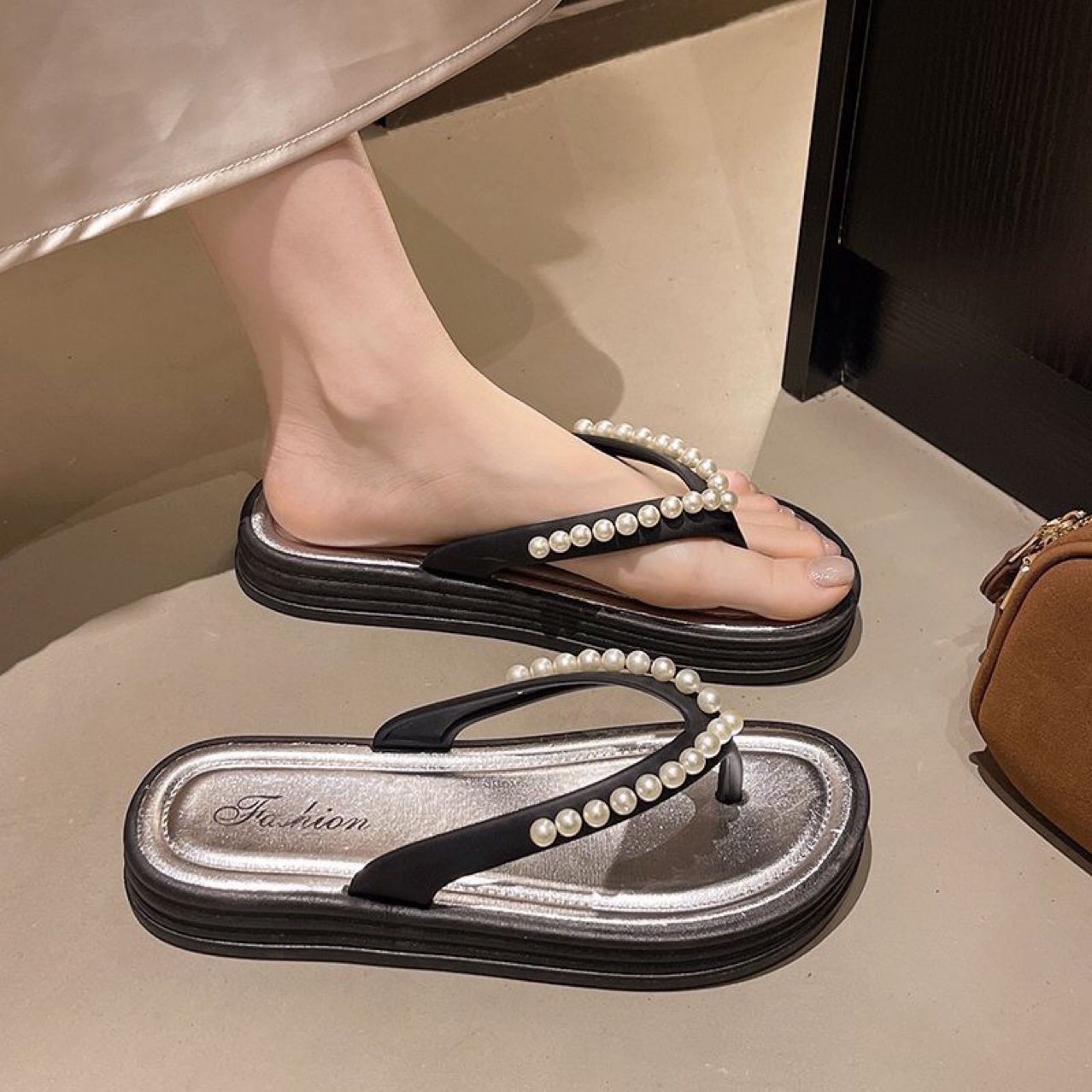 Женские тапочки для ношения на улице летом 2025 года, новые модные сандалии-шлепанцы с жемчугом в стиле интернет-знаменитостей, пляжные тапочки на толстой подошве с юбками
