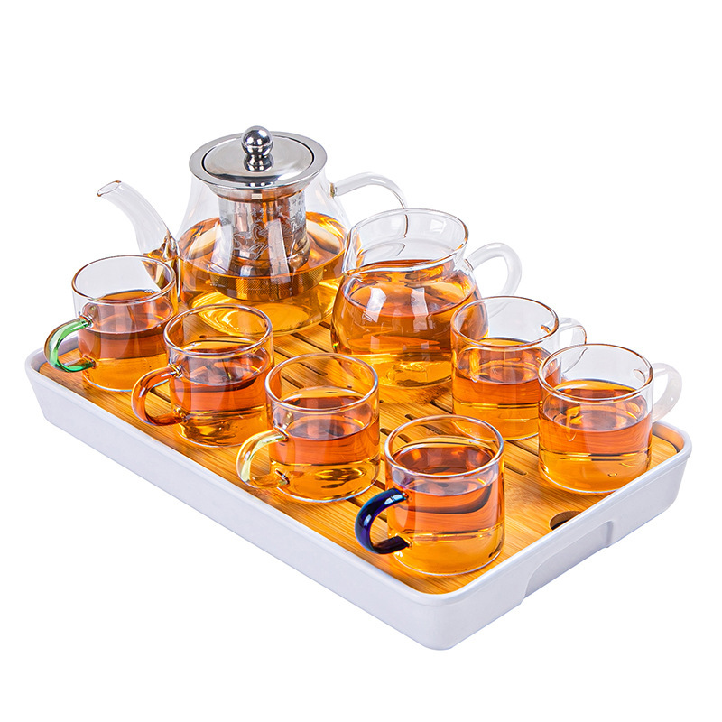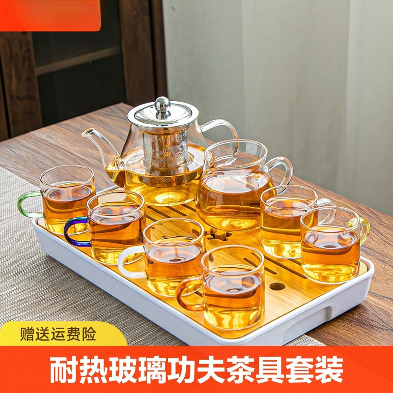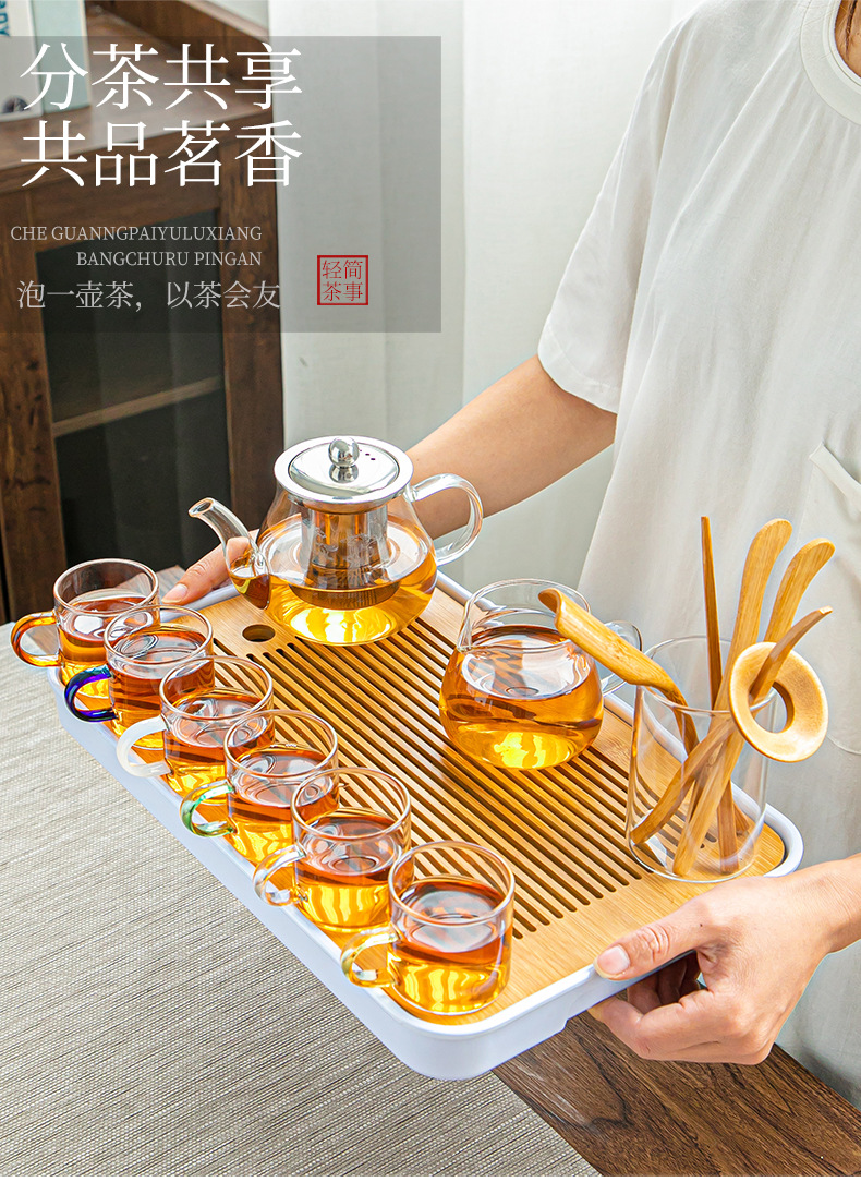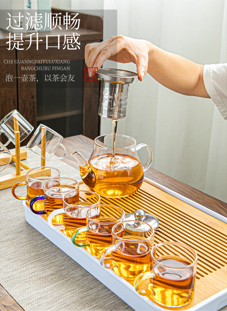 Стеклянный чайный сервиз, домашняя чашка для чая, офисный чайник, простой маленький чайный столик, чайная церемония, один