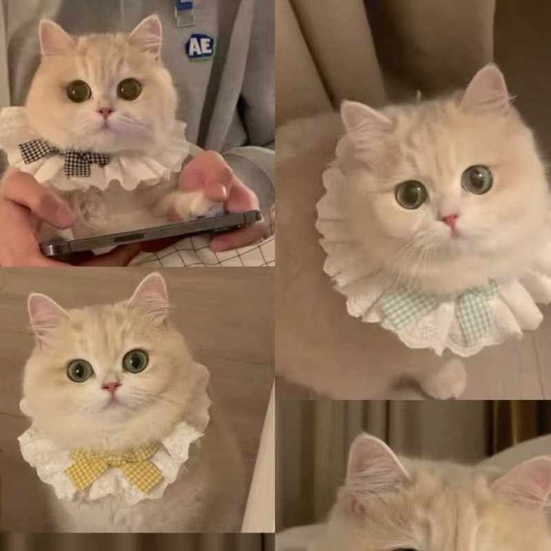 Кружевной нагрудник из чистого хлопка с изображением кота, милый шарф с бантом для домашних животных, декоративный нагрудник, аксессуары для собачьего нагрудника