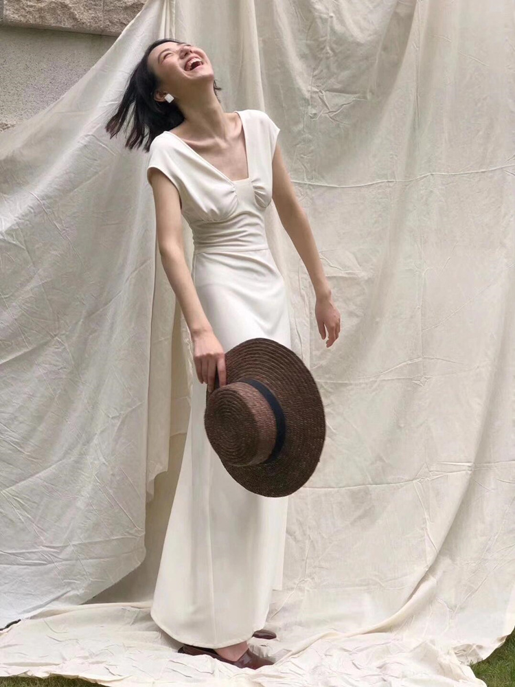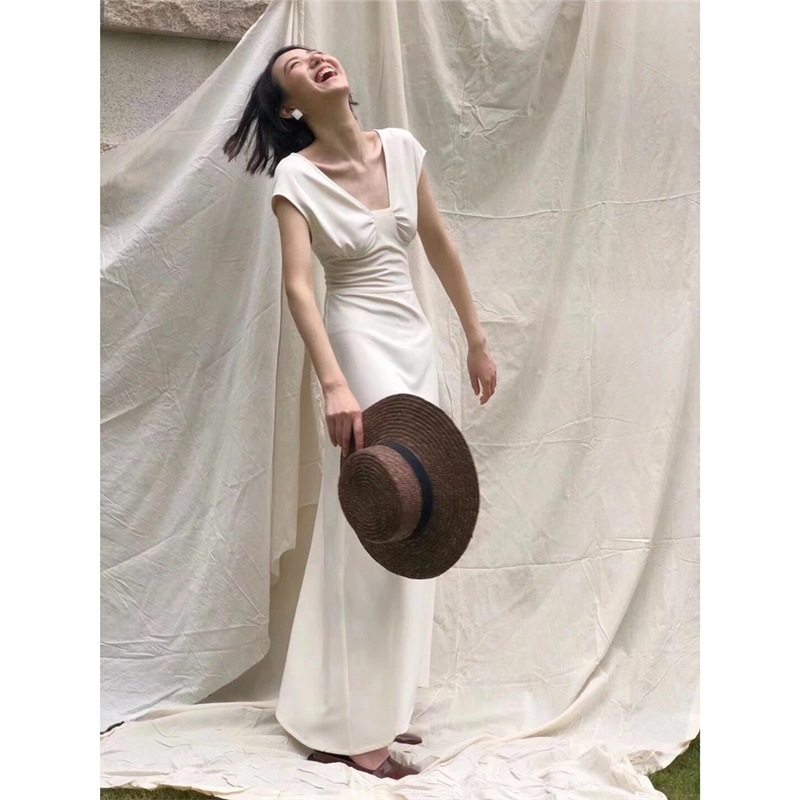 OK-130, высококачественное маленькое ароматное белое платье во французском стиле с v-образным вырезом для женщин, летнее новое стильное платье для похудения талии