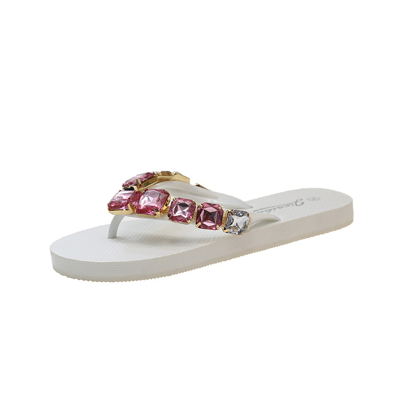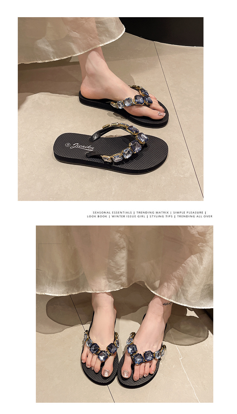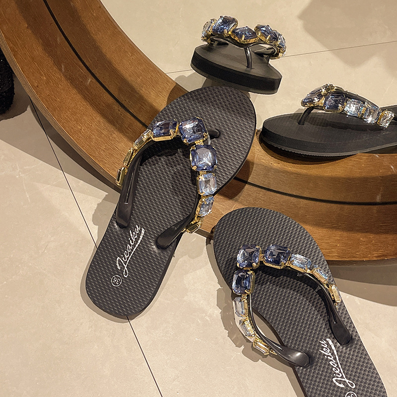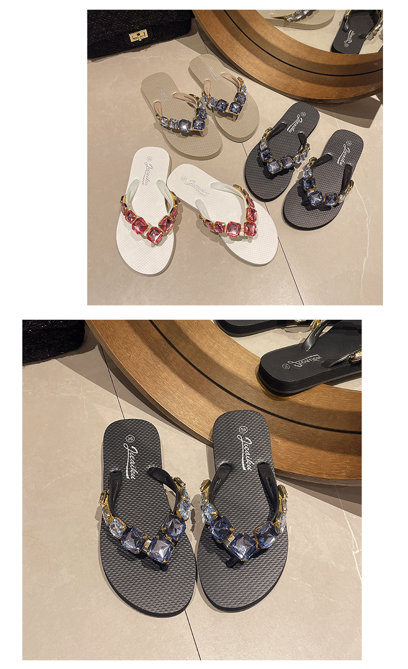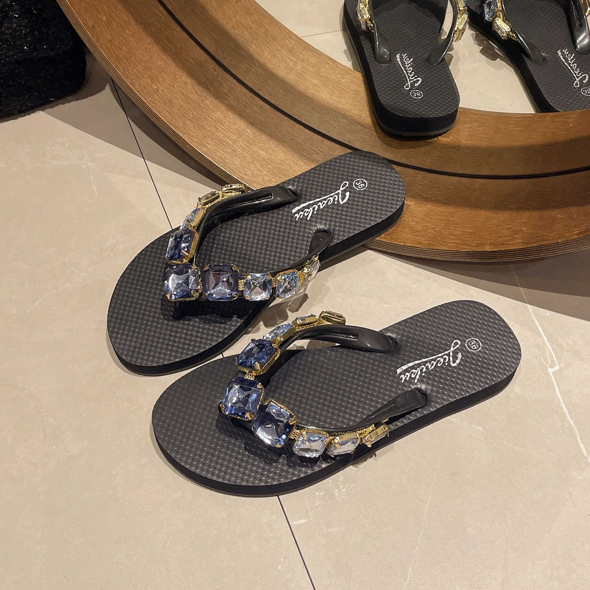 Прямые поставки с фабрики: клетчатые шлепанцы с камнями, нескользящие, большие, плоские, квадратные, однотонные пляжные тапочки с квадратными стразами.