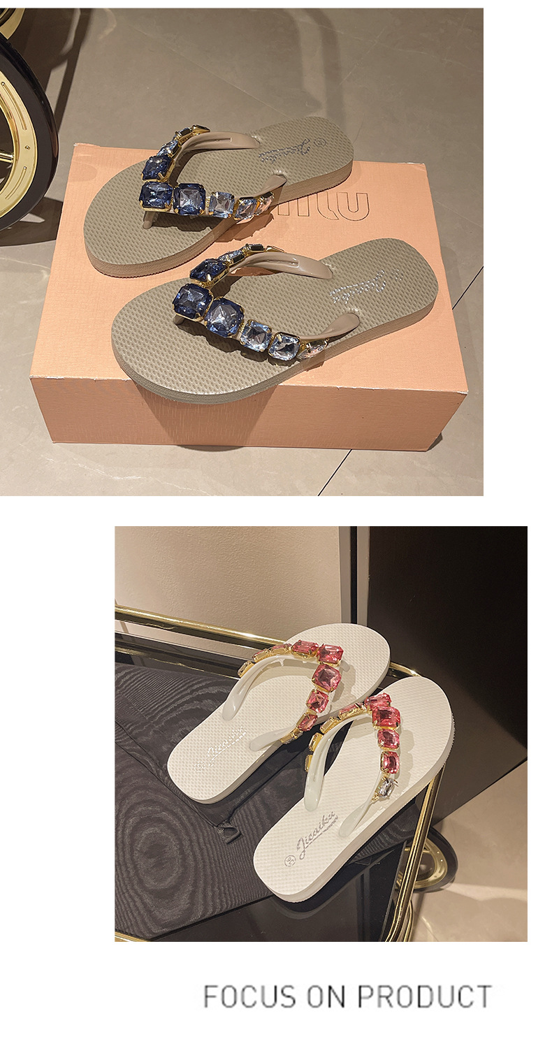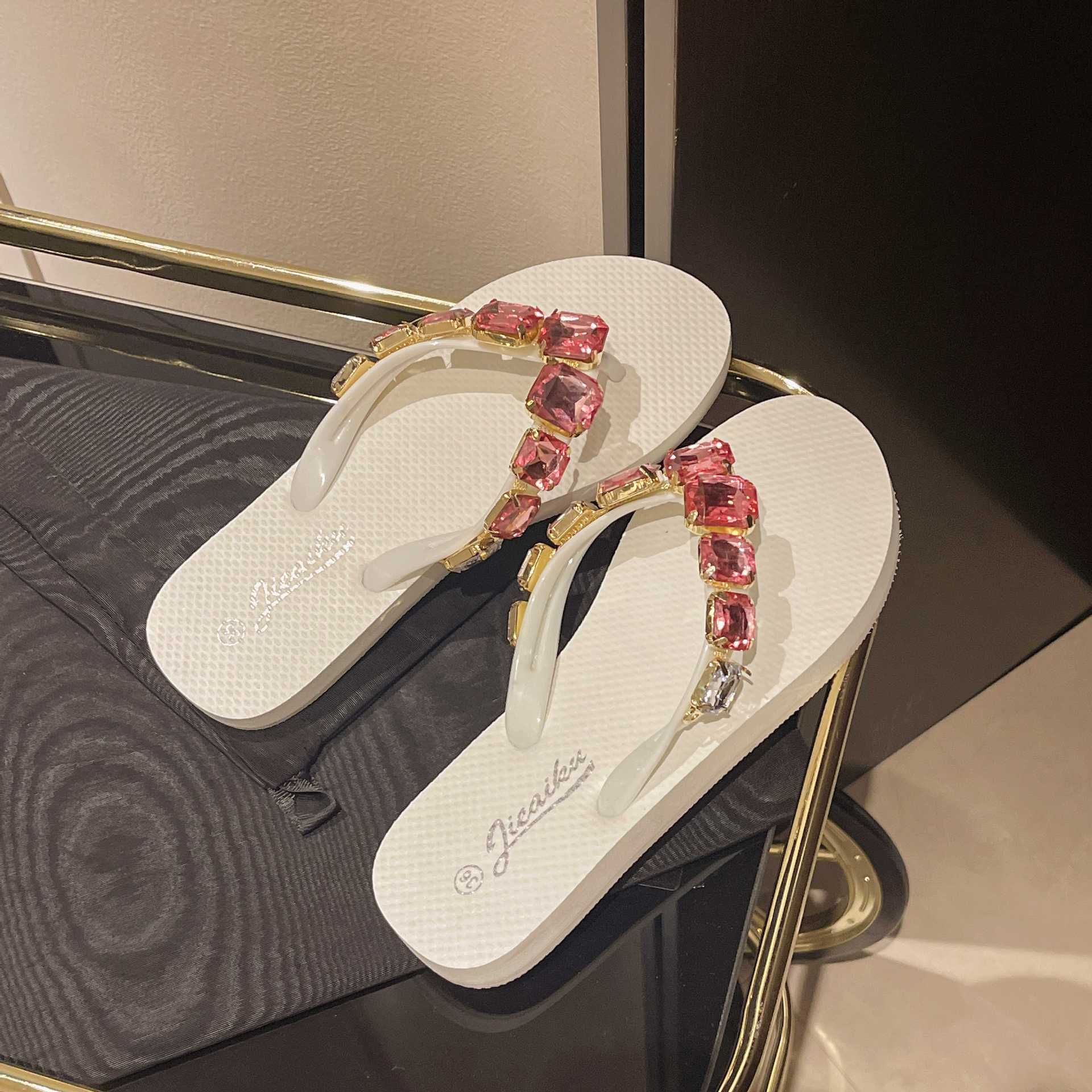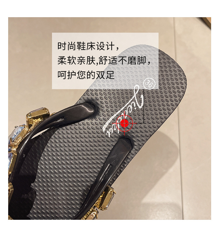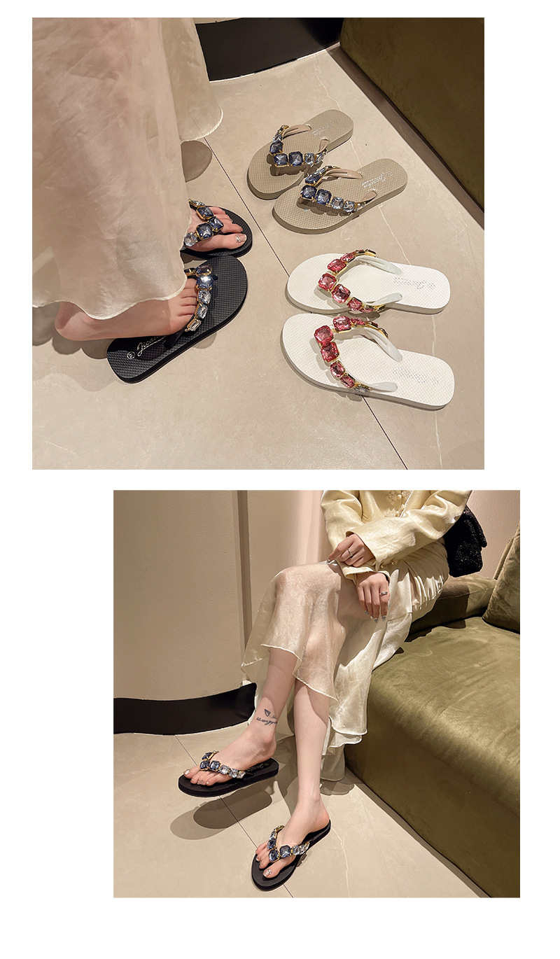 Прямые поставки с фабрики: клетчатые шлепанцы с камнями, нескользящие, большие, плоские, квадратные, однотонные пляжные тапочки с квадратными стразами.
