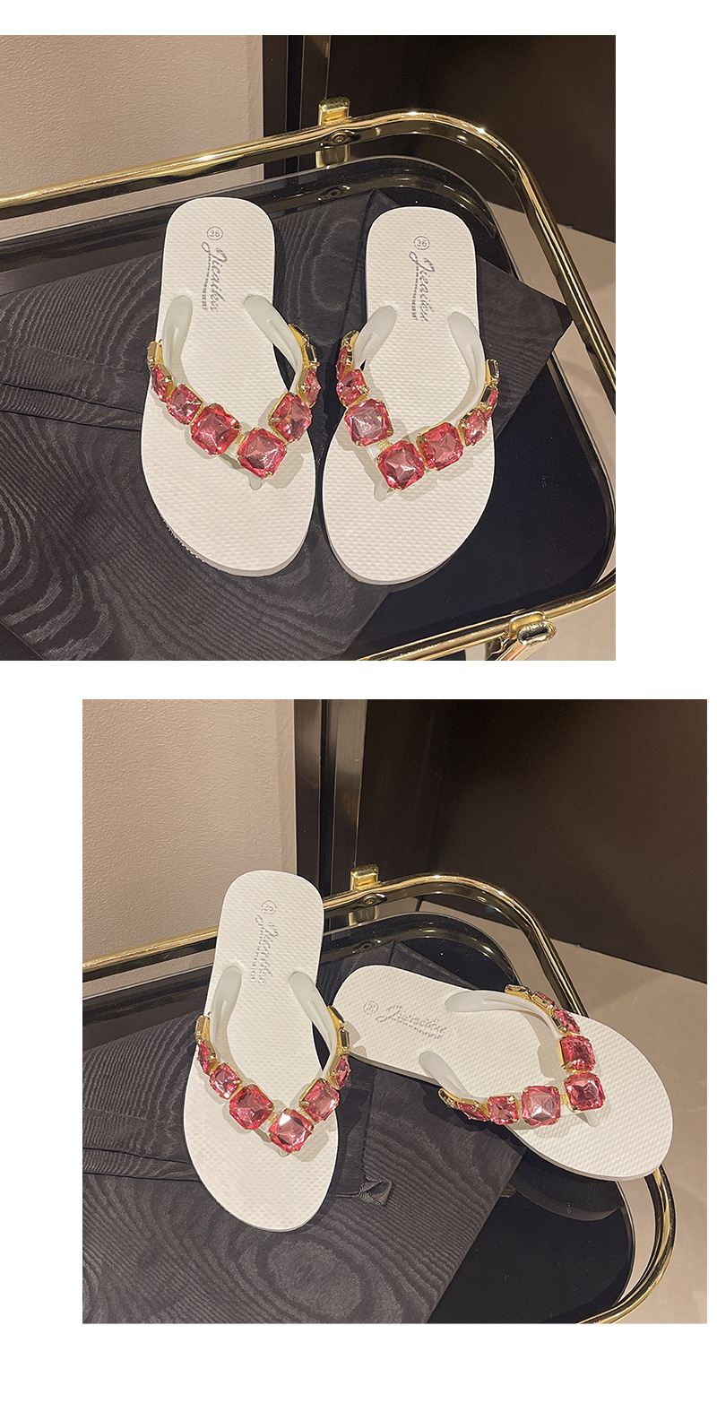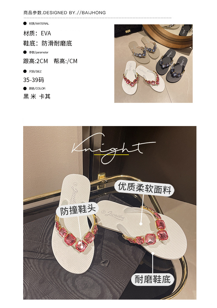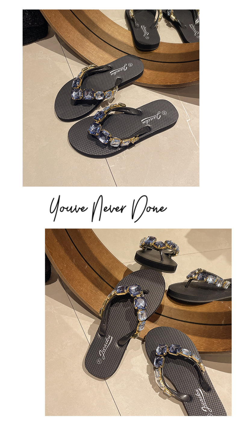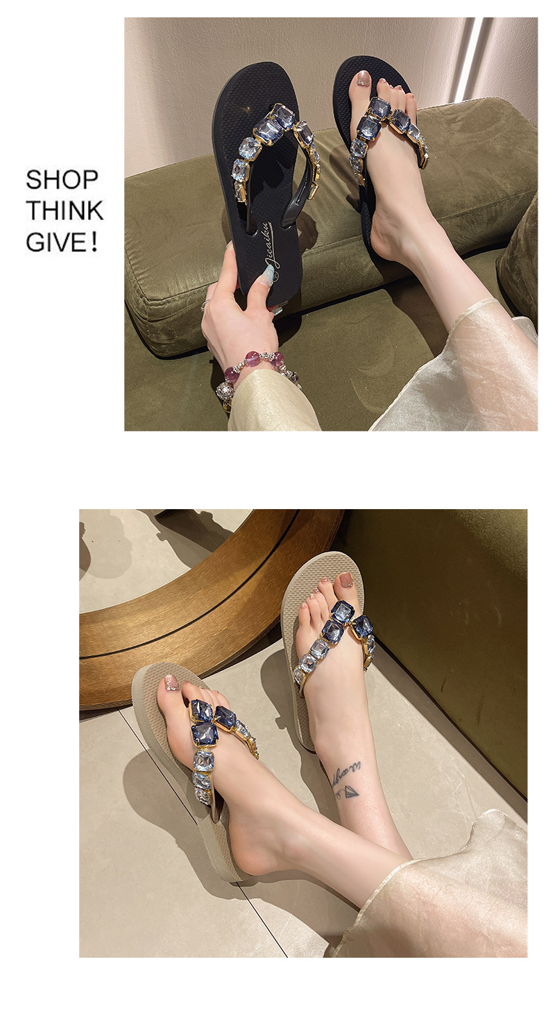 Прямые поставки с фабрики: клетчатые шлепанцы с камнями, нескользящие, большие, плоские, квадратные, однотонные пляжные тапочки с квадратными стразами.