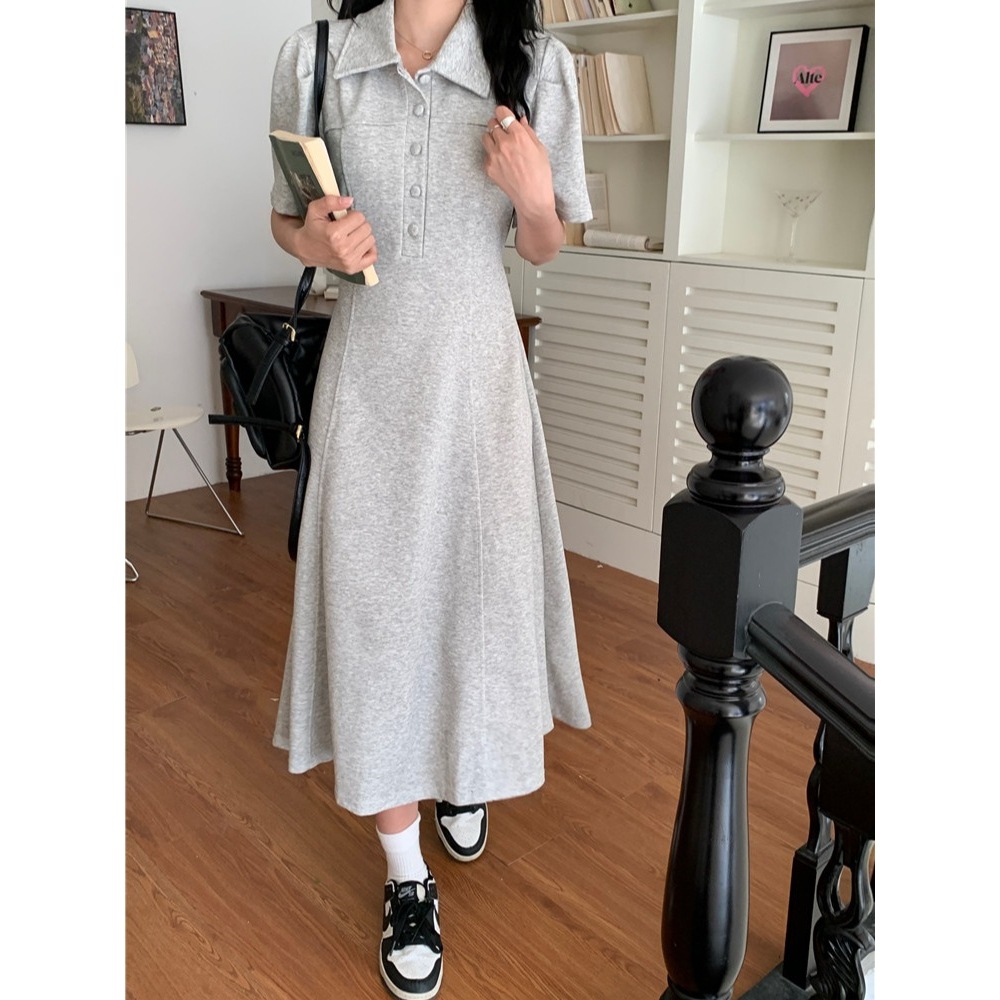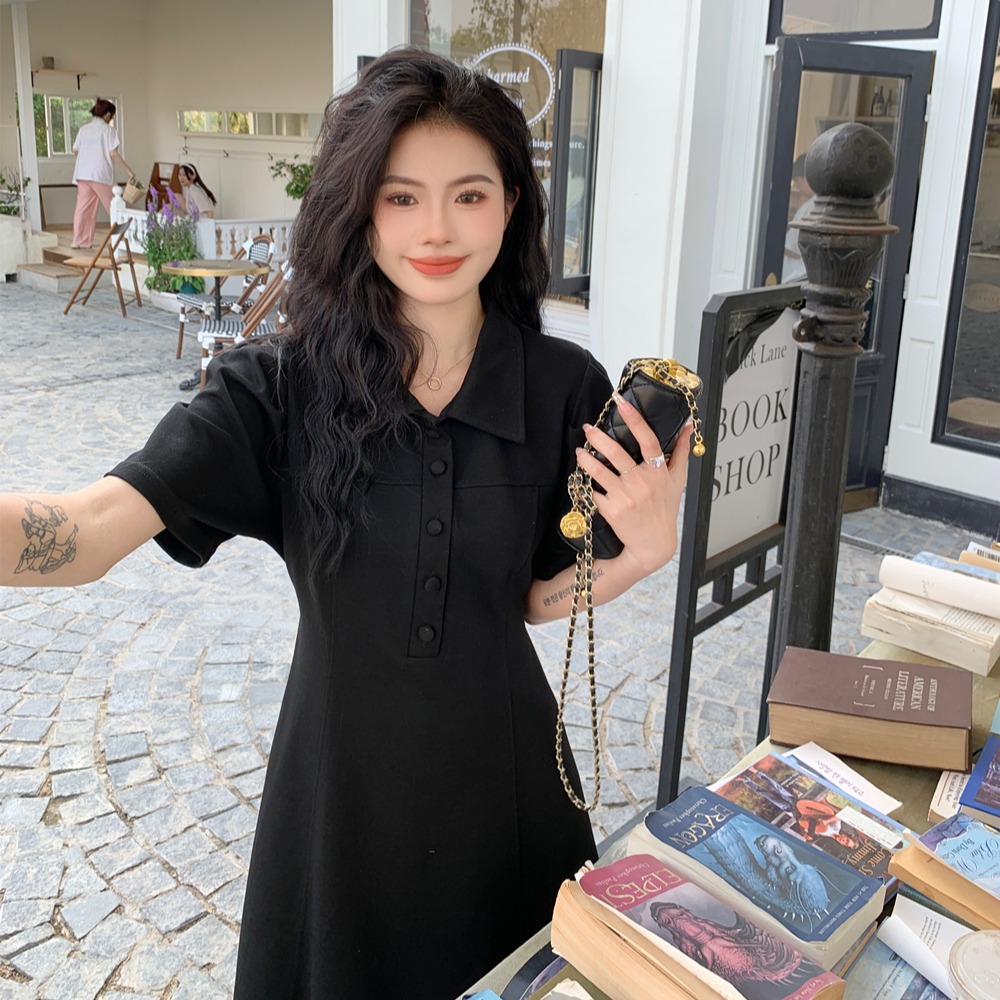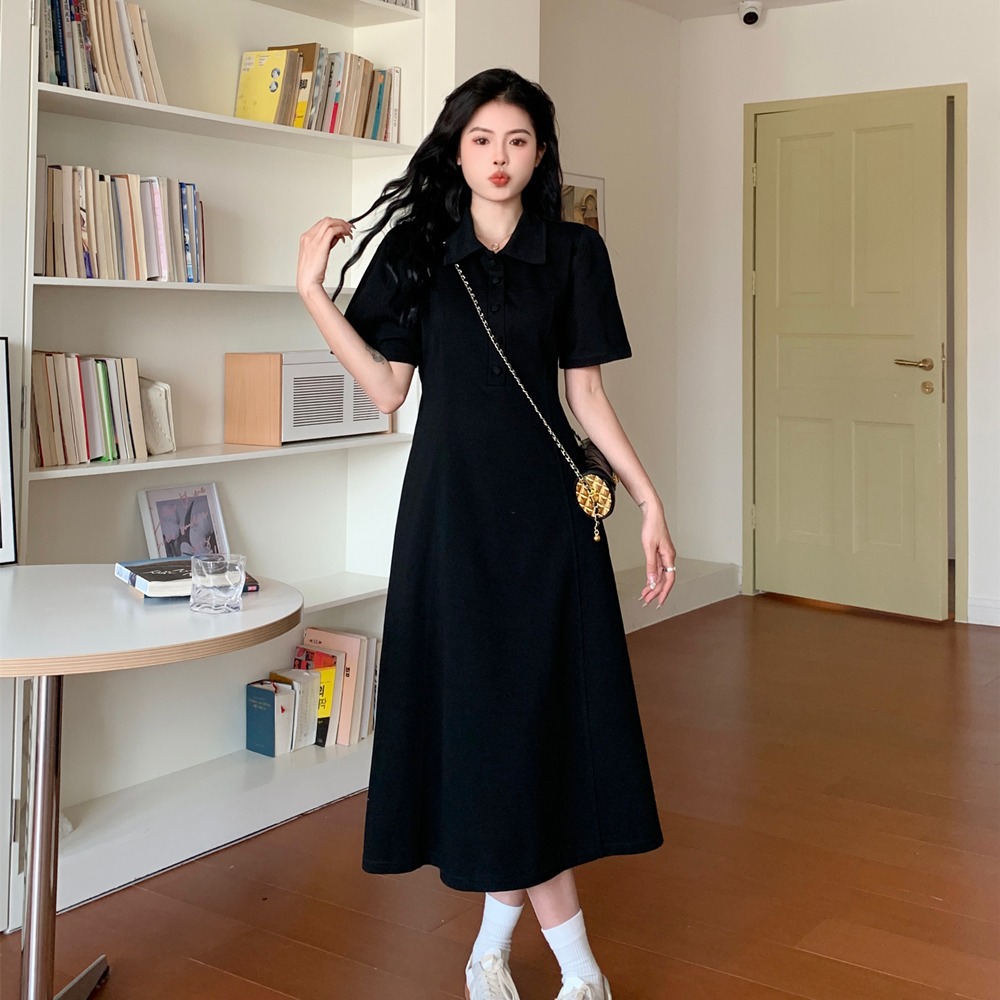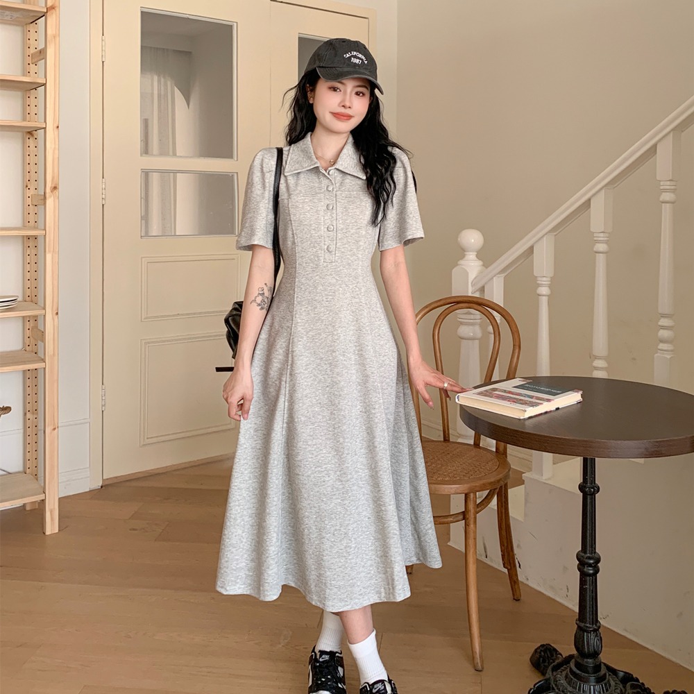 Повседневное платье с воротником-поло в стиле ретро для женщин, новинка 2025 года, лето, большой размер, длинная юбка с дизайном толстого мм, закрывающая тело и придающая стройный вид