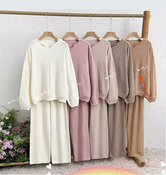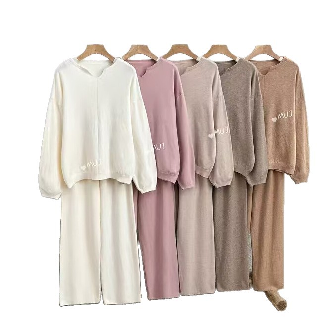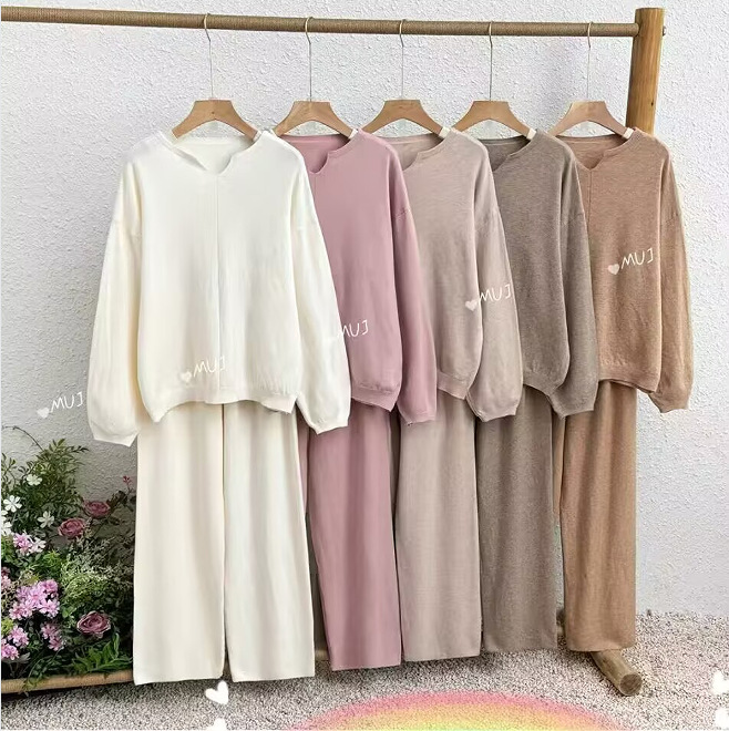 2025 Европейский и американский женский мягкий и восковой трикотаж для дома, комплект повседневной одежды с длинными рукавами, трикотажные широкие брюки, комплект из двух предметов
