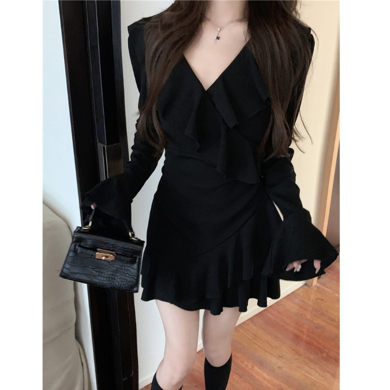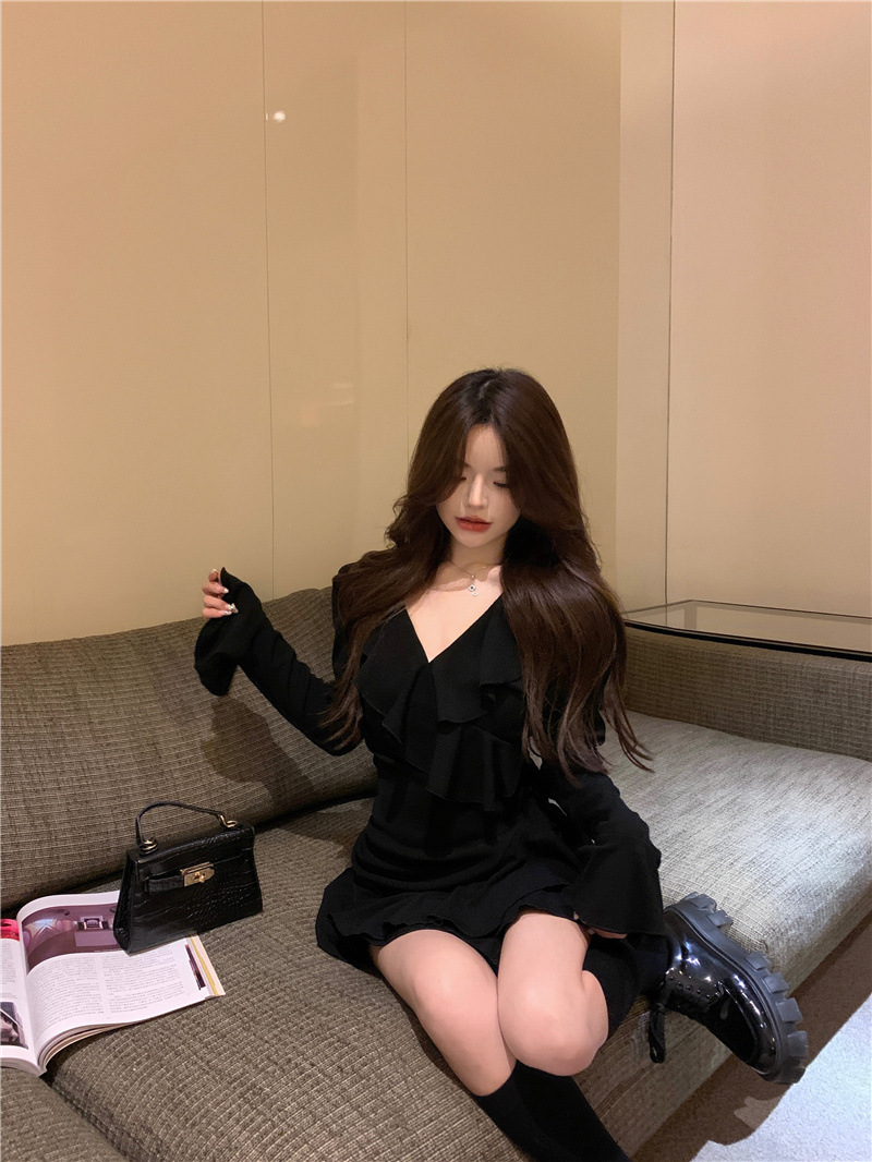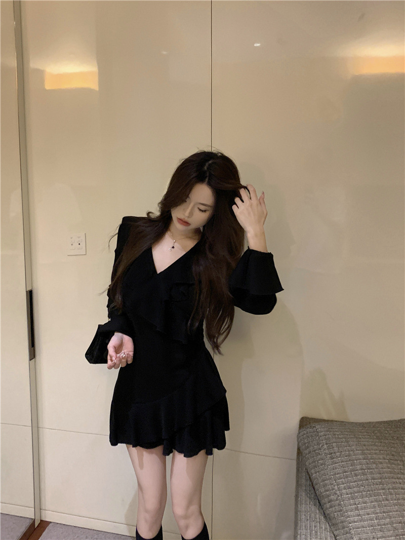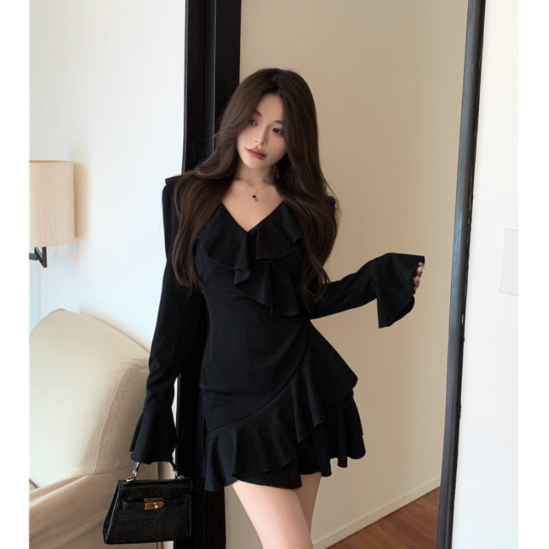 Женское платье с рюшами, весенний размер плюс, сексуальный и соблазнительный дизайн с V-образным вырезом, короткое платье с нишей на талии.