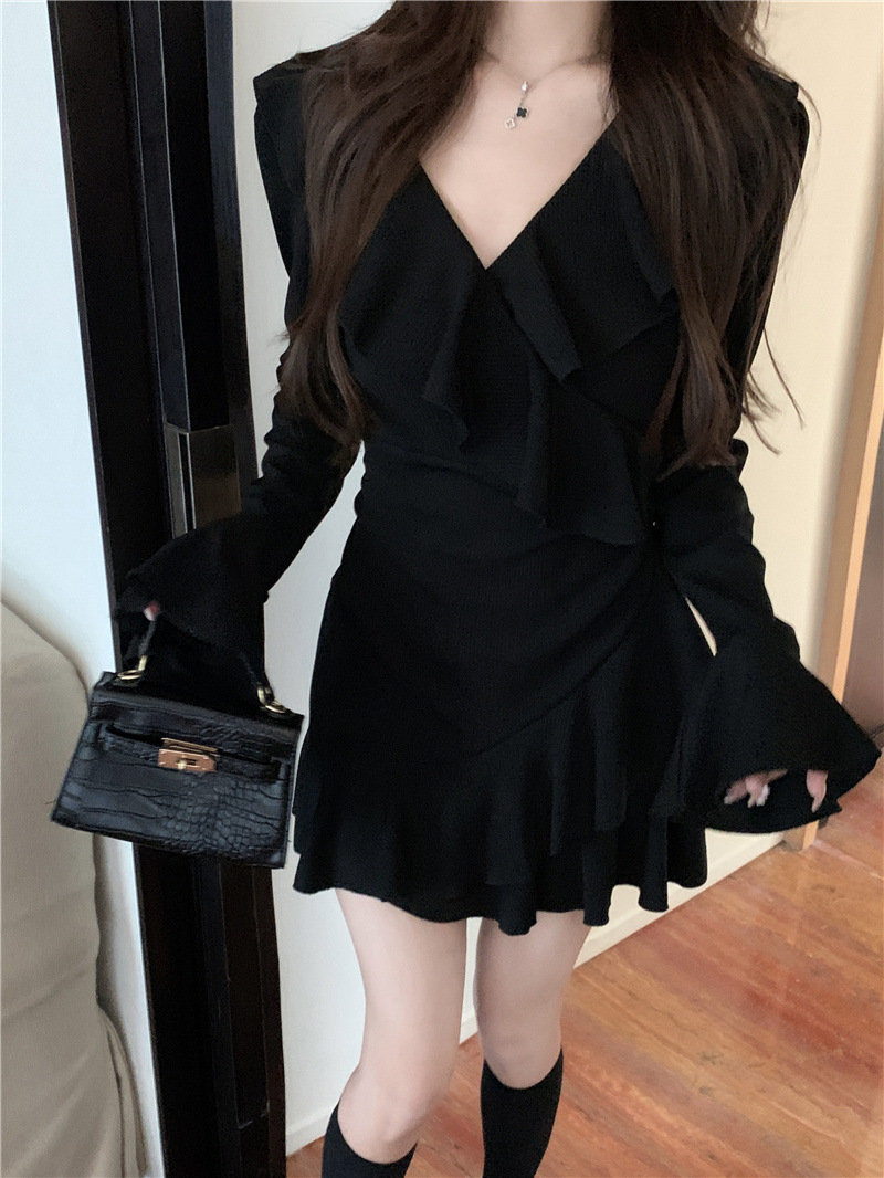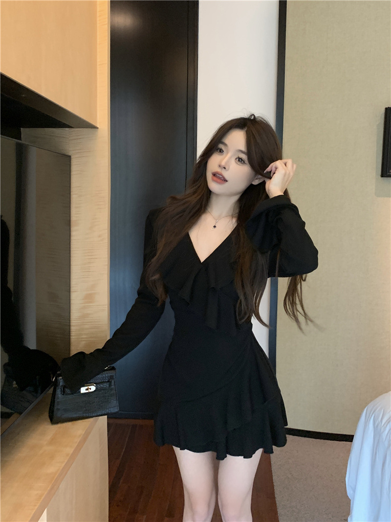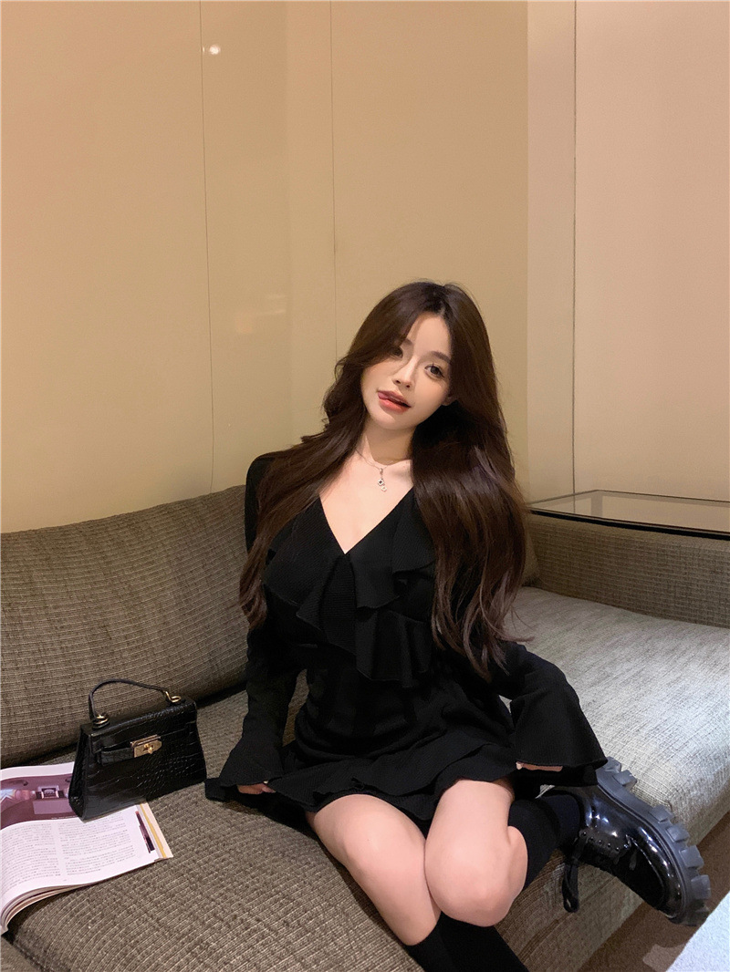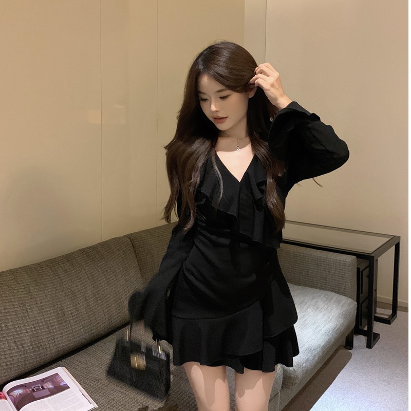 Женское платье с рюшами, весенний размер плюс, сексуальный и соблазнительный дизайн с V-образным вырезом, короткое платье с нишей на талии.