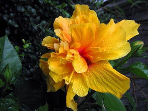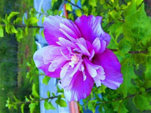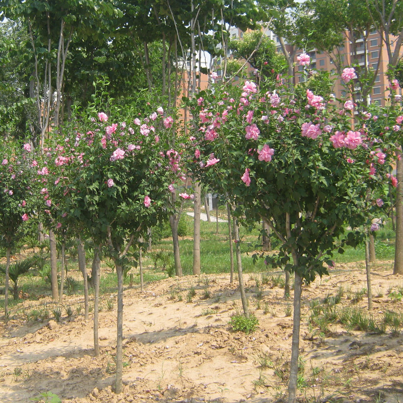 Саженцы гибискуса, двуцветковый гибискус, проект озеленения двора, забор, рассада цветов, цветение в том же году.